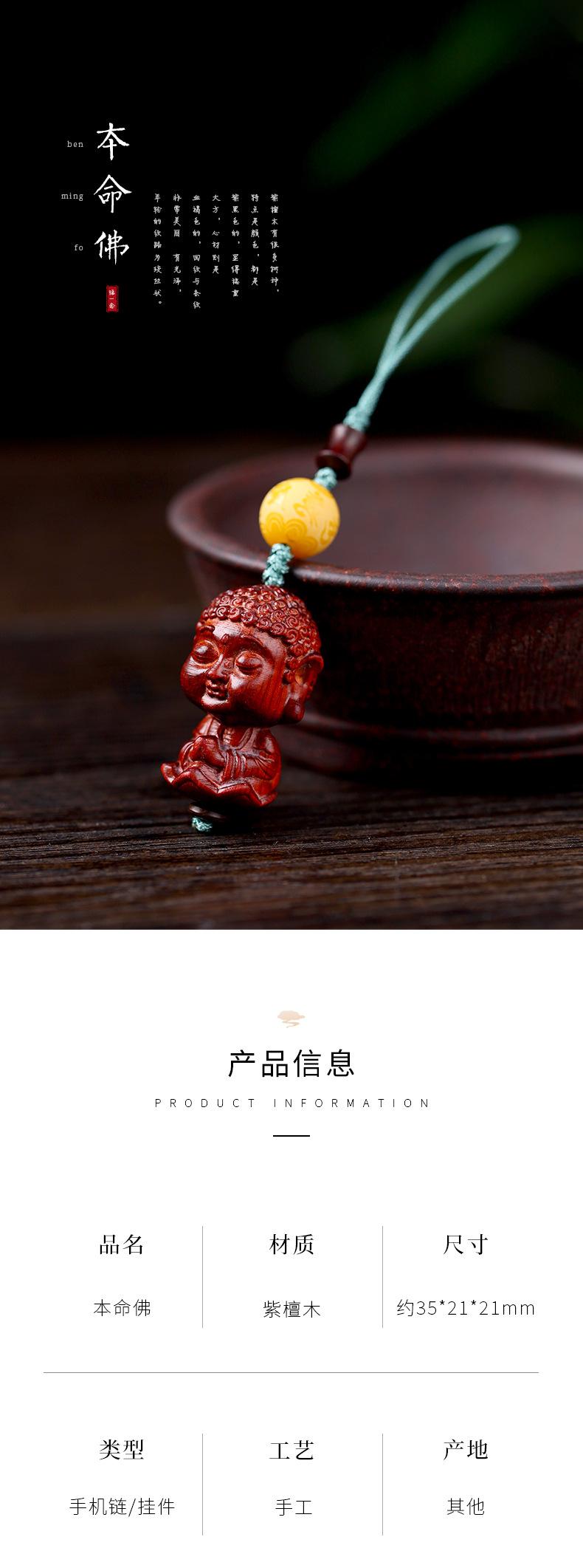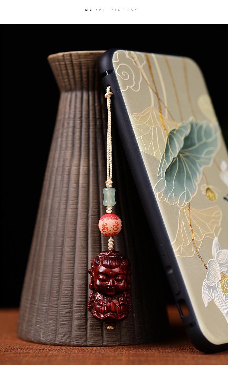 Colgante de Buda de palisandro natural, cadena de madera Guanyin para teléfono móvil, llavero unisex, adornos al por mayor