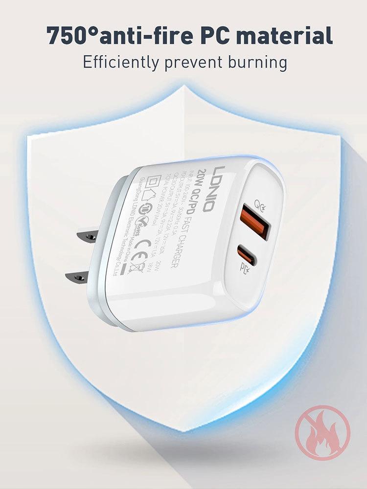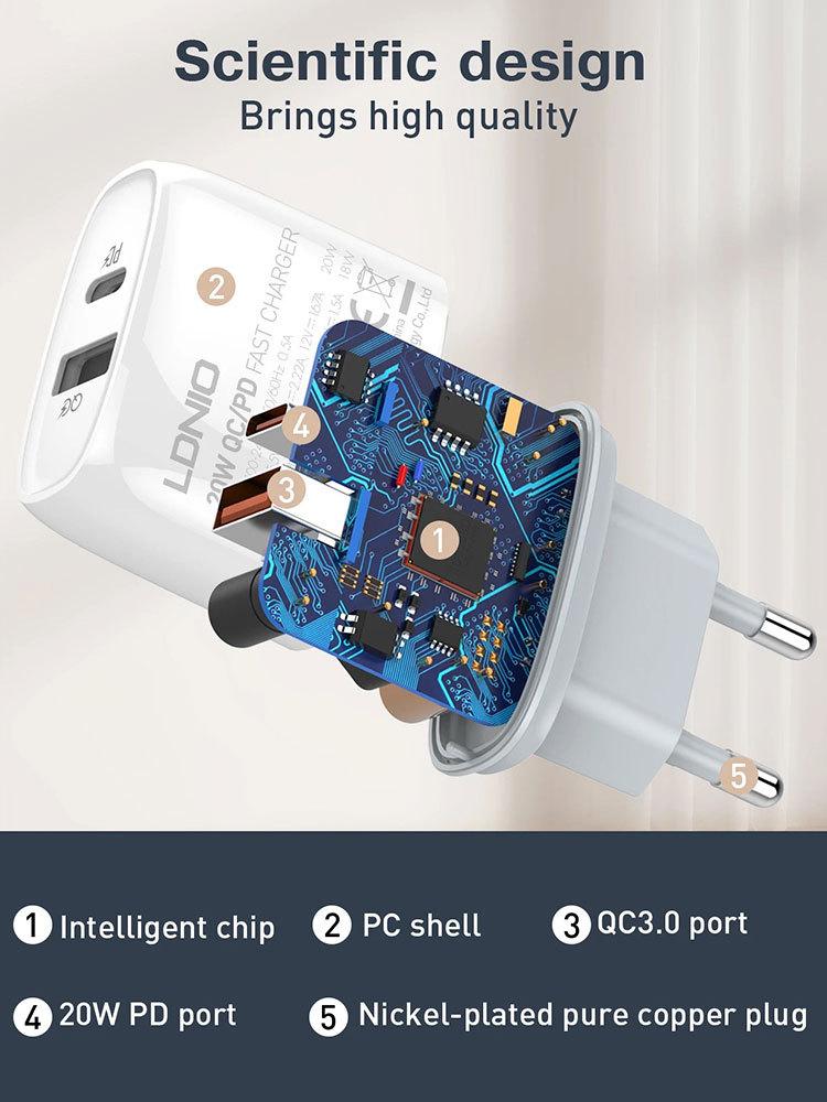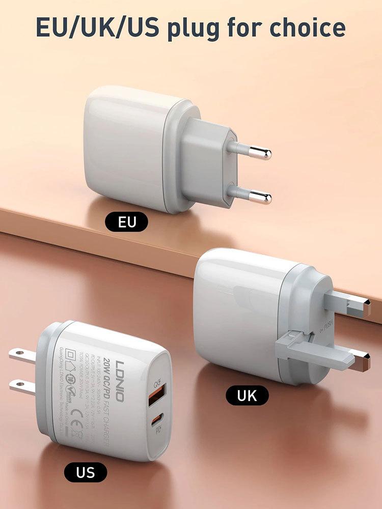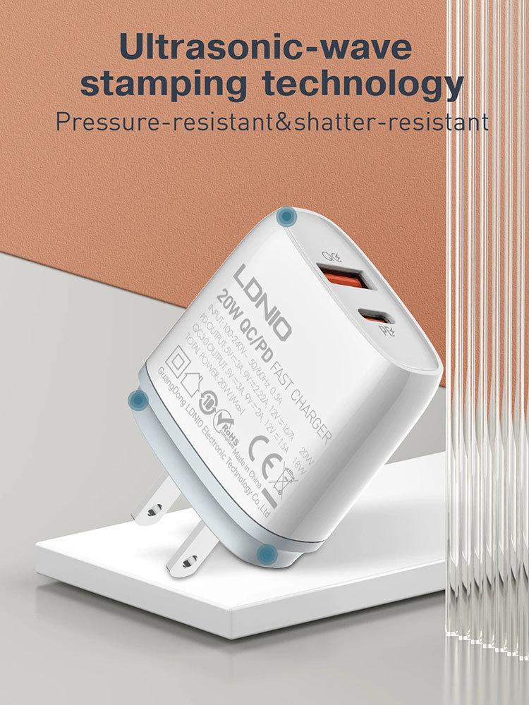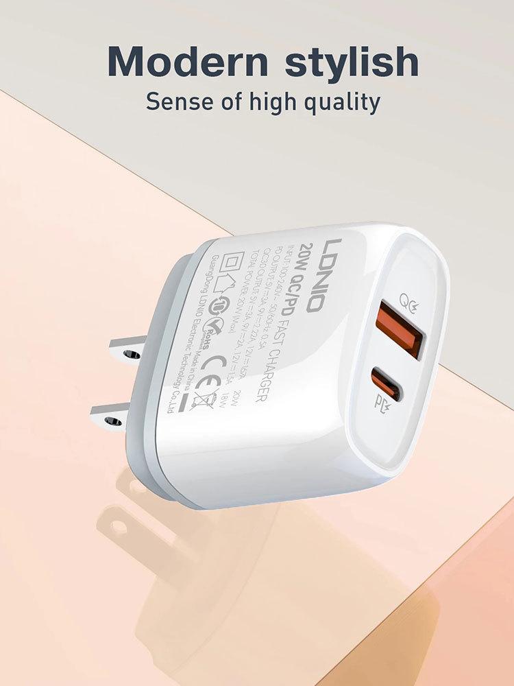 Cargador LDNIO para Apple 14/15 tipo C con enchufe de doble cara PD20W QC18W, cabezal de carga rápida USB-C