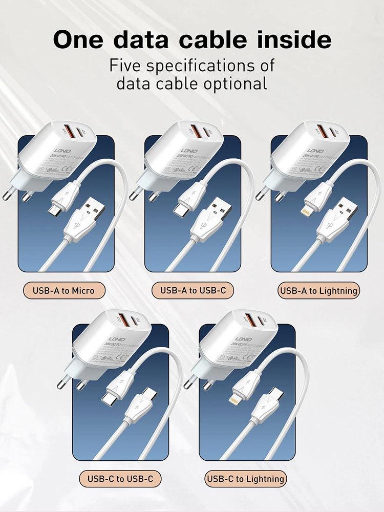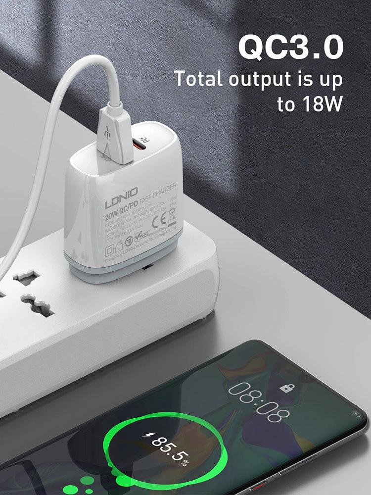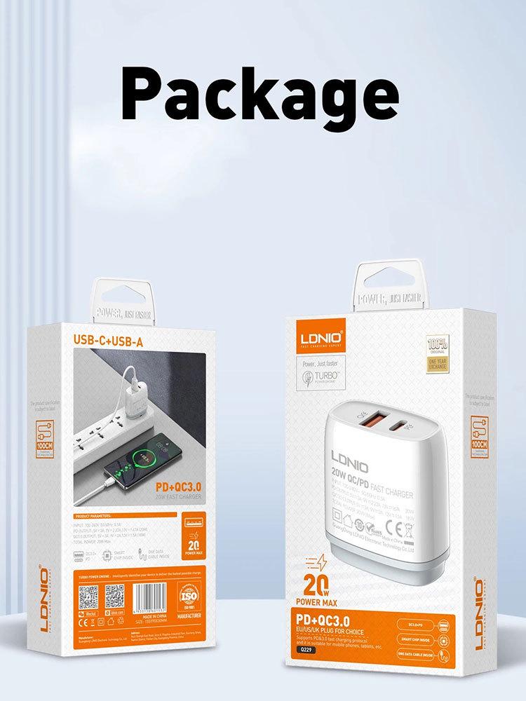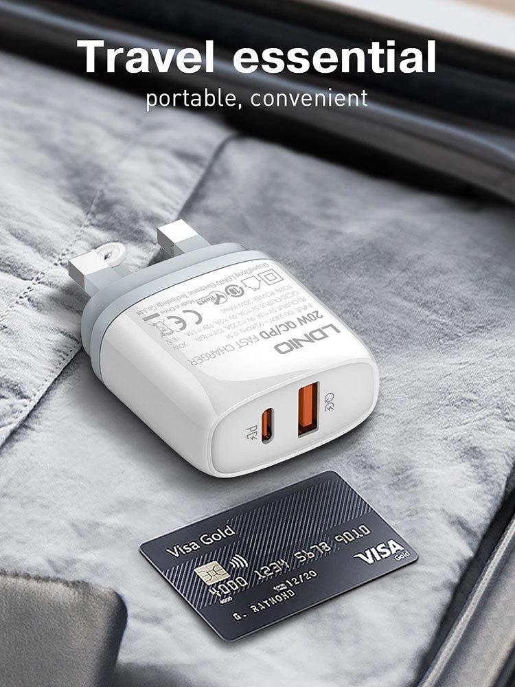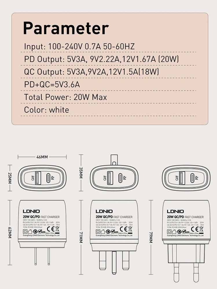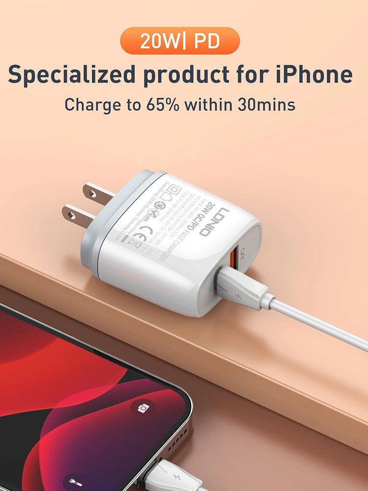 Cargador LDNIO para Apple 14/15 tipo C con enchufe de doble cara PD20W QC18W, cabezal de carga rápida USB-C
