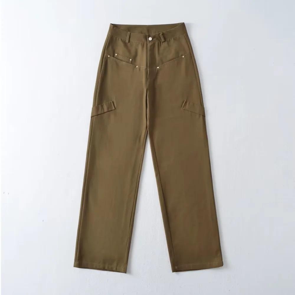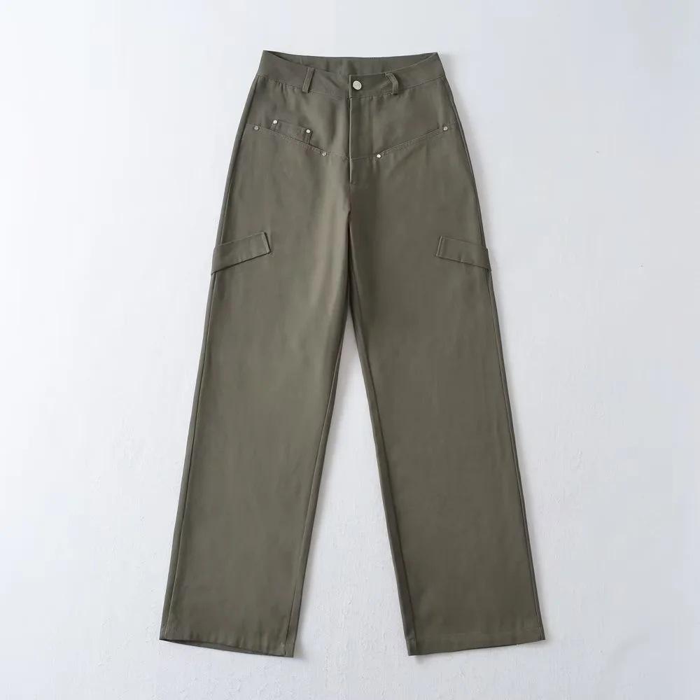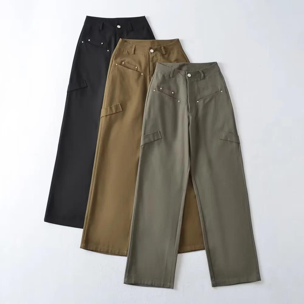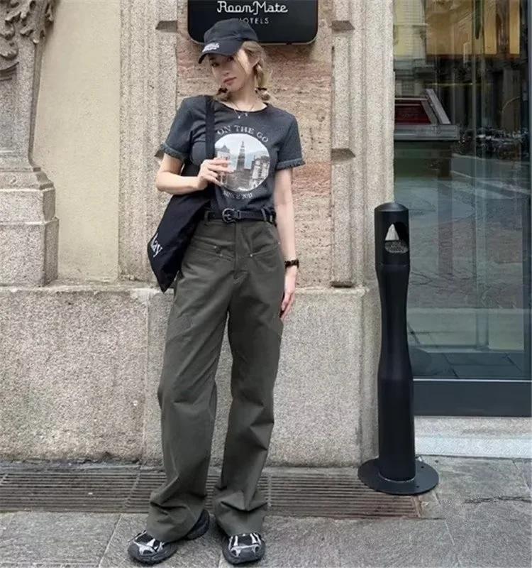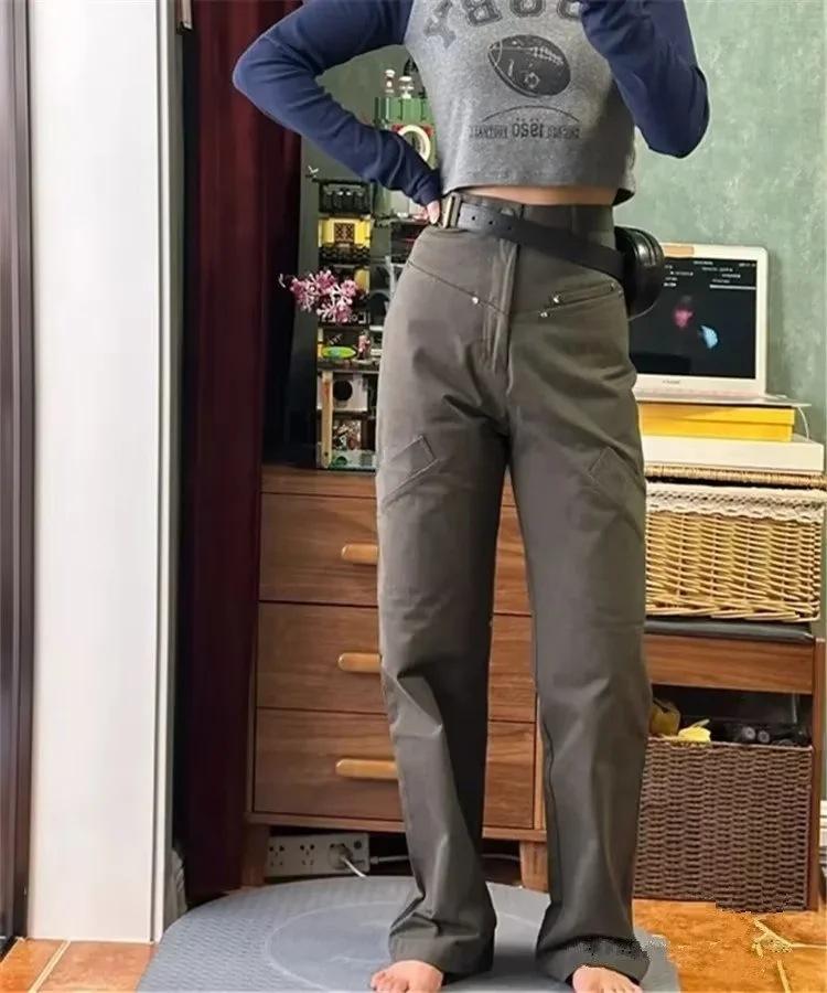 Pantalones casuales de cintura alta con múltiples bolsillos para mujer, de fotógrafo callejero estadounidense, nuevos pantalones rectos adelgazantes, pantalones de moda.