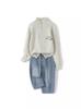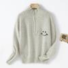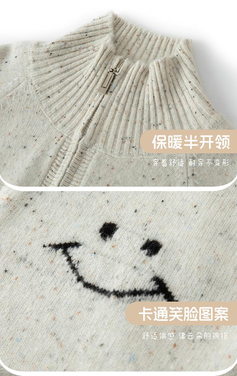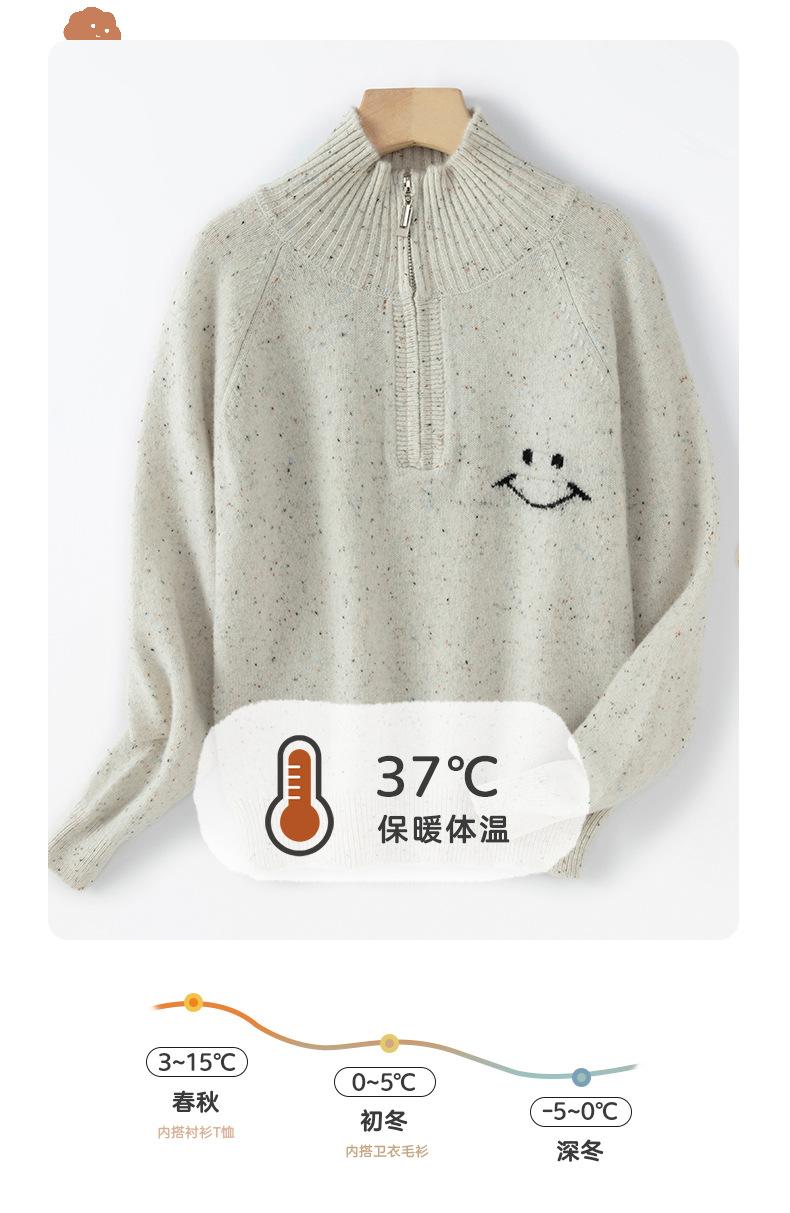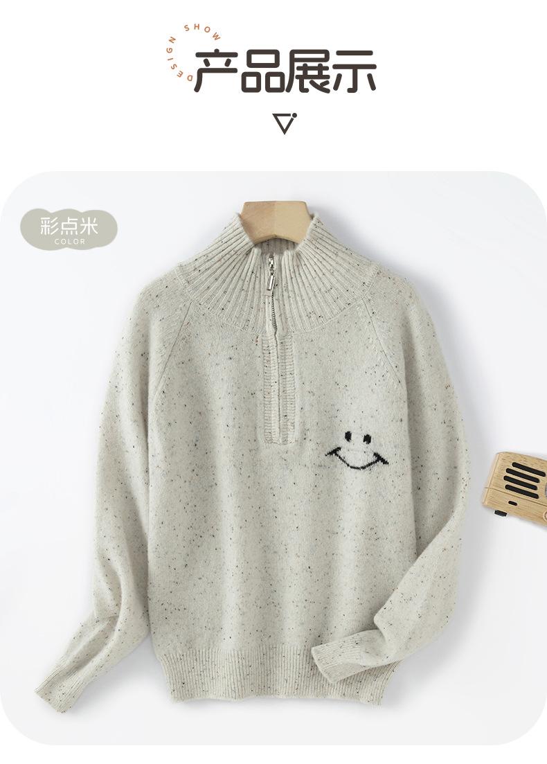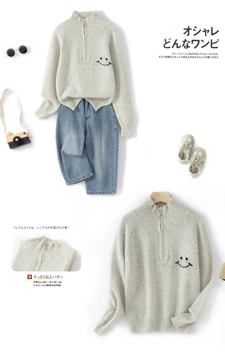 Suéter Top Suéter de Lana de Moda Otoño e Invierno Nuevo Suelto de Cuello Medio Abierto Manga Raglán Solapa Smiley Combinable