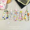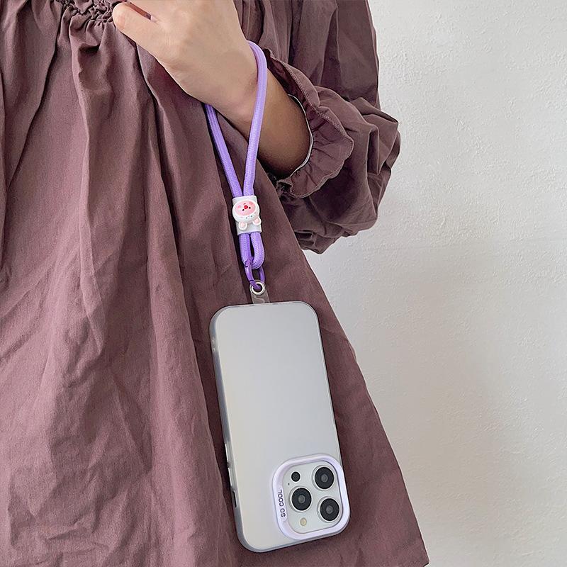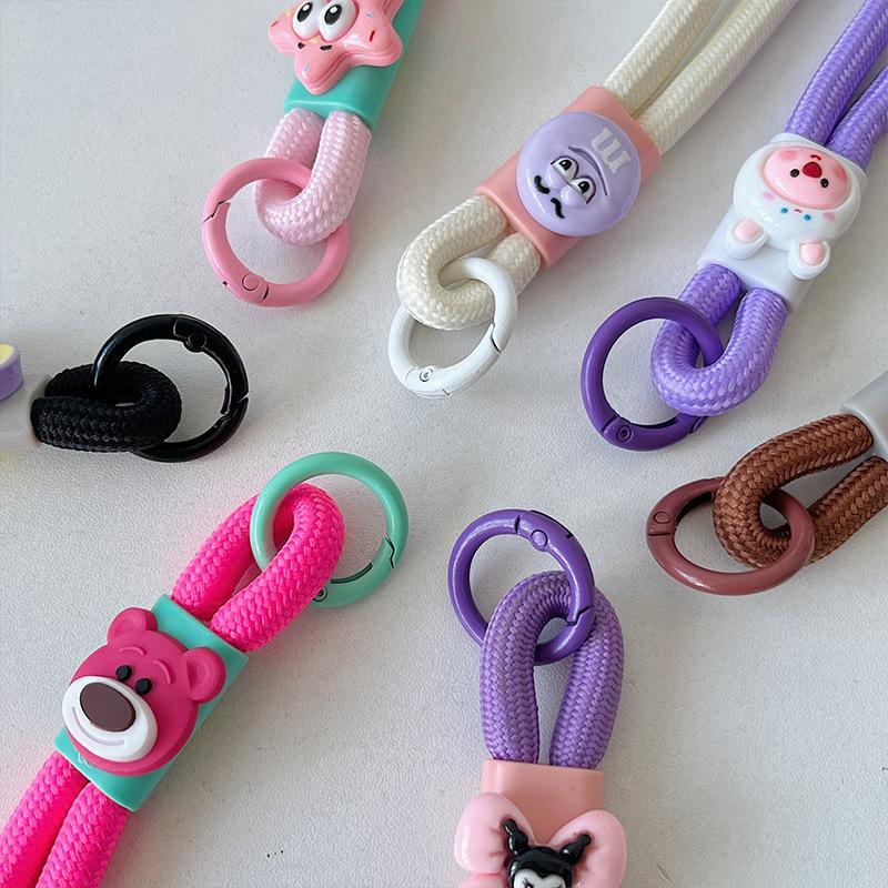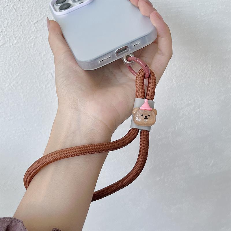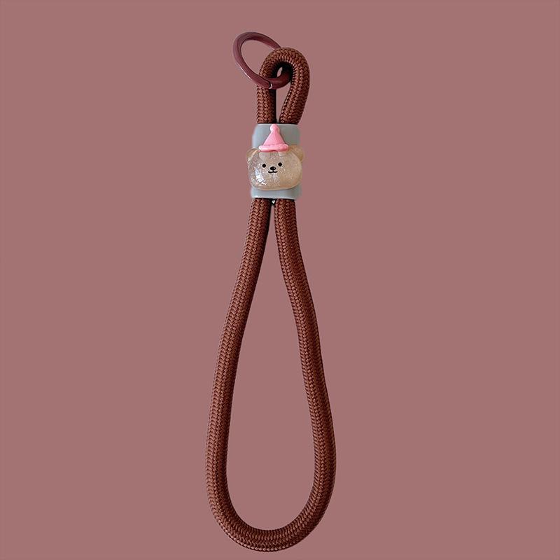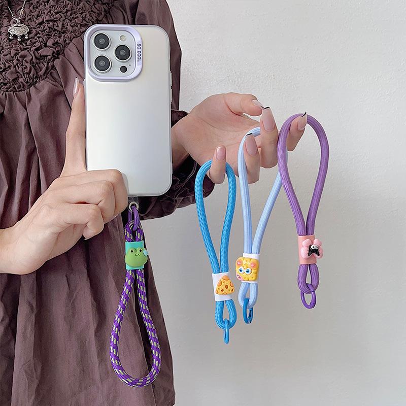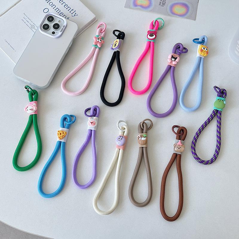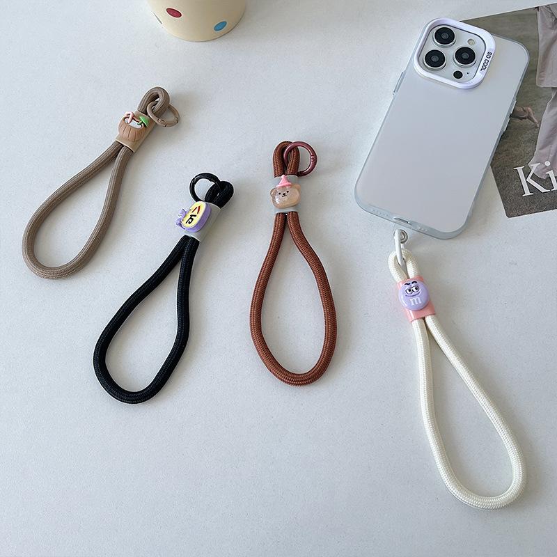 Cuenco para muñecas con cordón para teléfono móvil, llavero con cámara de color dopamina, bolsa antipérdida, cordón corto tejido.