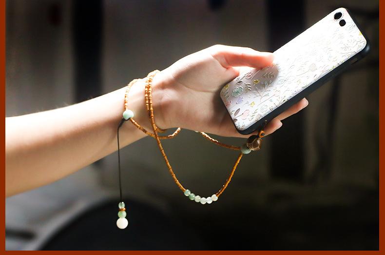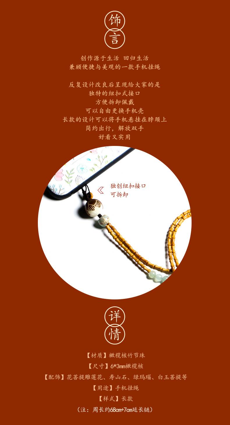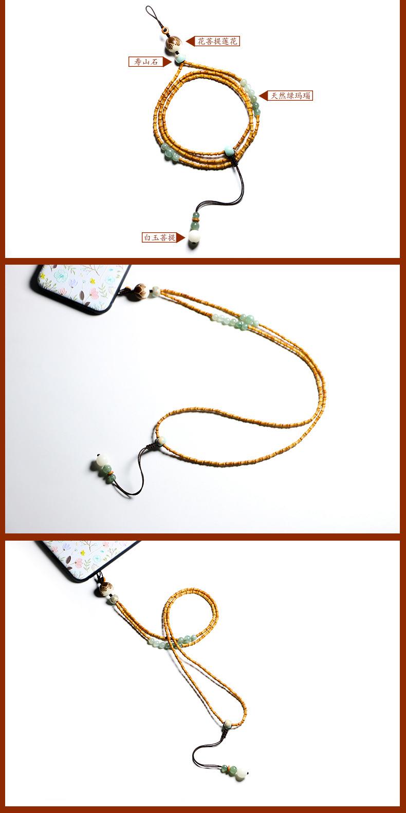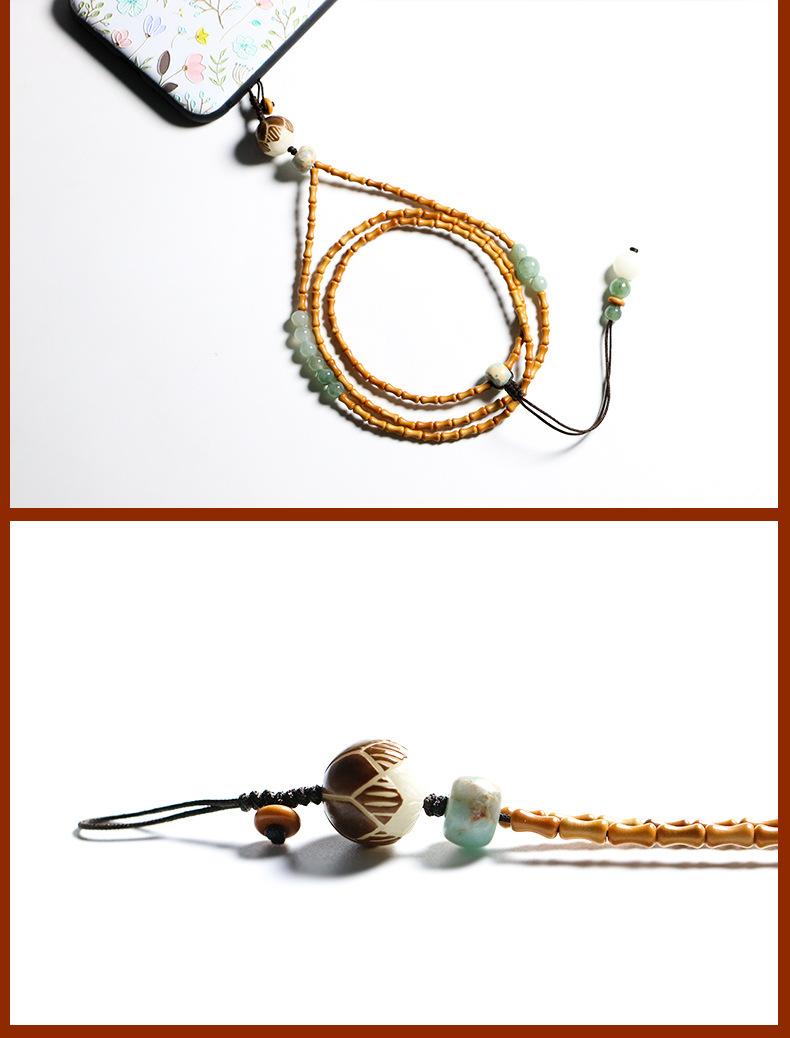 Las cuentas de bambú de hueso de oliva natural original hechas a mano están hechas a mano. Lleva tiempo y esfuerzo ensartarlas juntas. El diseño de hebilla es conveniente y más resbaladizo. El cordón largo de la funda del teléfono móvil se puede colgar en el cuello de jade para liberar tus manos y facilitar su transporte.