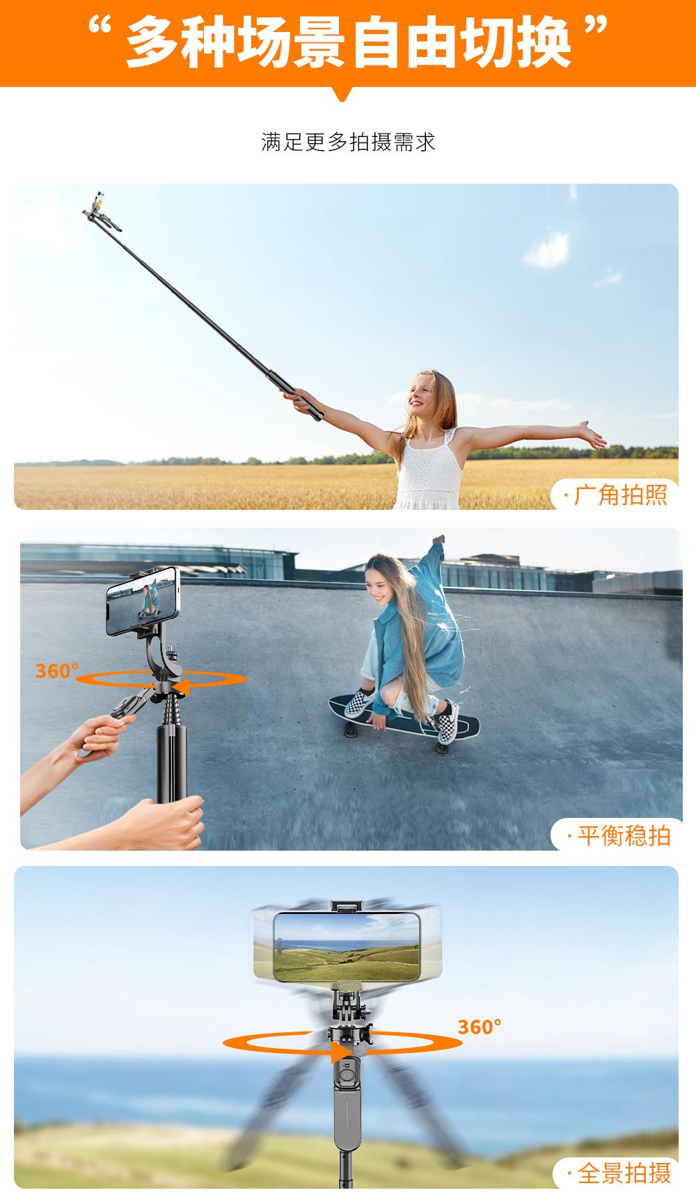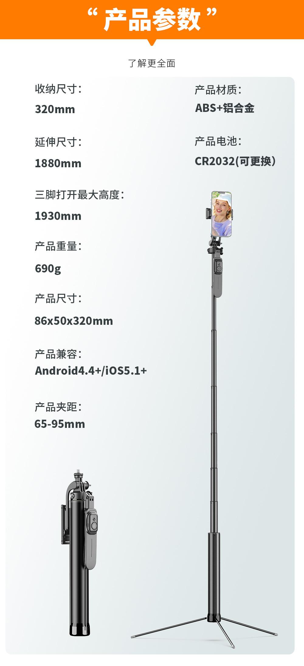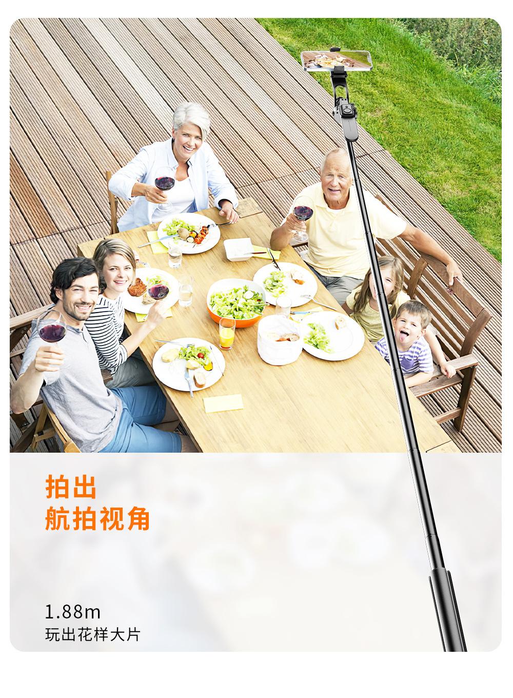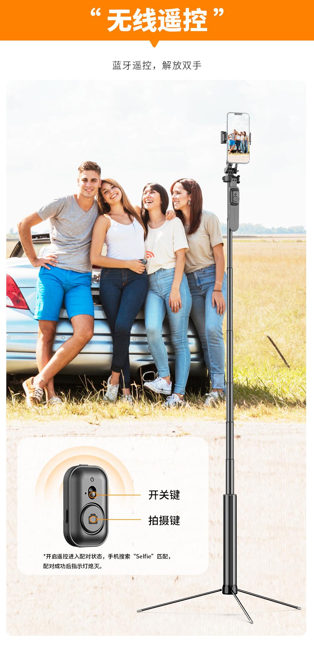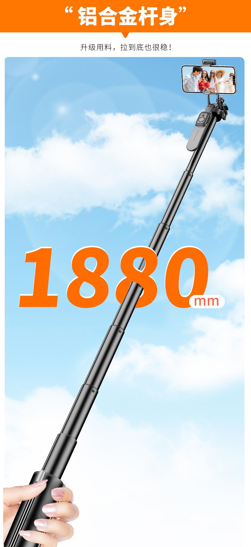 C11 [black] 1.88m aluminum alloy selfie stick + bluetooth remote control
