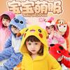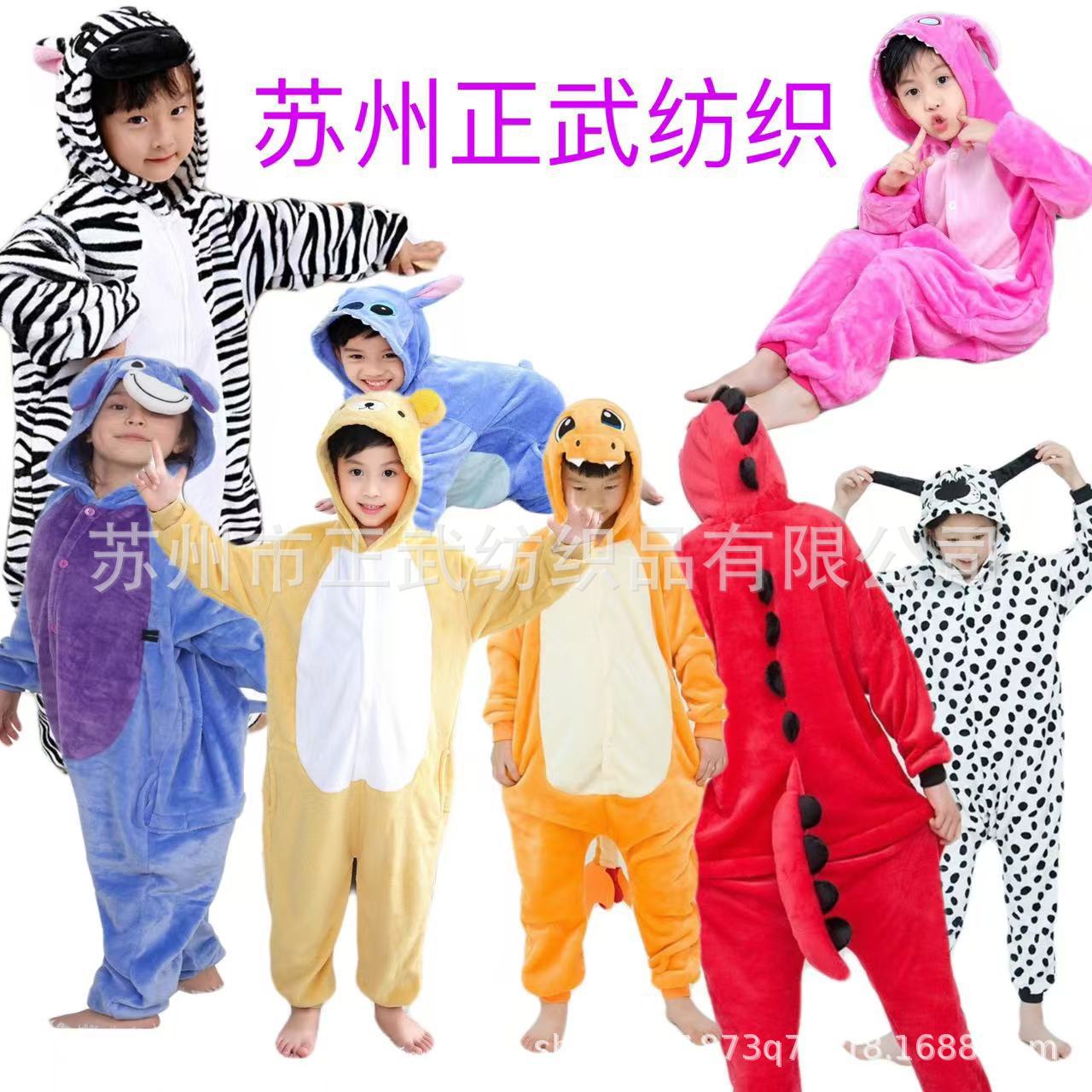 Pijamas de franela de otoño e invierno para niños, pijamas de animales de dibujos animados, ropa de hogar de dinosaurio verde, ropa de baño gruesa al por mayor