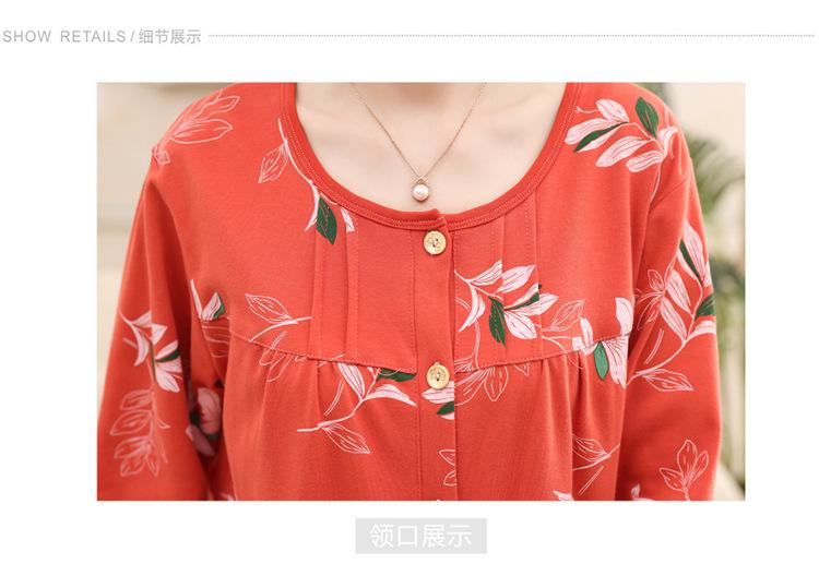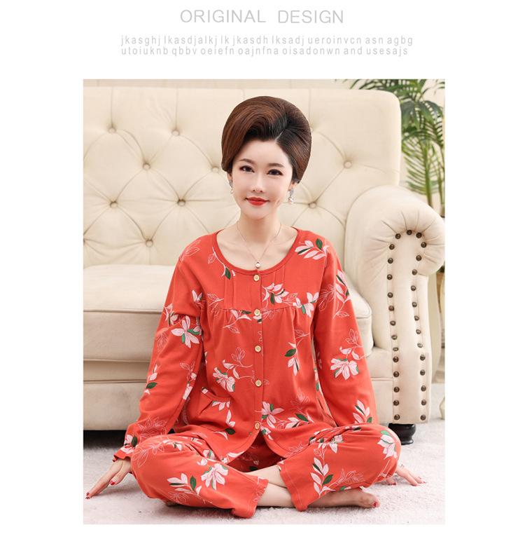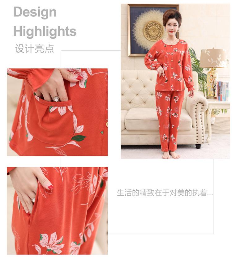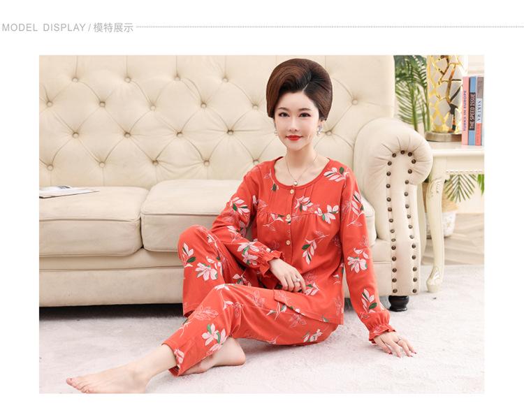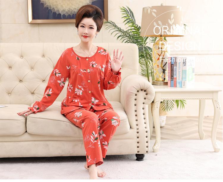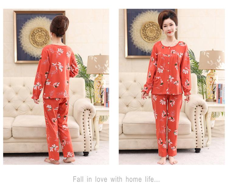 Pijamas sin cuello para mujer, de manga larga, para primavera, otoño e invierno, para madres de mediana edad delgadas, de talla grande, con cuello redondo.