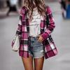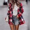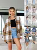 Abrigo Otoño/Invierno Temperamento Simple para Mujer Primavera y Otoño Joker Calle Cuadros Bolsillo Cárdigan de Lana Chaqueta