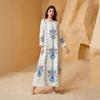 Vestido de mujer musulmana de dama de venta caliente exportación Medio Oriente estampado de alta calidad hermoso vestido de oreja de madera