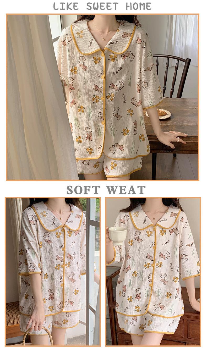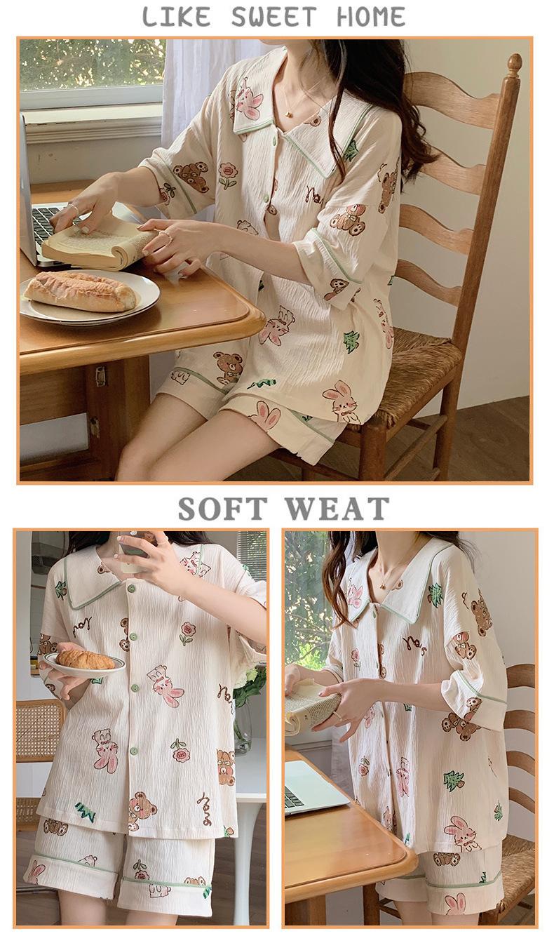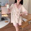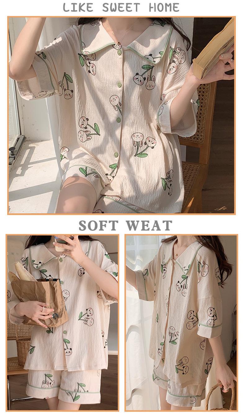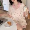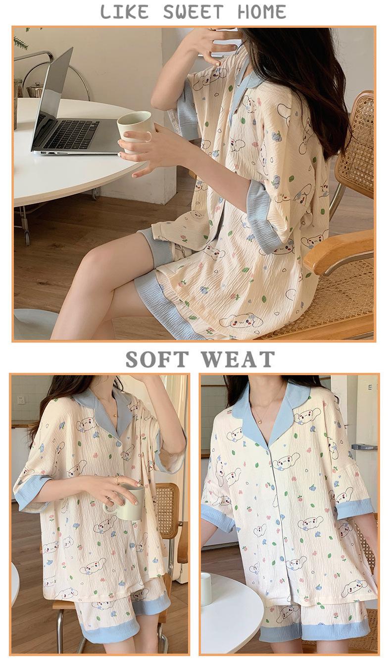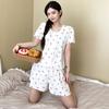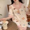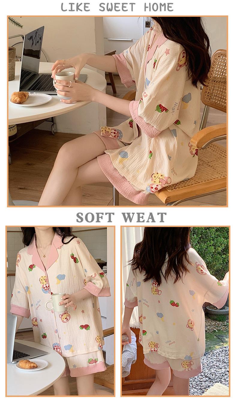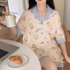 Pijama de verano para mujer, dulce y lindo dibujo animado, pantalones cortos de manga corta, traje holgado y fino, cárdigan para mujer, ropa de casa de verano