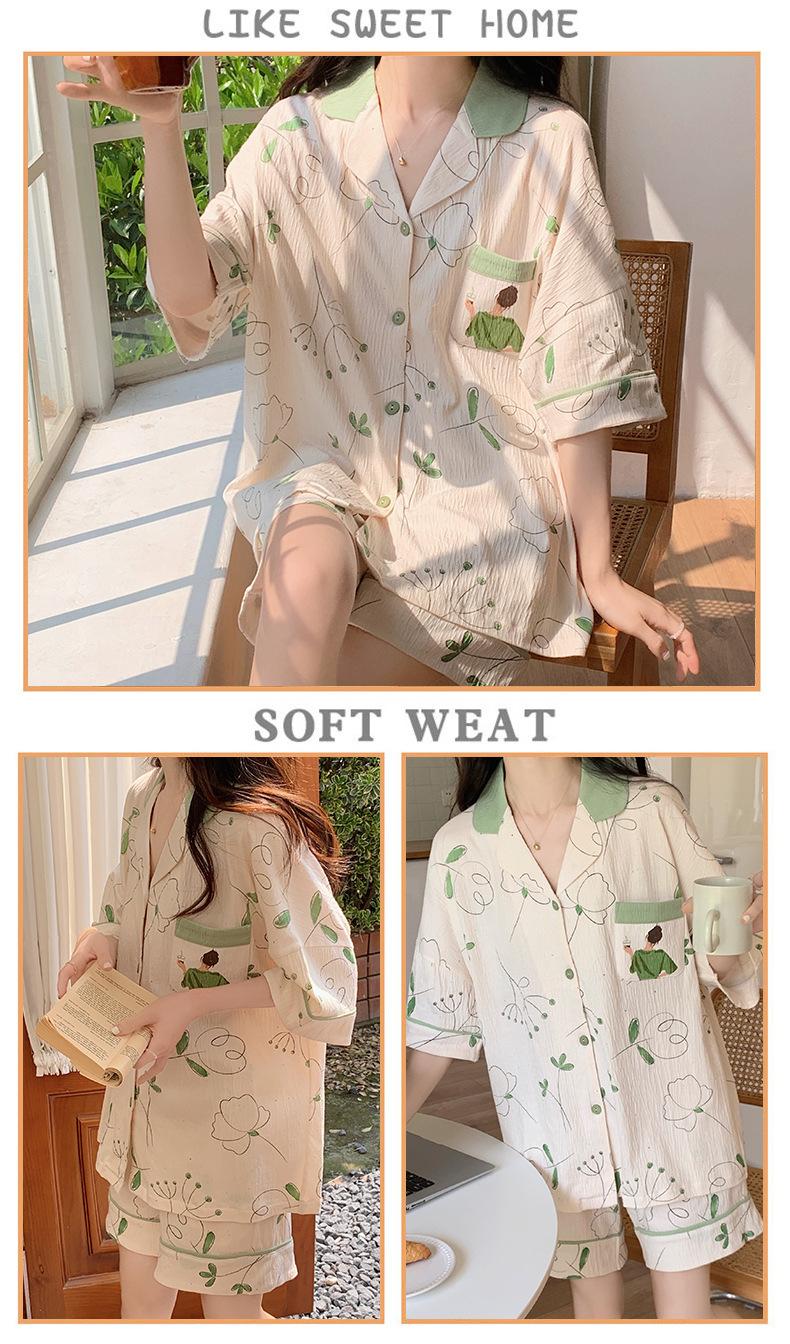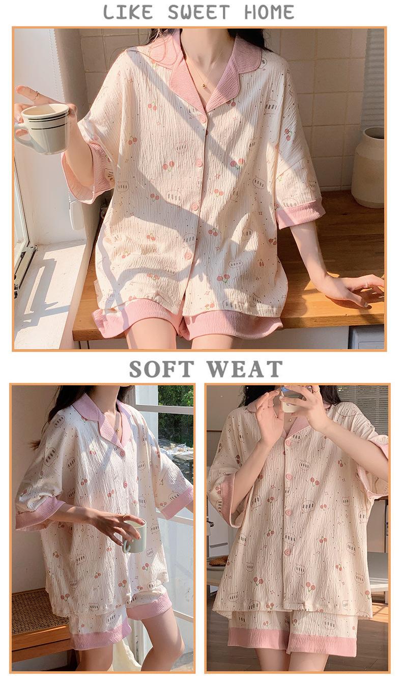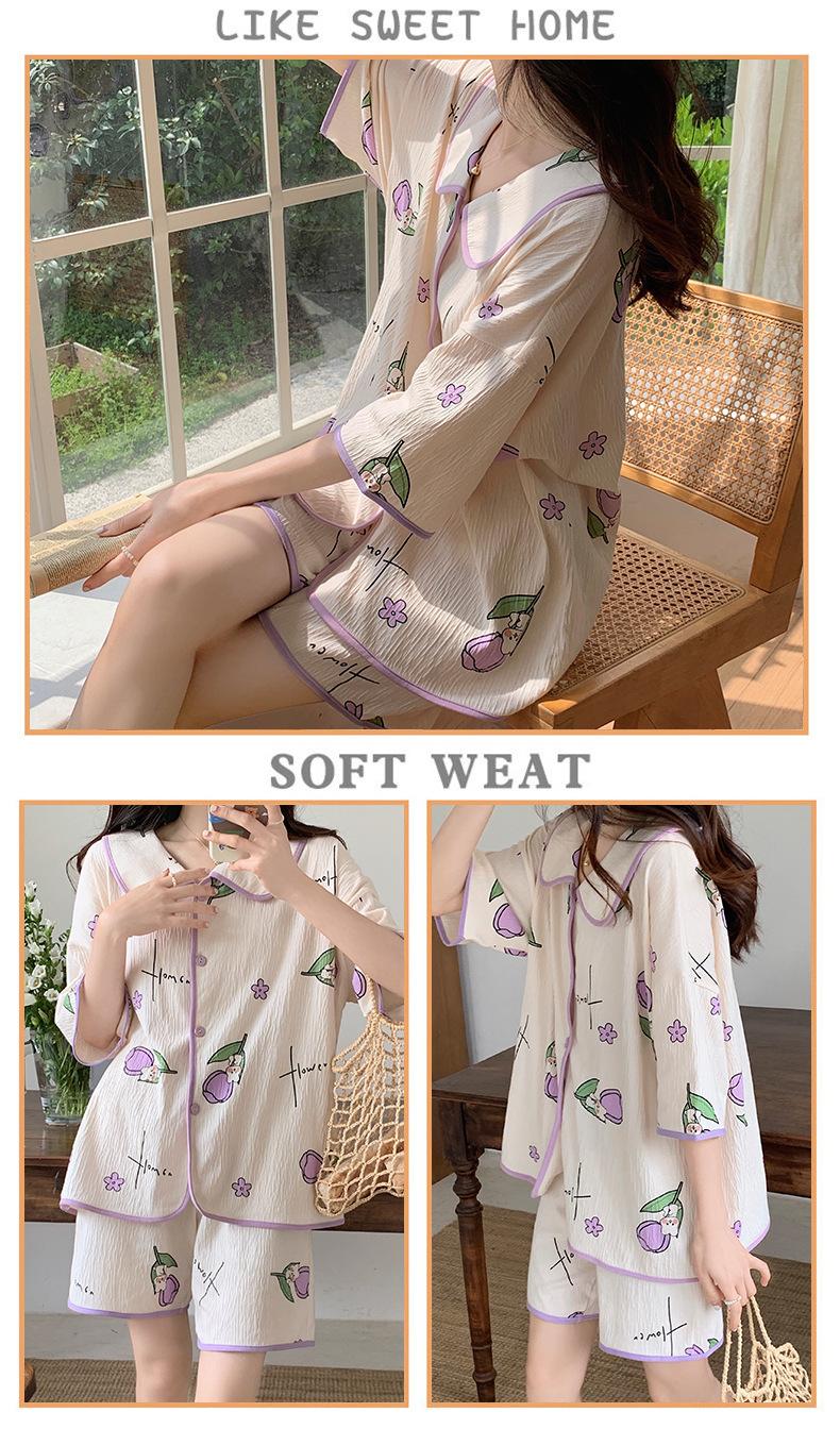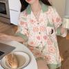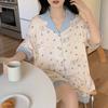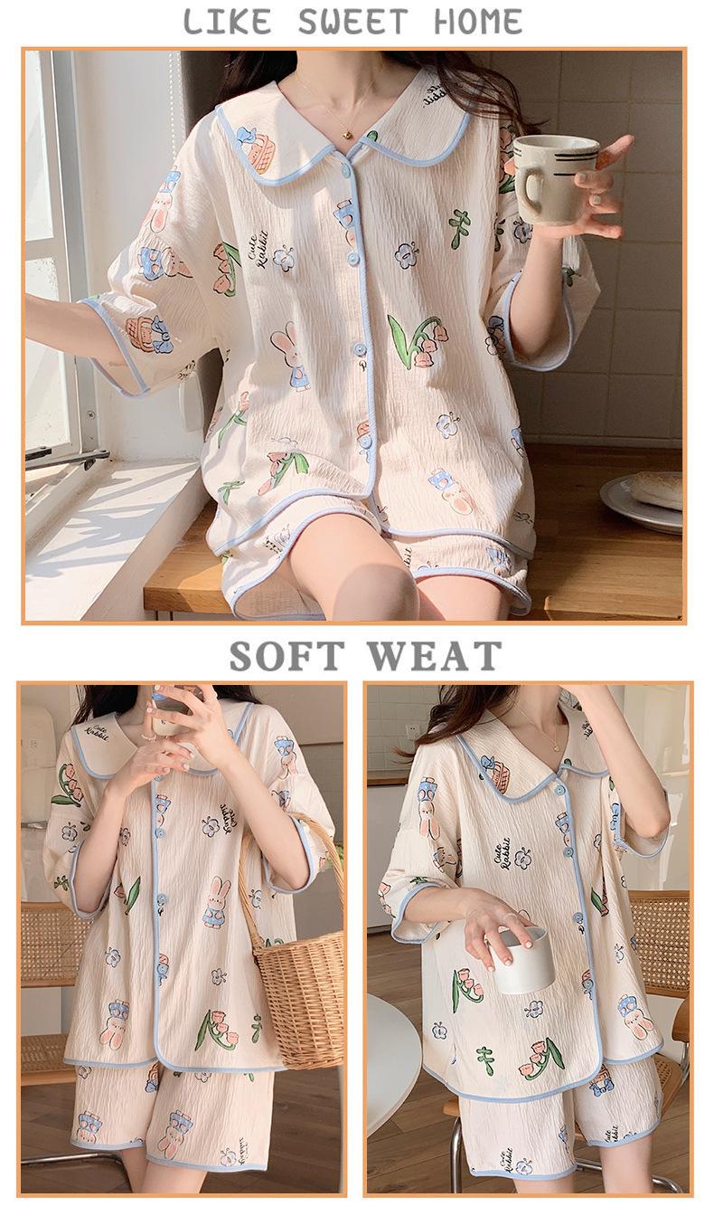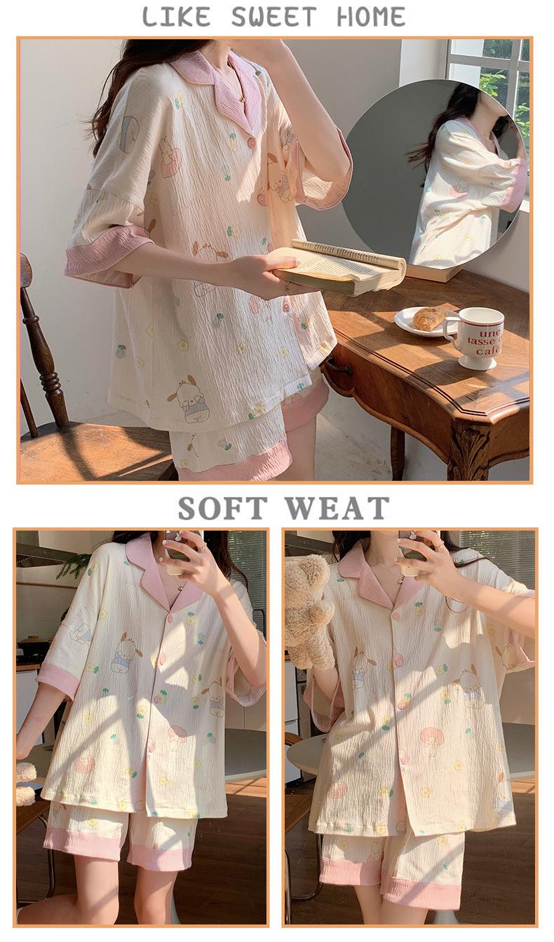 Pijama de verano para mujer, dulce y lindo dibujo animado, pantalones cortos de manga corta, traje holgado y fino, cárdigan para mujer, ropa de casa de verano