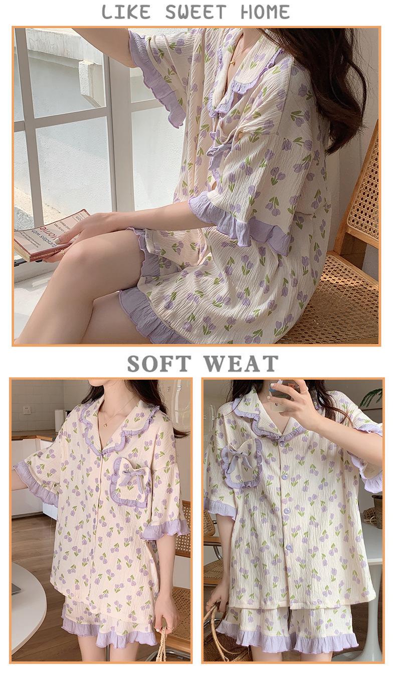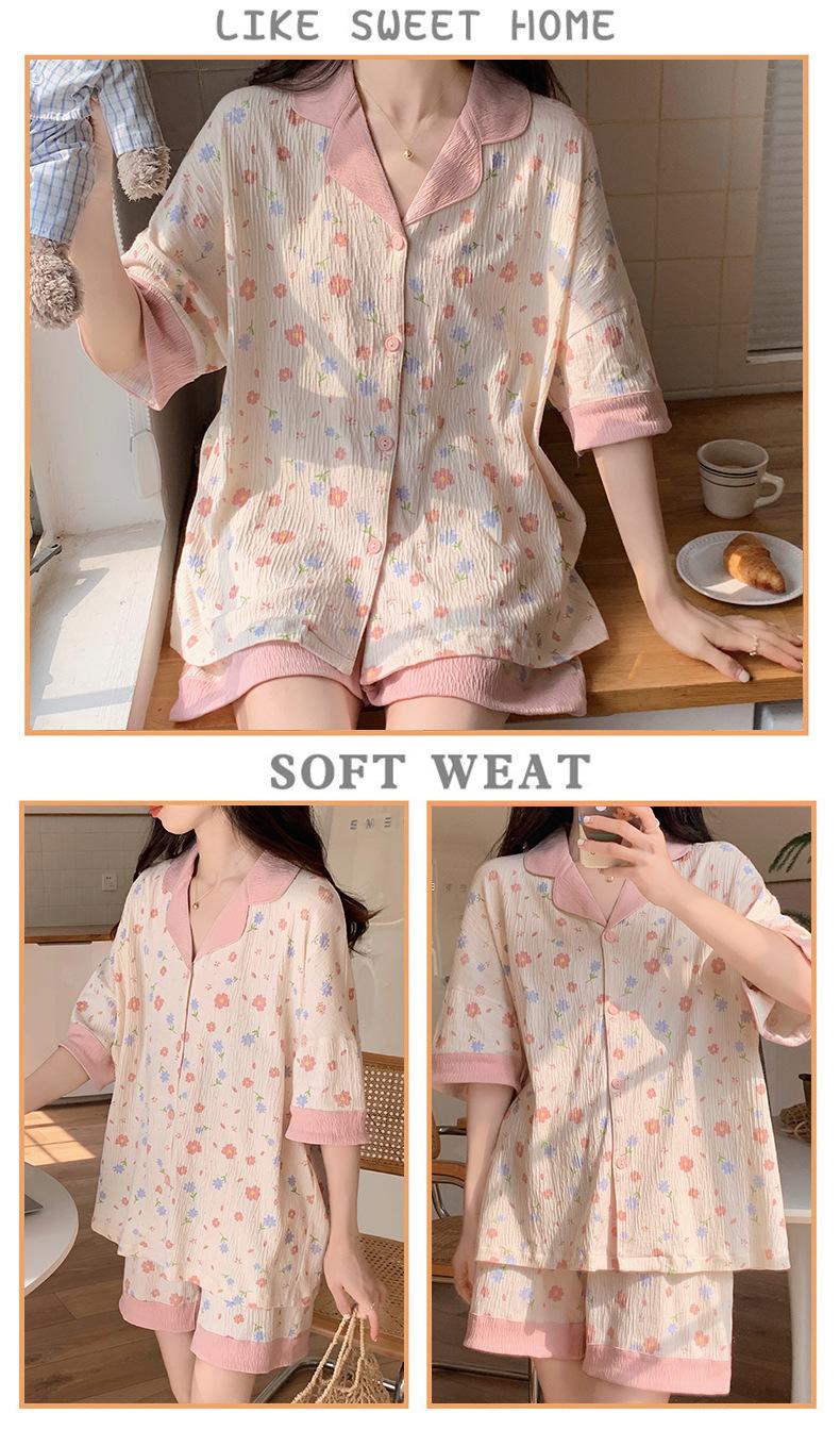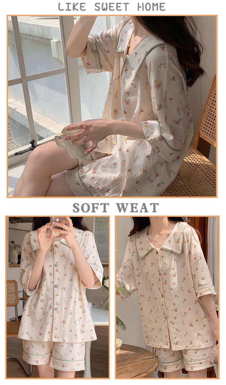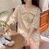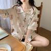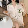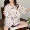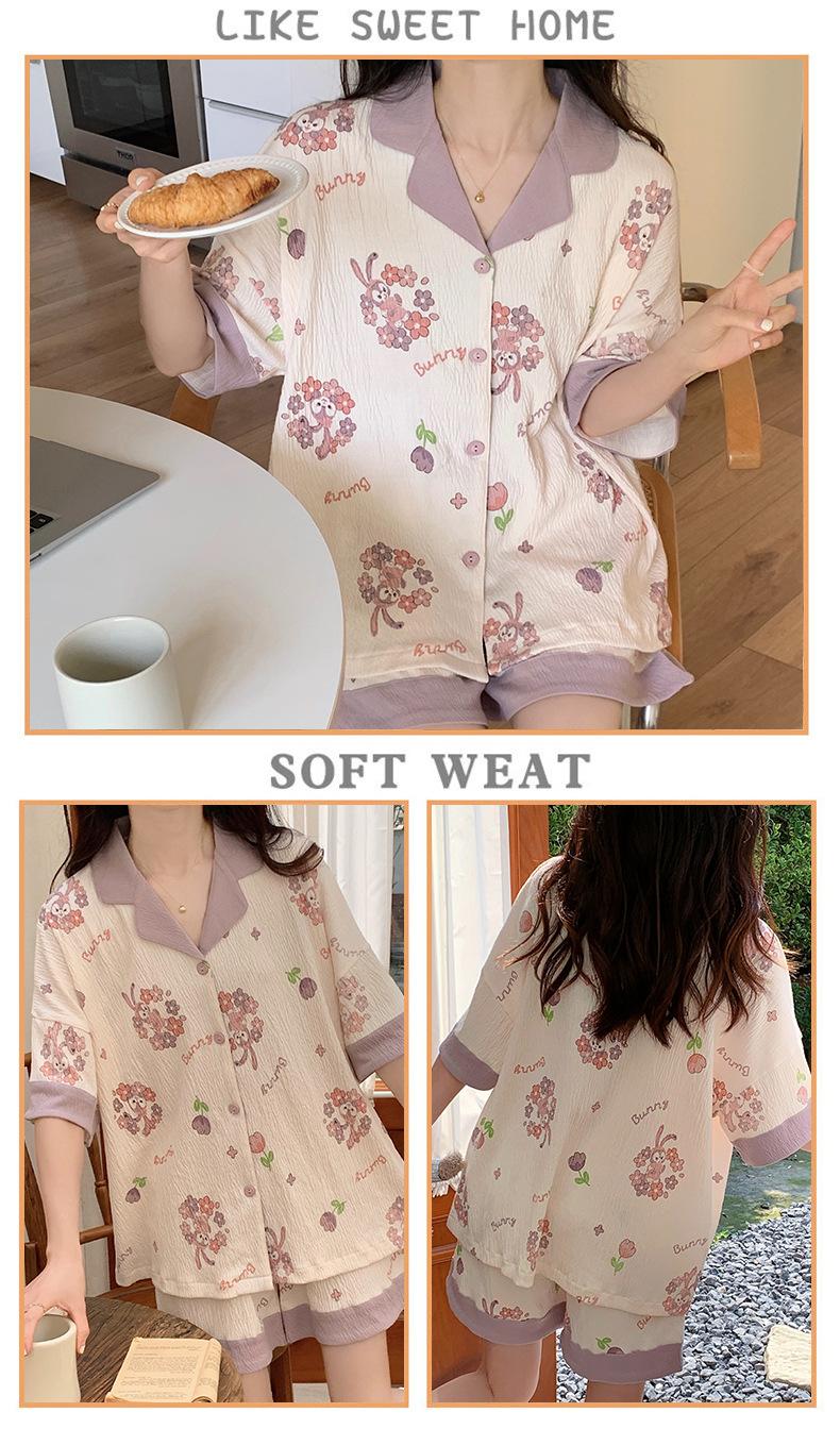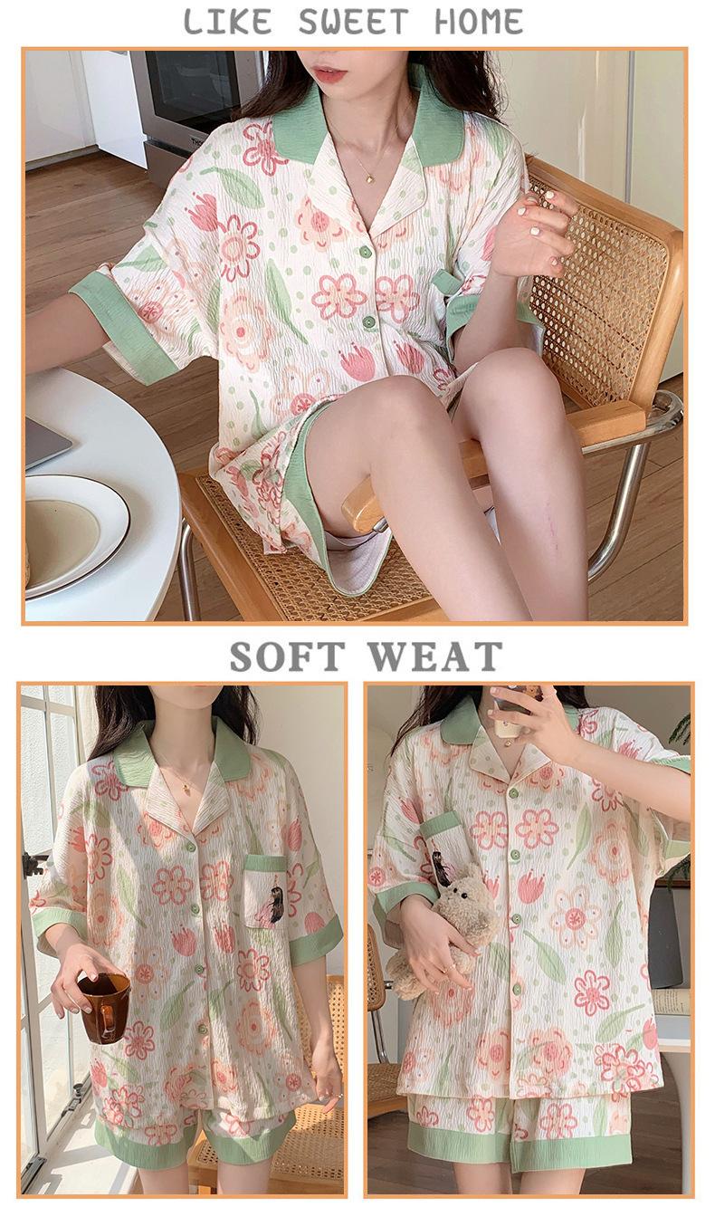 Pijama de verano para mujer, dulce y lindo dibujo animado, pantalones cortos de manga corta, traje holgado y fino, cárdigan para mujer, ropa de casa de verano
