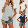 Camiseta de manga corta con cuello en V y encaje para mujer, comercio exterior transfronterizo de Amazon, Europa y América, primavera y verano de 2022