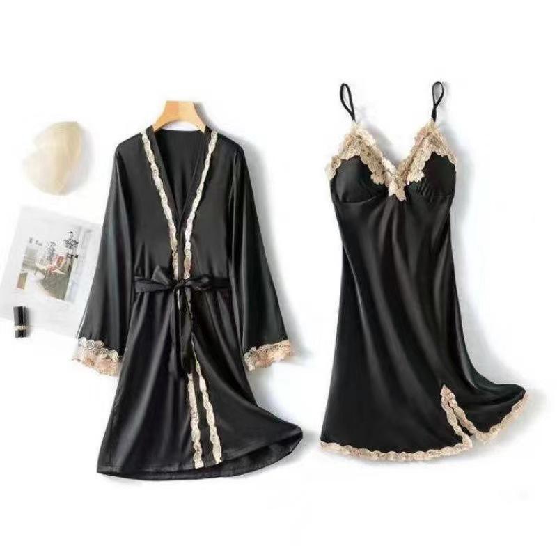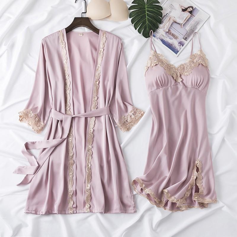 Nuevo camisón de verano con tirantes para mujer, camisón fino sexy de primavera y otoño con almohadilla para el pecho, conjunto de dos piezas, ropa para el hogar