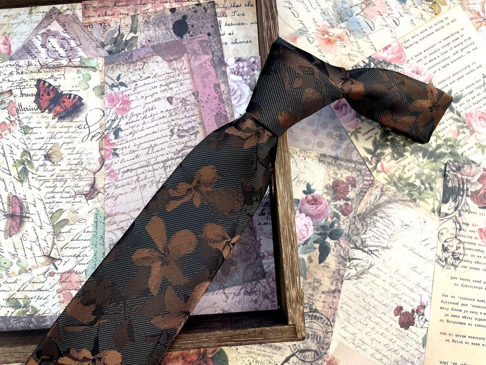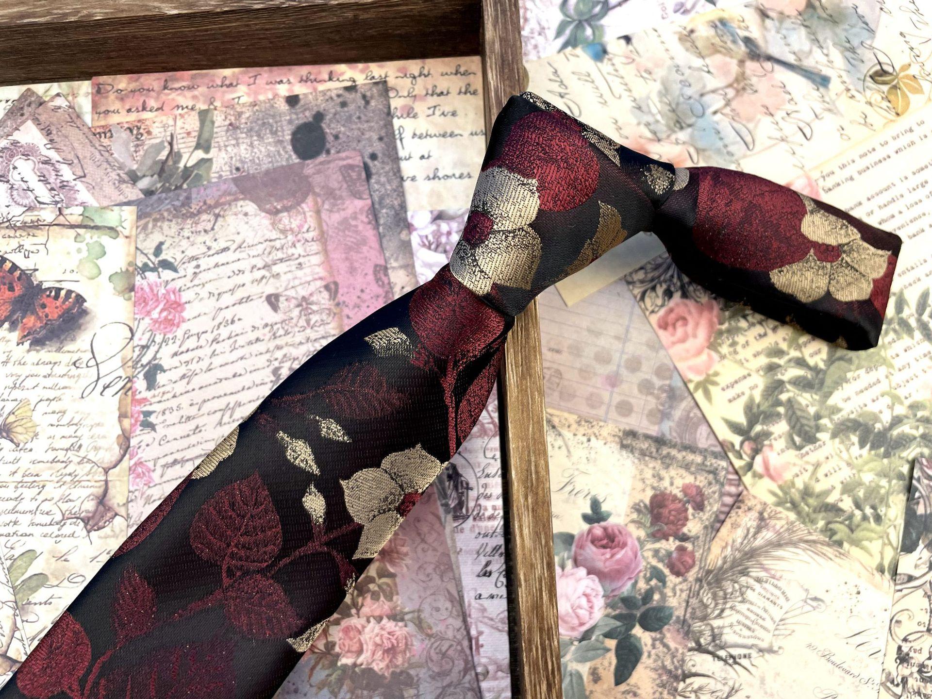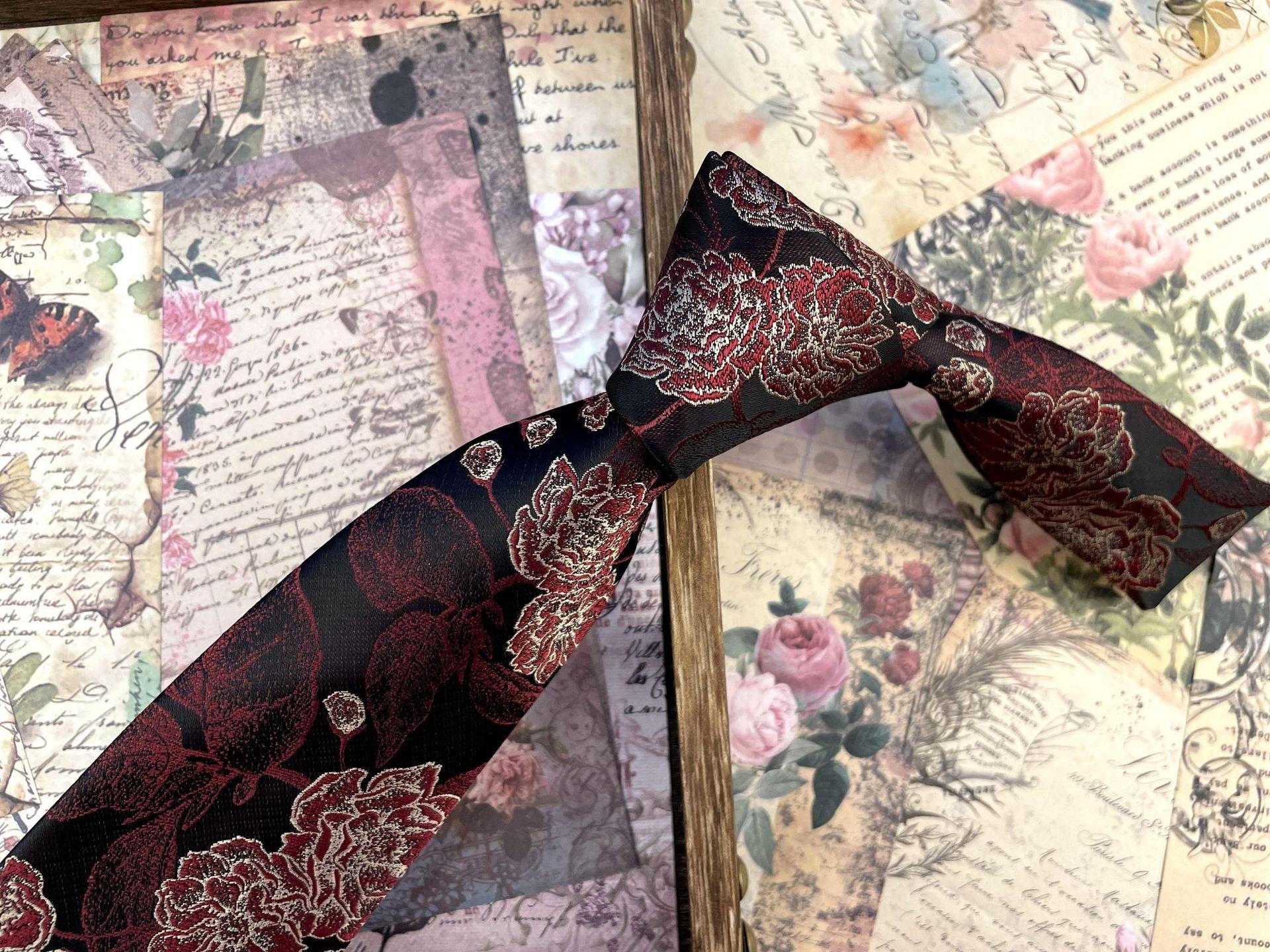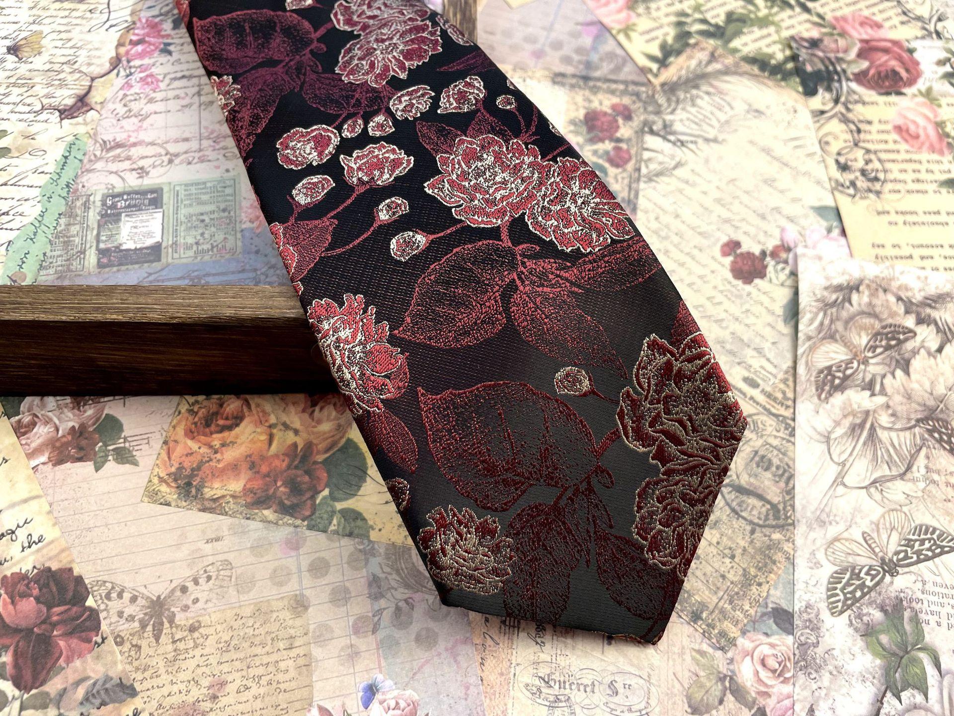 Corbata marrón serie Huaman de 8 cm para negocios, estilo profesional, informal, estilo coreano, retro, con flores, ramas y hojas, color rojo oscuro y azul.