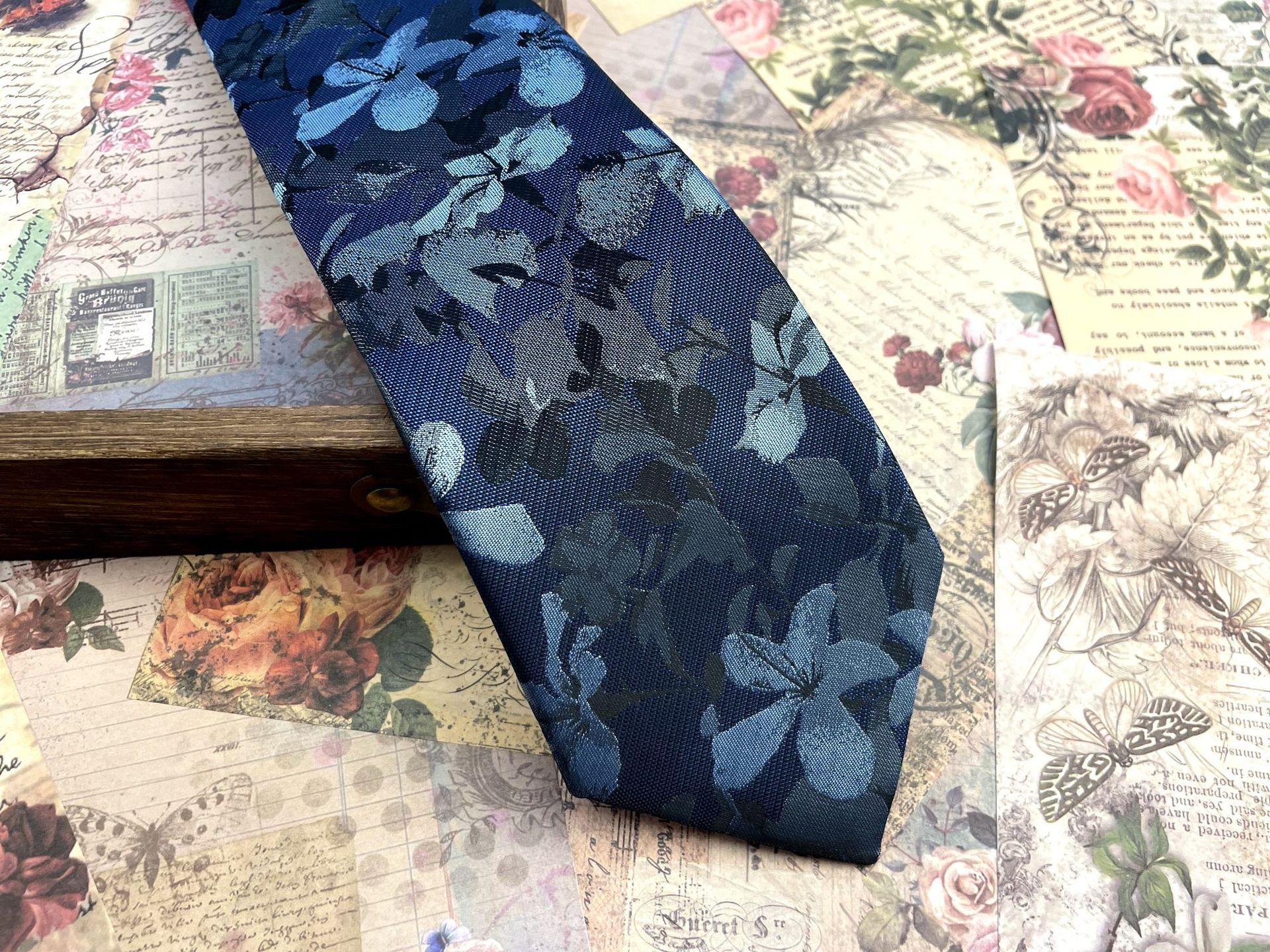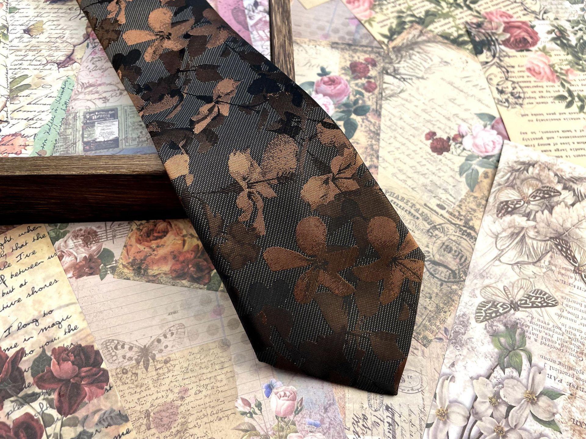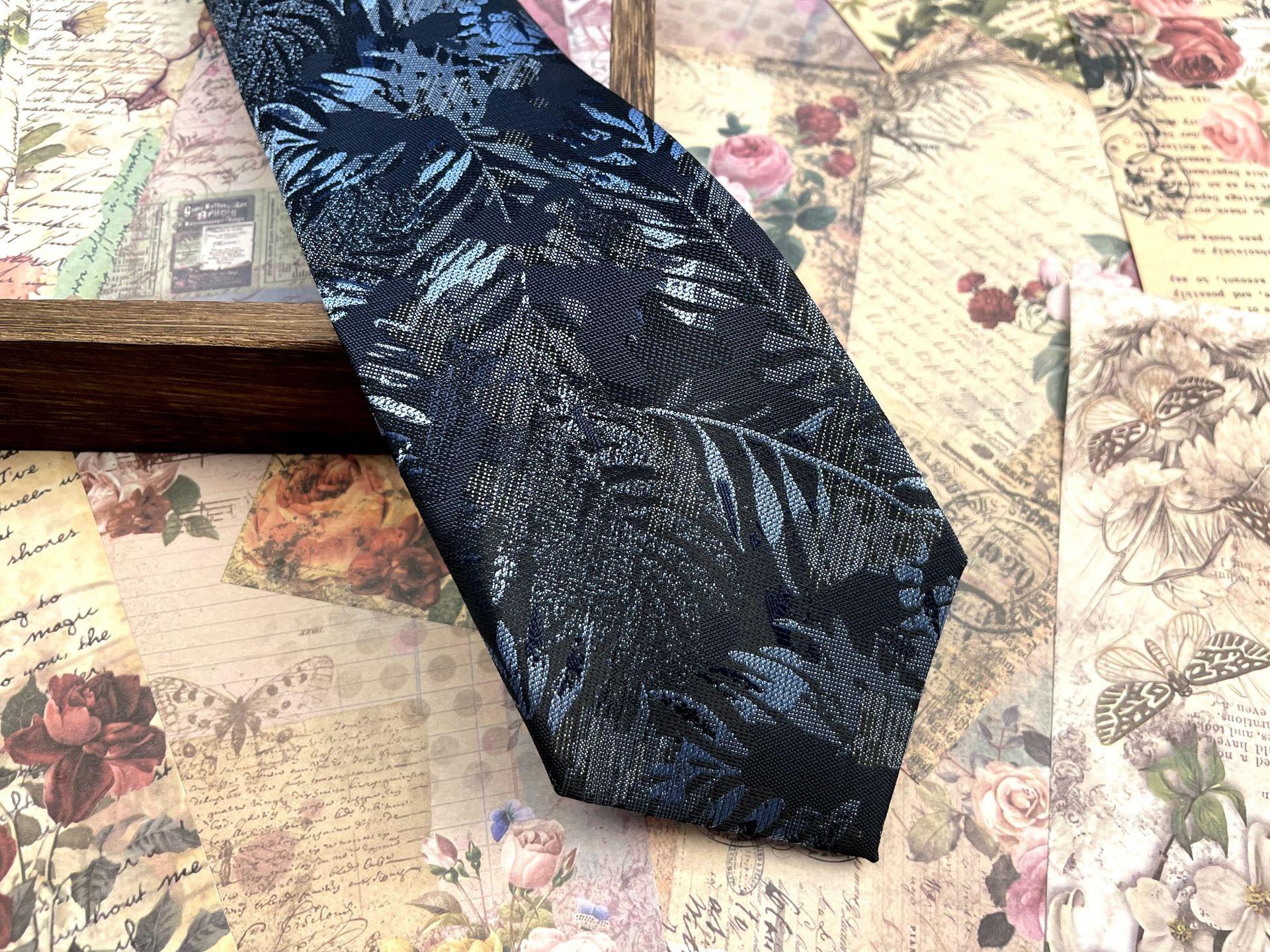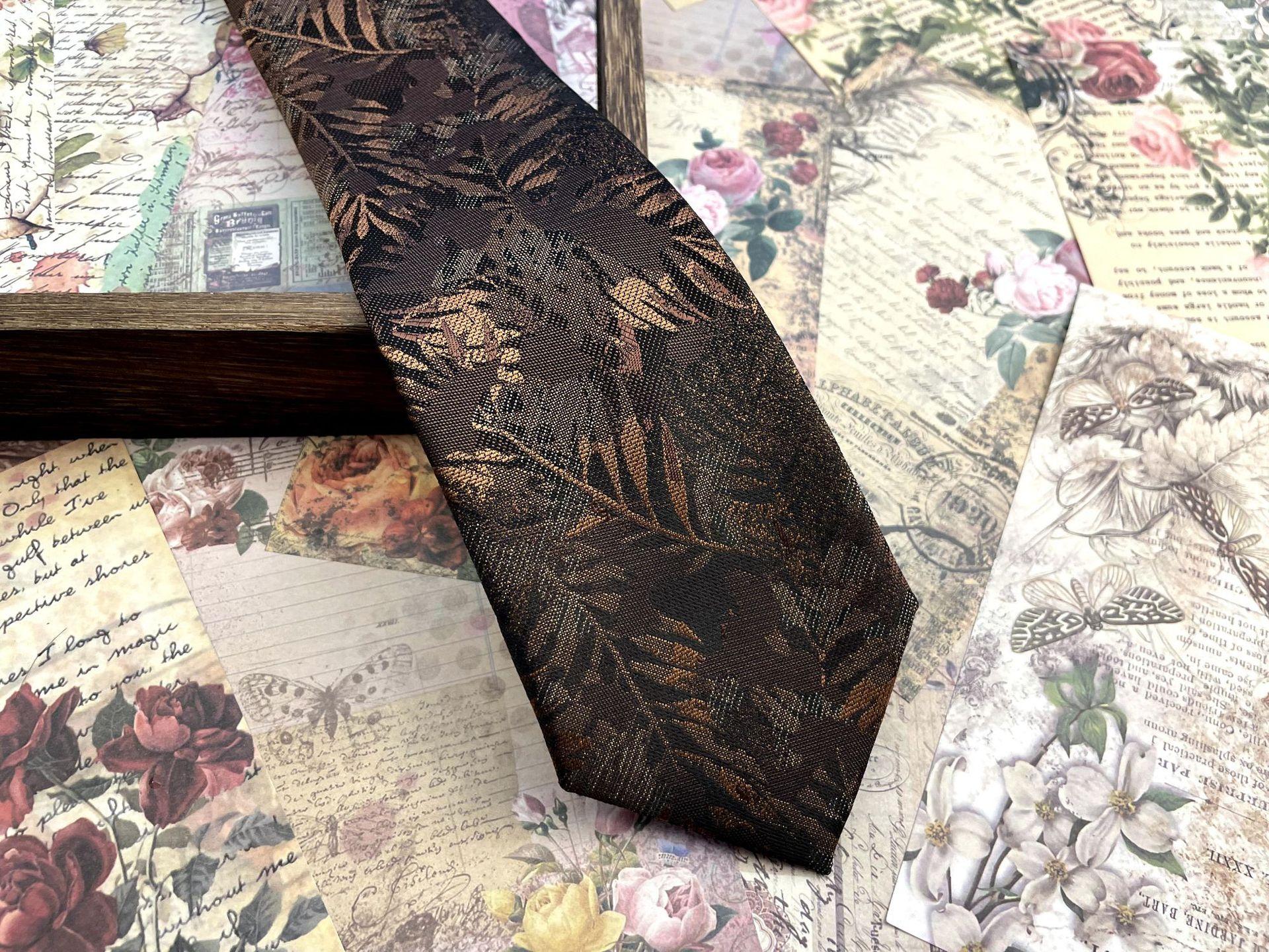 Corbata marrón serie Huaman de 8 cm para negocios, estilo profesional, informal, estilo coreano, retro, con flores, ramas y hojas, color rojo oscuro y azul.