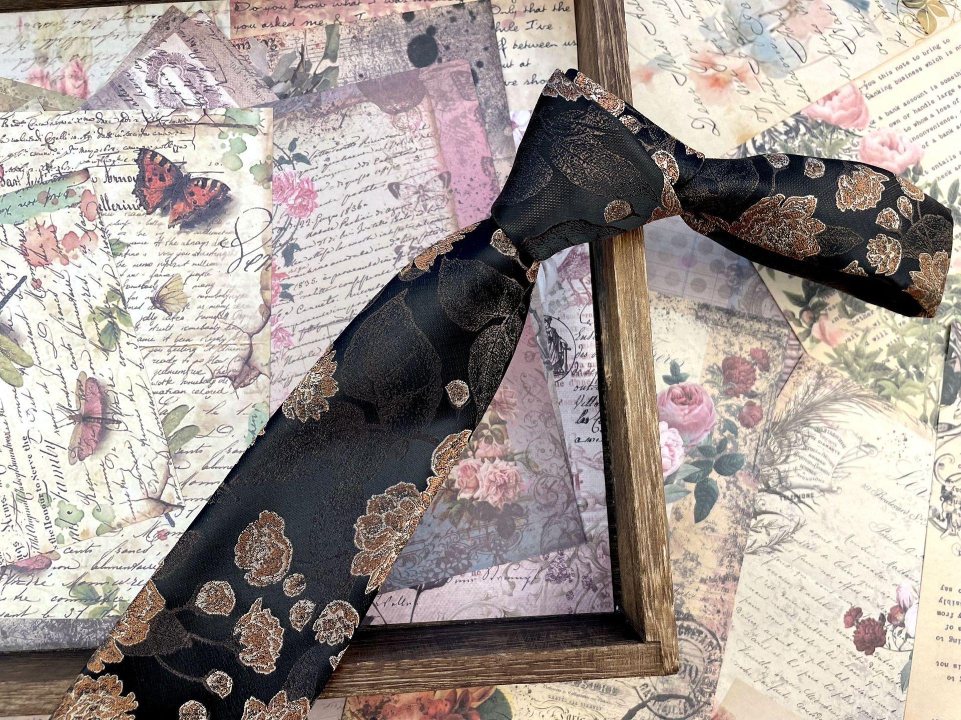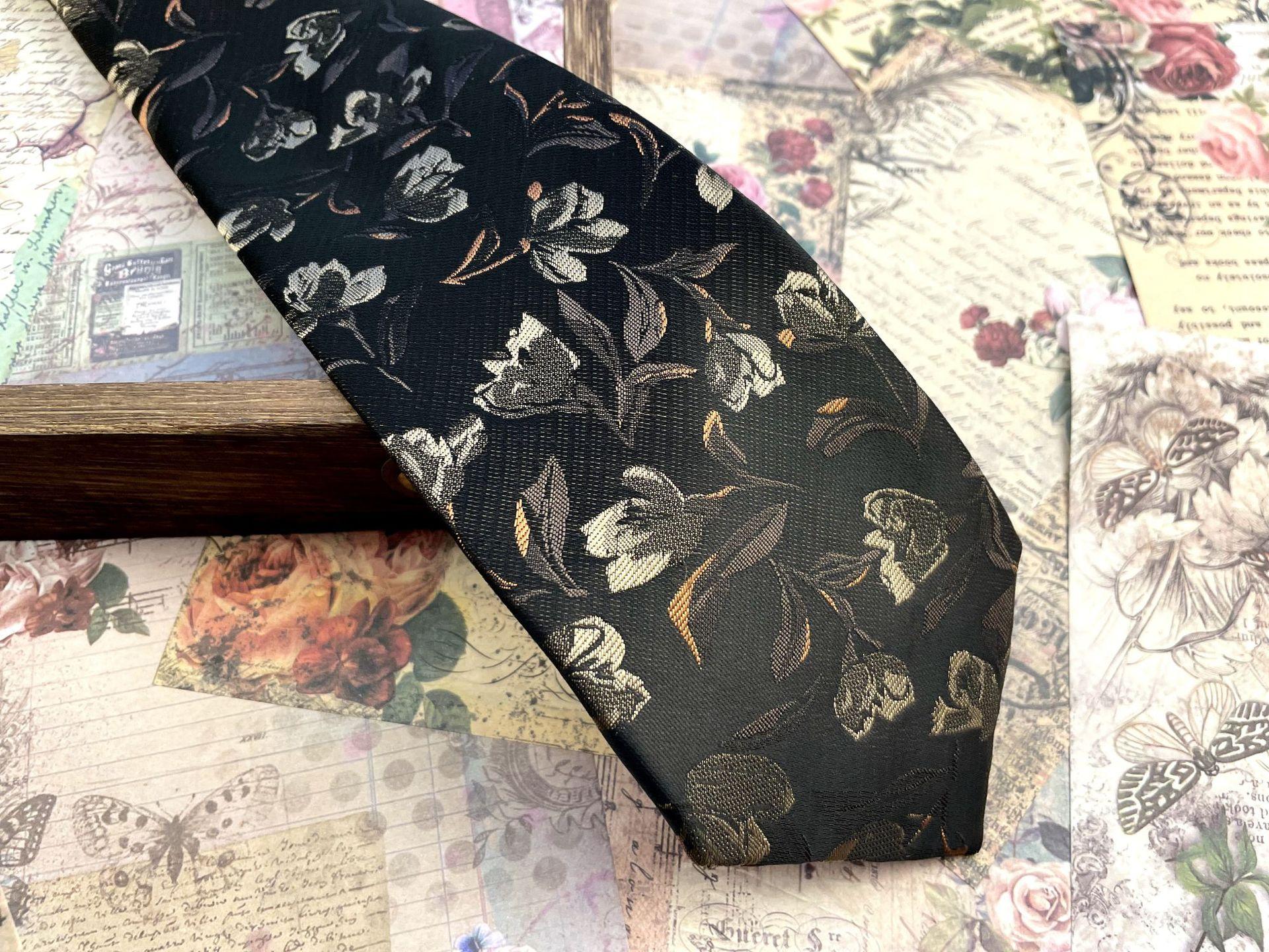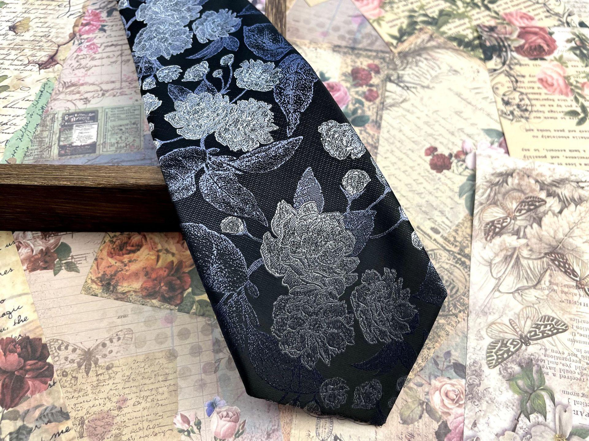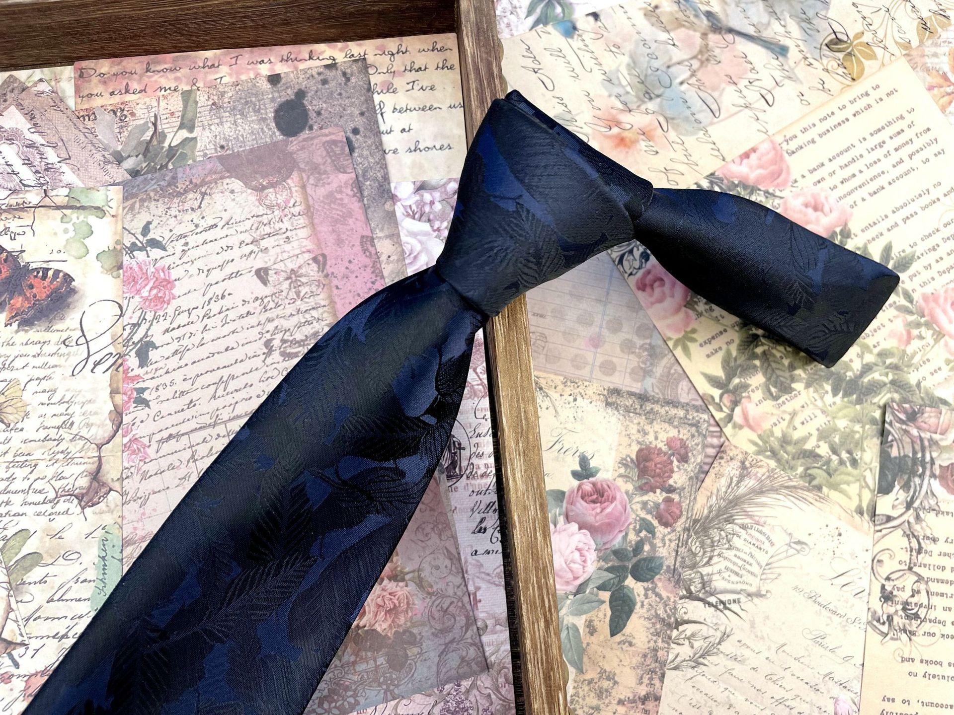 Corbata marrón serie Huaman de 8 cm para negocios, estilo profesional, informal, estilo coreano, retro, con flores, ramas y hojas, color rojo oscuro y azul.