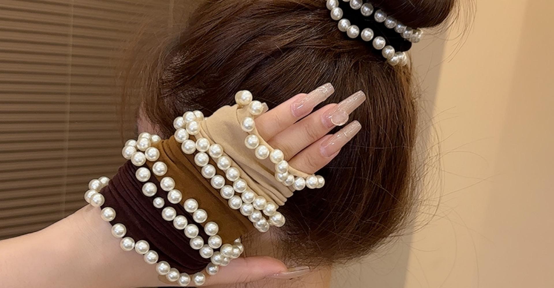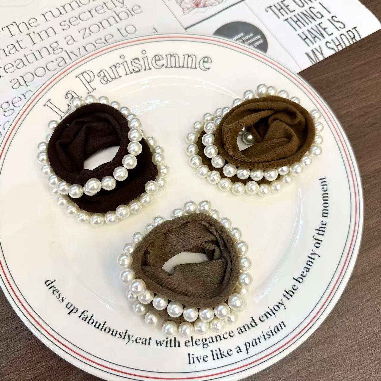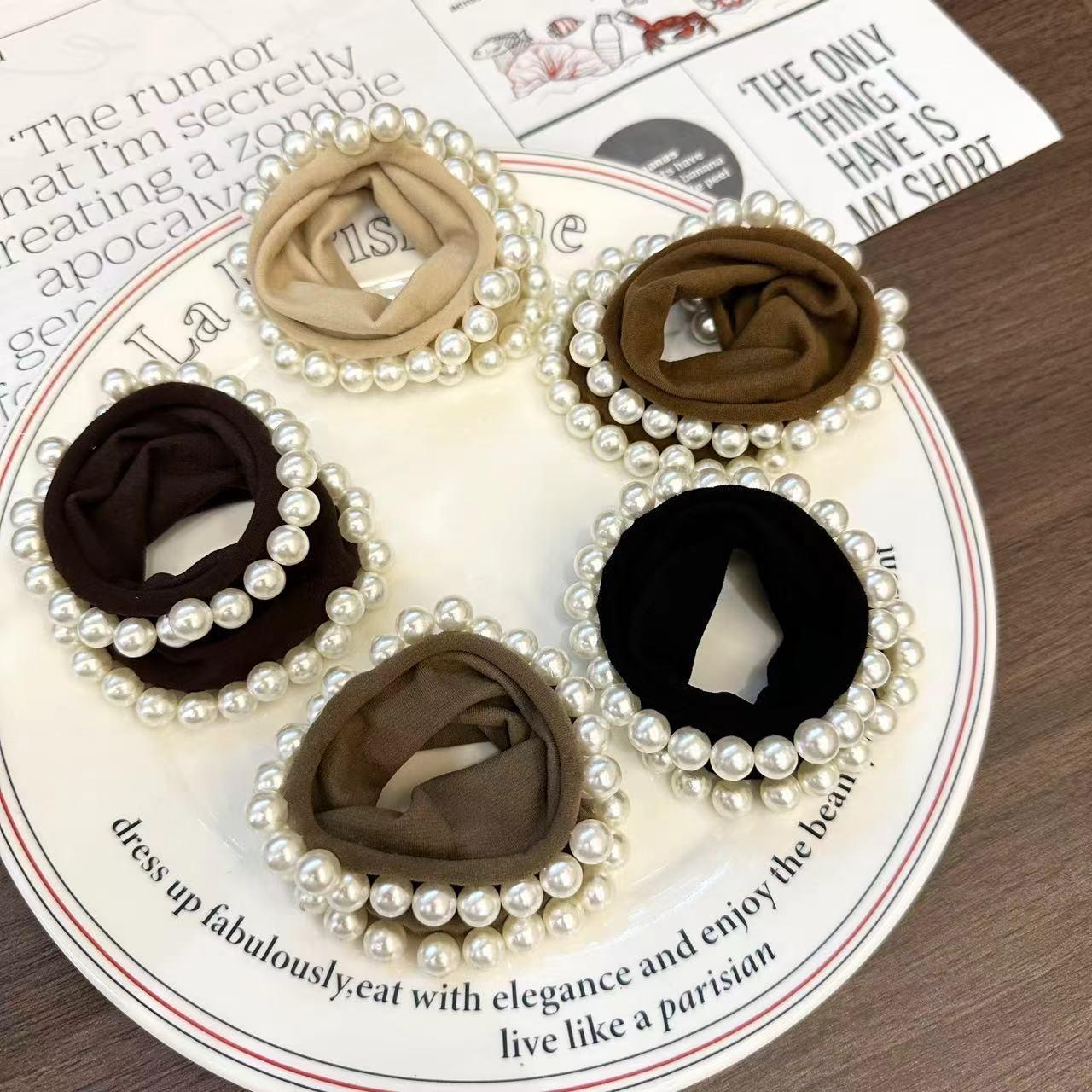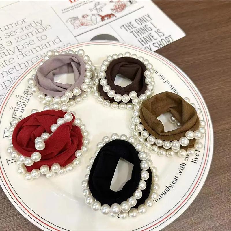 Diadema de Perlas Estilo Coreano Lazo para el Cabello Accesorios para el Cabello de Alta Gama Cabello Cola de Caballo Banda Elástica de Goma de Alta Elasticidad Tocado para Mujer