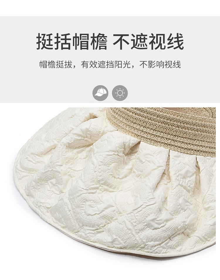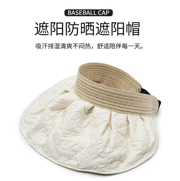 Sombrero de ala ancha con protección solar para mujer, sombrero de copa vacío de verano con protección UV, para cubrir la cara, informal, para viajes al aire libre y playa.
