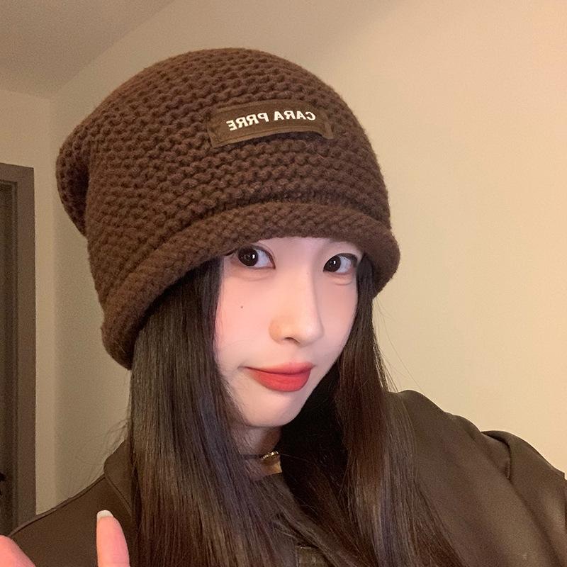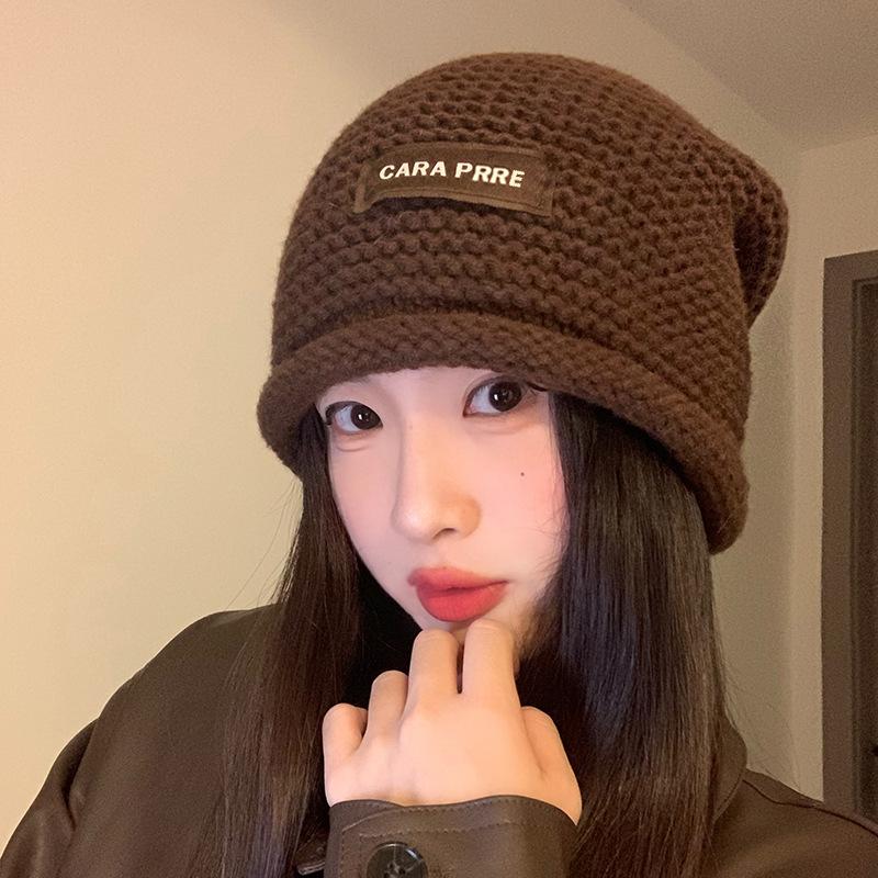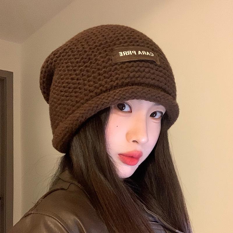 Gorro de lana de punto para mujer, estilo coreano, para otoño e invierno, combina con todo, con cabeza grande y pequeño, tipo jersey.