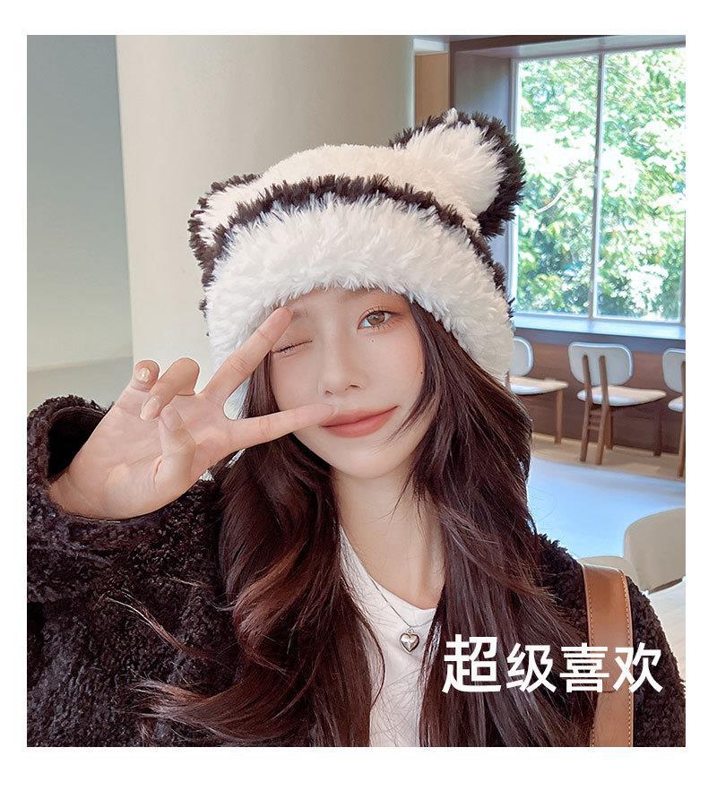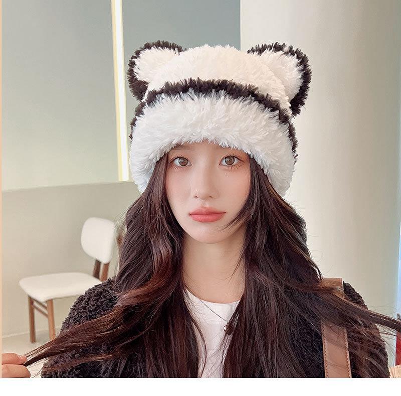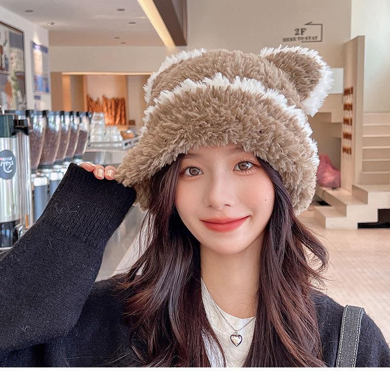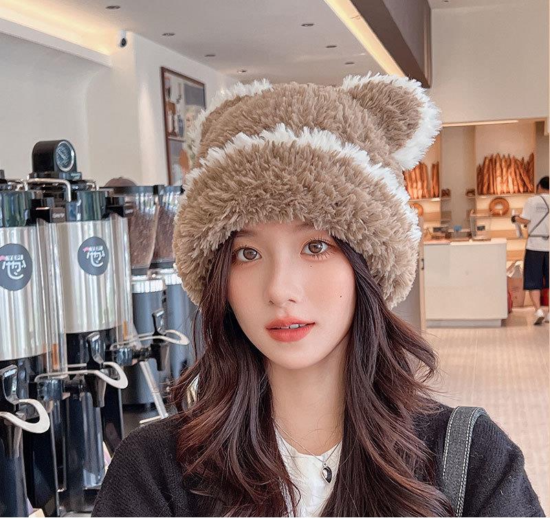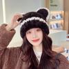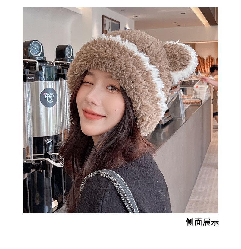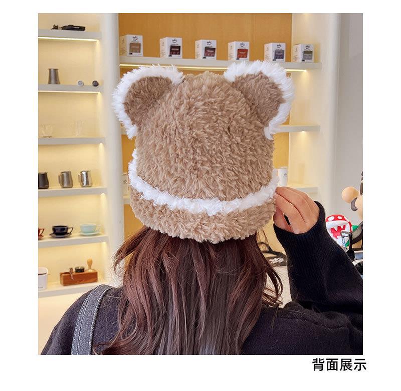 Lindo gorro de oso de peluche para niños, otoño e invierno, con cara dulce, pequeño gorro de punto, cálido gorro de lana de punto con protección para las orejas.