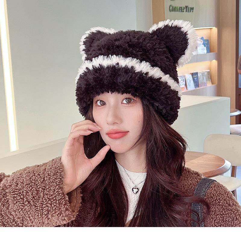 A-460 black knitted bear hat, A-460 gray knitted bear hat, A-460 khaki knitted bear hat