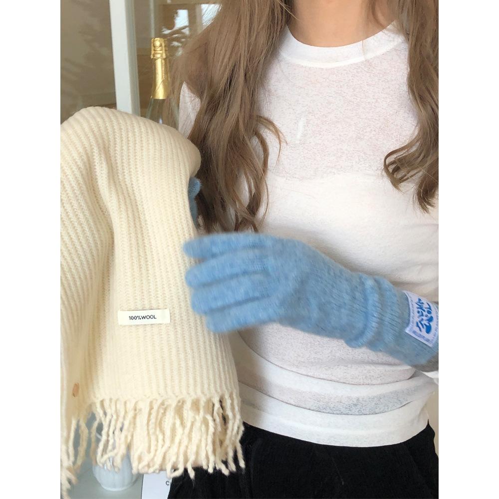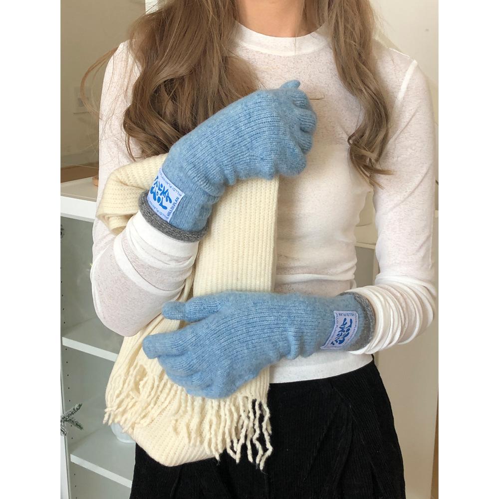 Nuevos guantes largos a juego de colores, bonitos guantes tejidos para otoño e invierno, cálidos, con pantalla táctil, resistentes al viento, con dedos de lana para invierno.