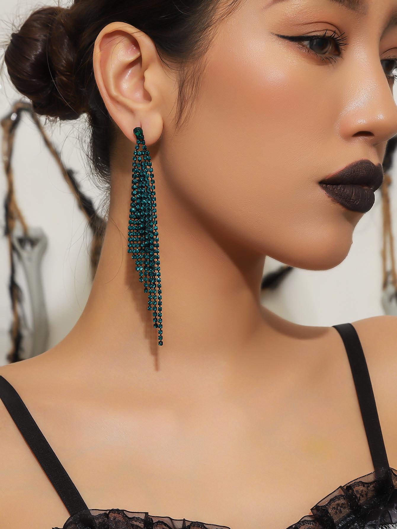 Pendientes largos con borlas verdes retro clásicos transfronterizos europeos y americanos Pendientes de moda para mujer que combinan con todo Pendientes pendientes