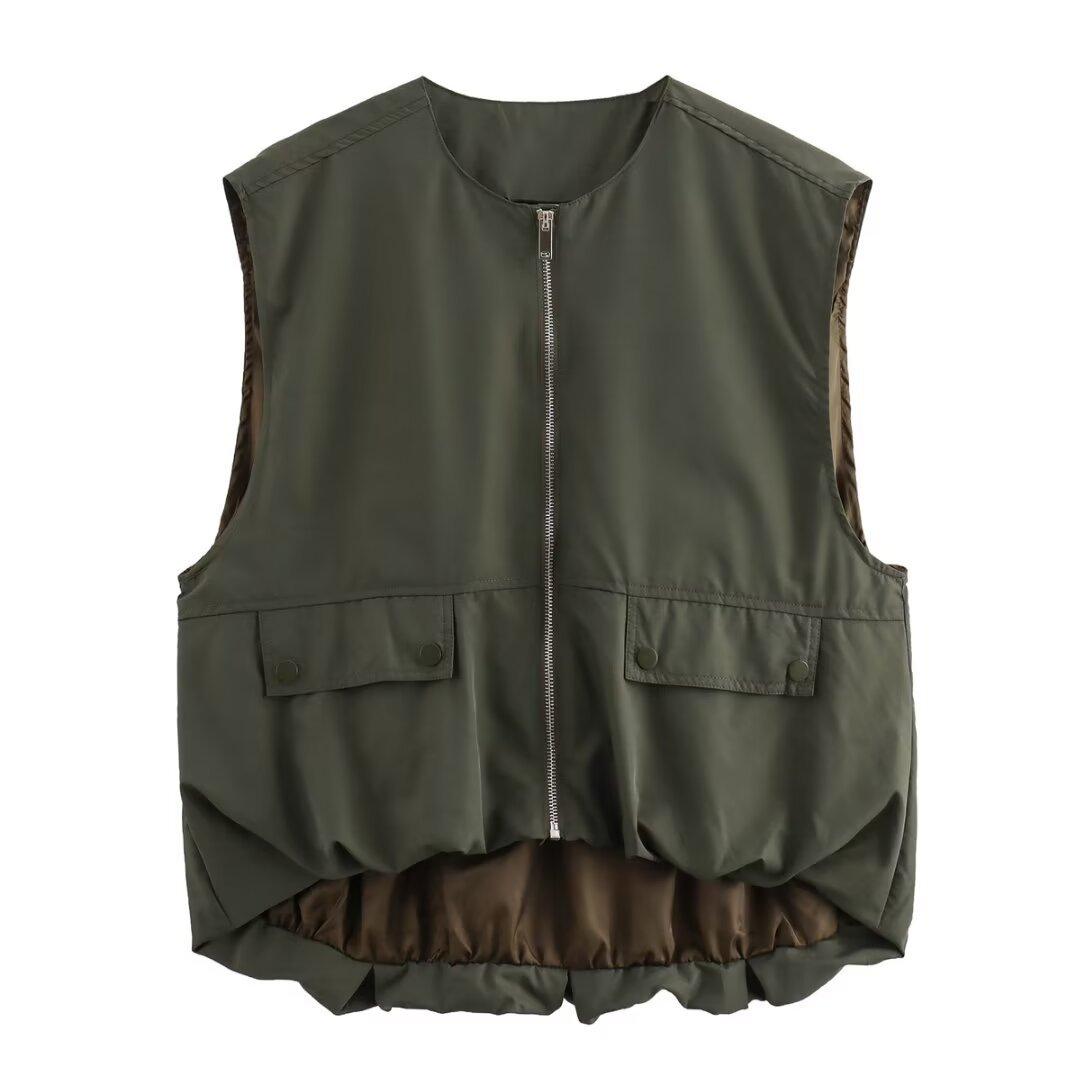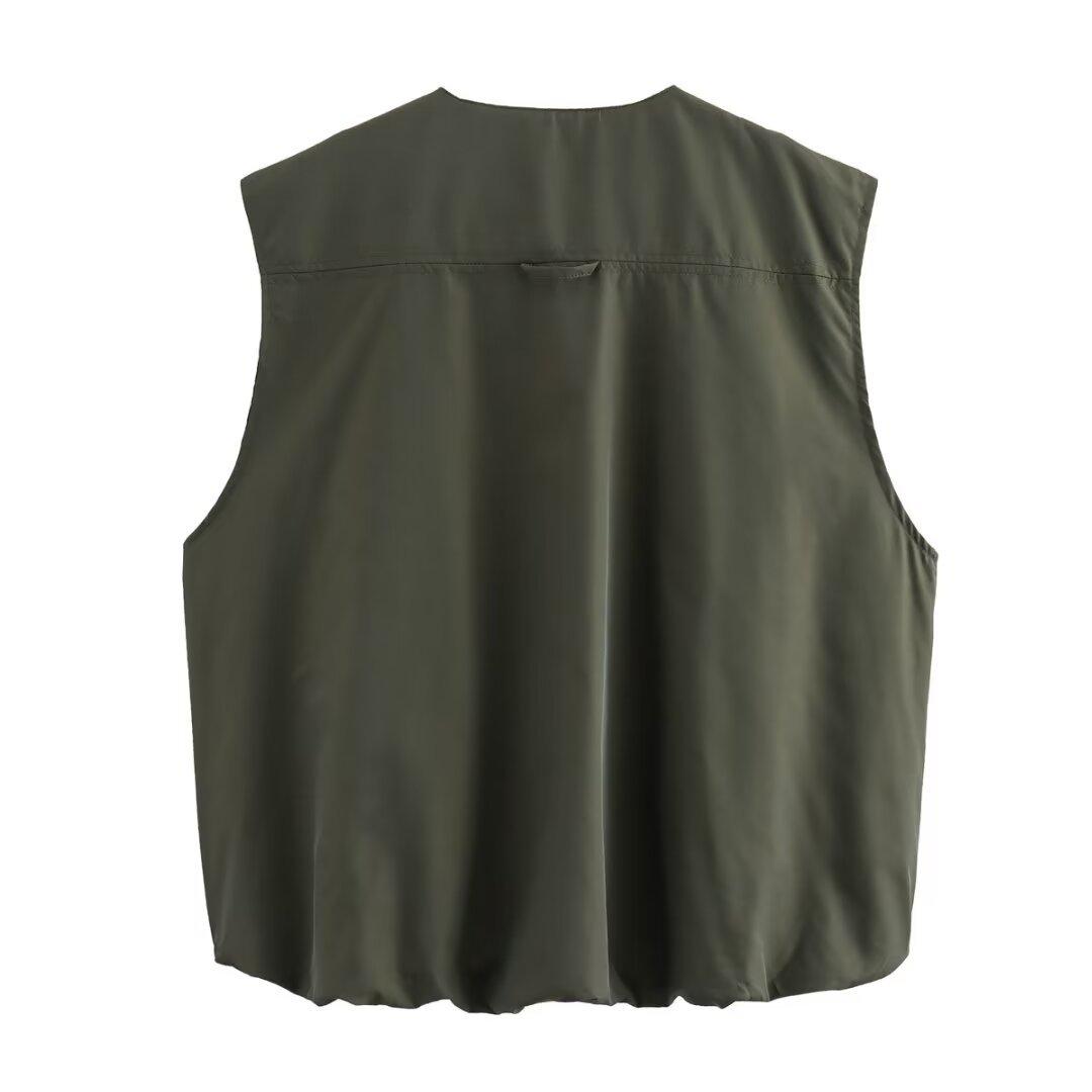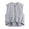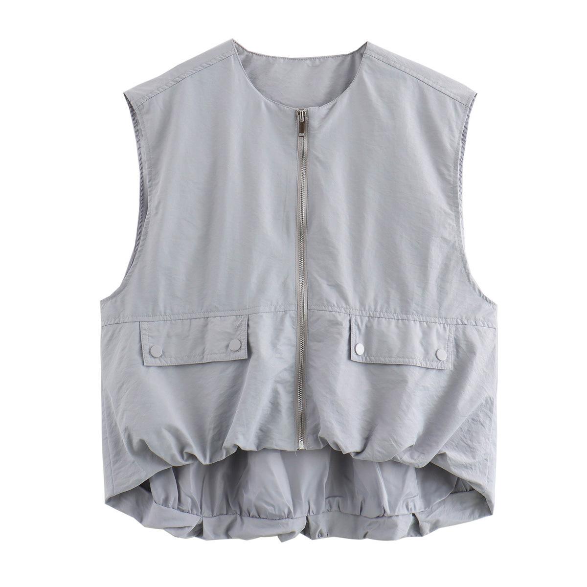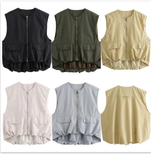Chaleco de verano 2024 con cuello redondo y cremallera, multicolor, con dobladillo con volantes, estilo transfronterizo europeo y americano para mujer