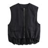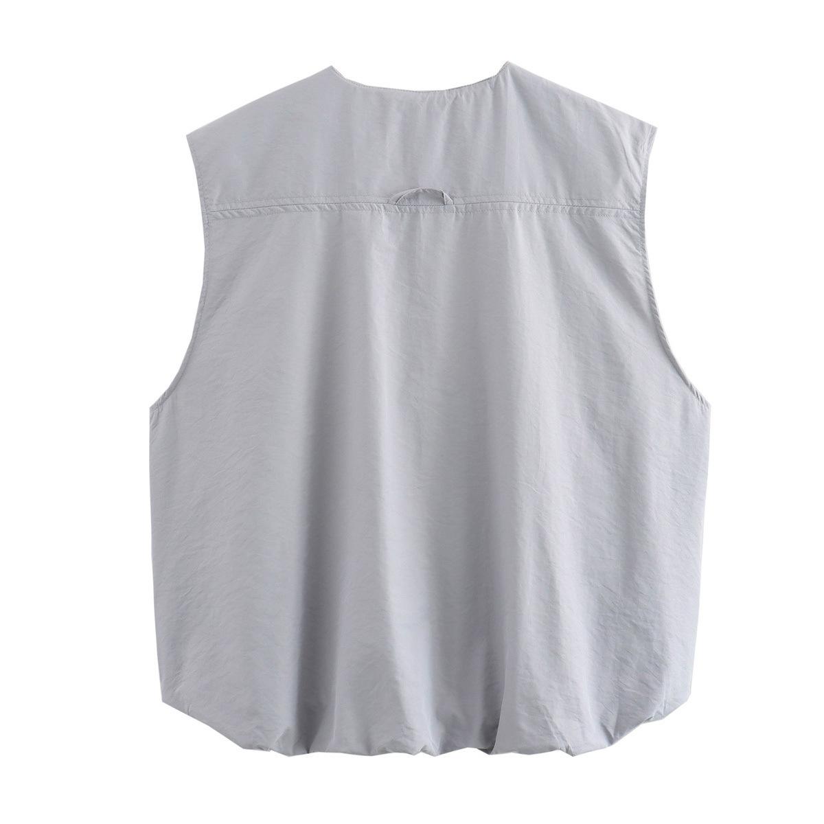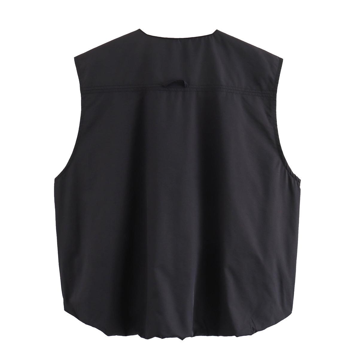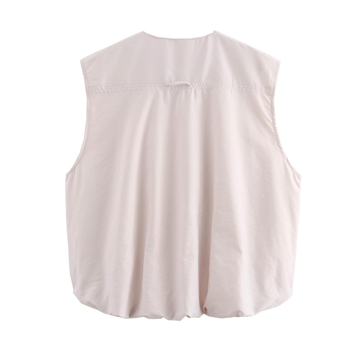 Chaleco de verano 2024 con cuello redondo y cremallera, multicolor, con dobladillo con volantes, estilo transfronterizo europeo y americano para mujer
