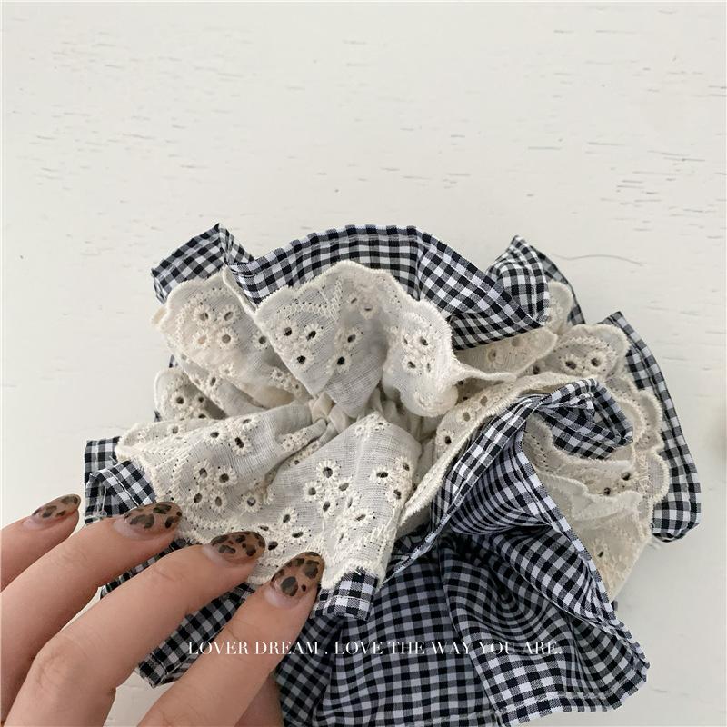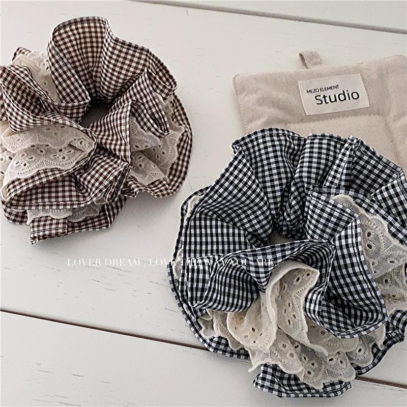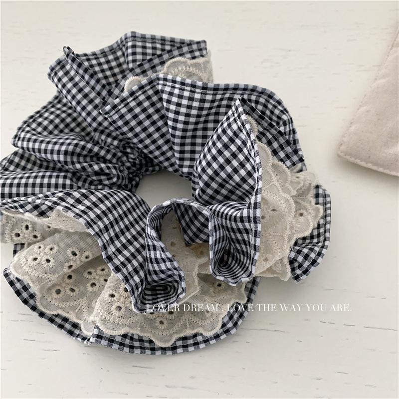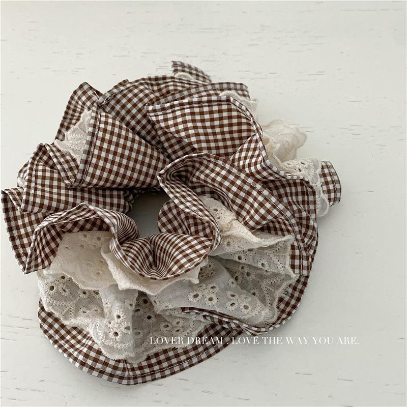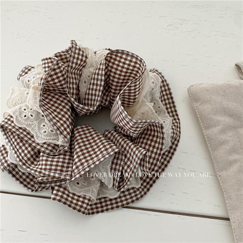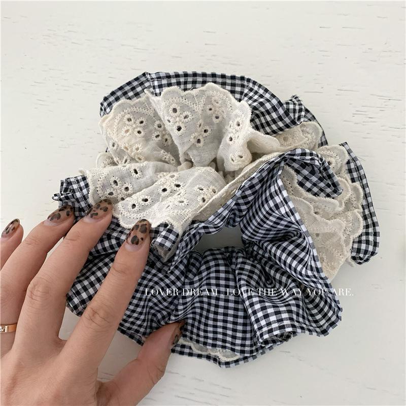 Anillo para el Cabello Coreano Nuevo de Encaje de Doble Capa a Cuadros de Intestino Grueso, Tocado de Textura Dulce y a la Moda, Accesorios para el Cabello Versátiles para Mujeres