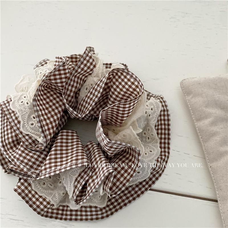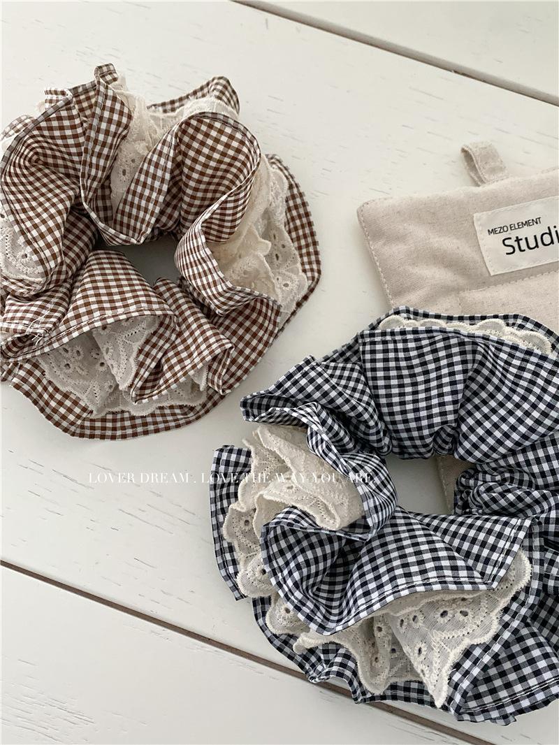 Brown plaid lace double layer hair tie, Black plaid lace double layer hair tie