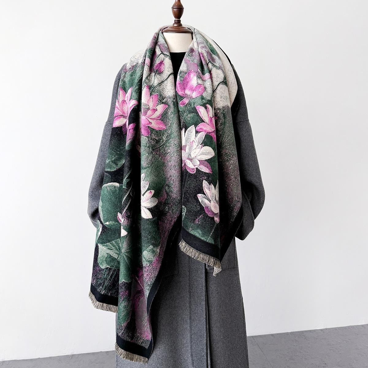 Bufanda de cachemira estampada de alta gama, estilo lujoso y ligero, para mujer, hermosa, antigua y elegante, chal cálido para invierno y otoño.