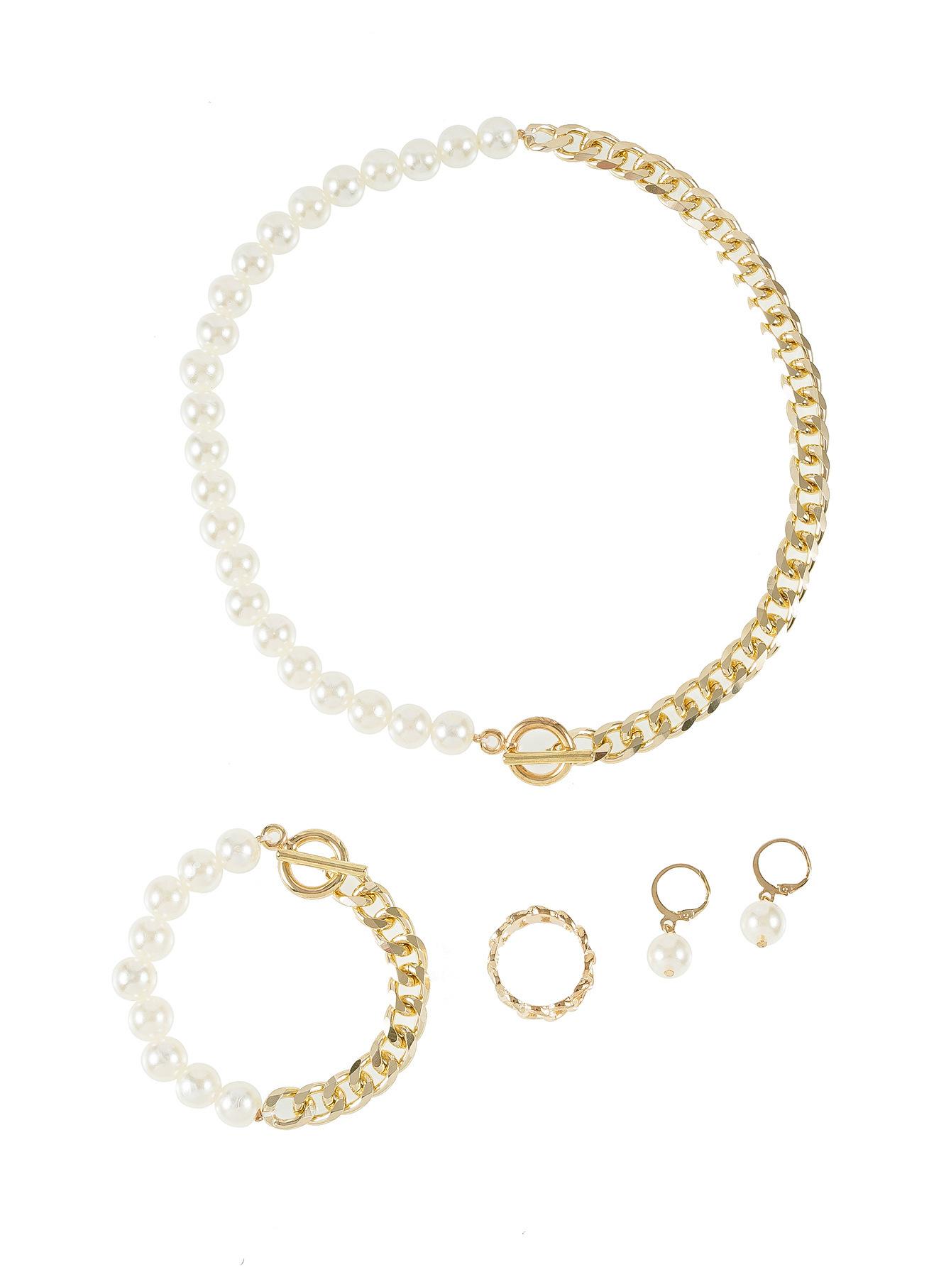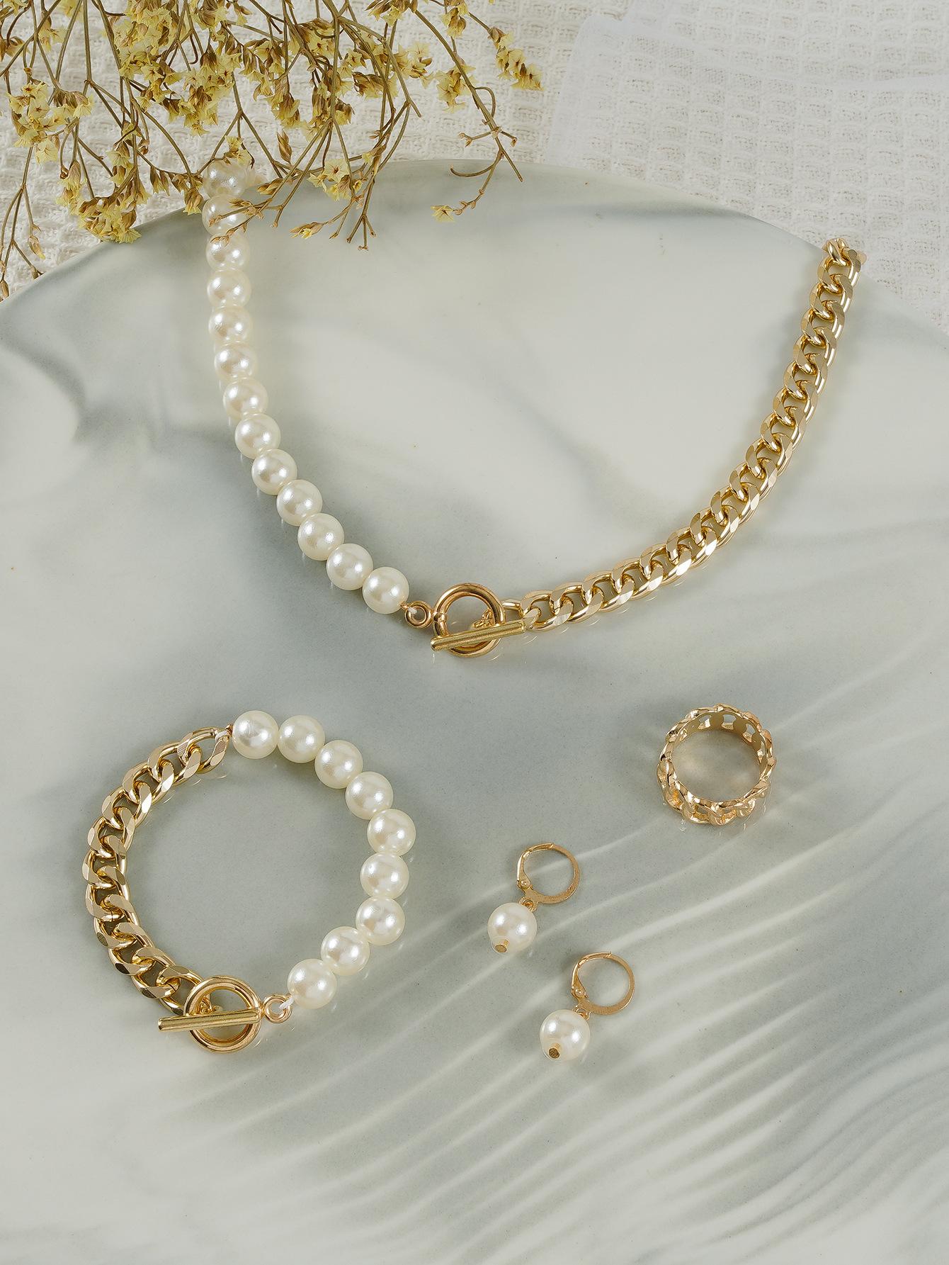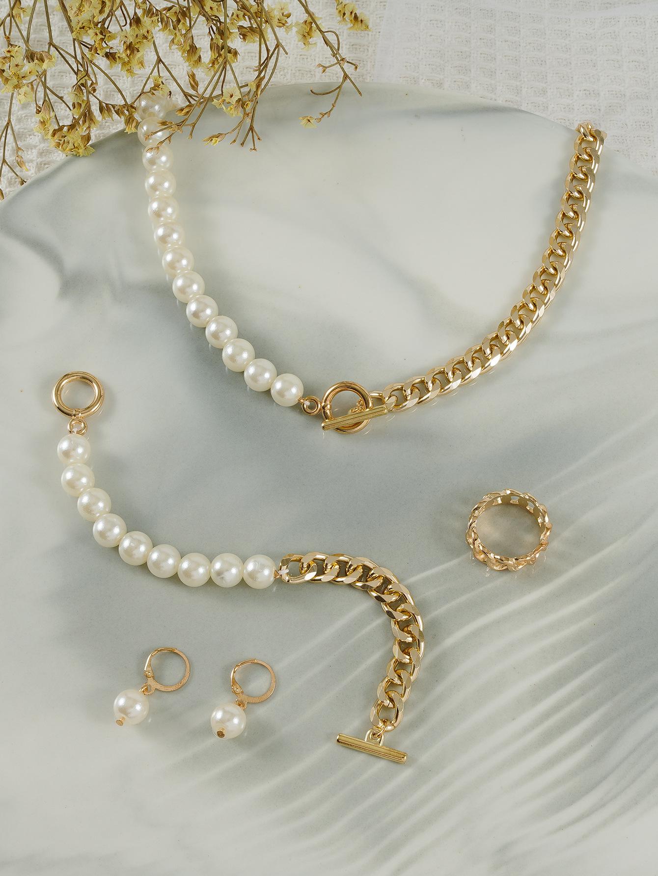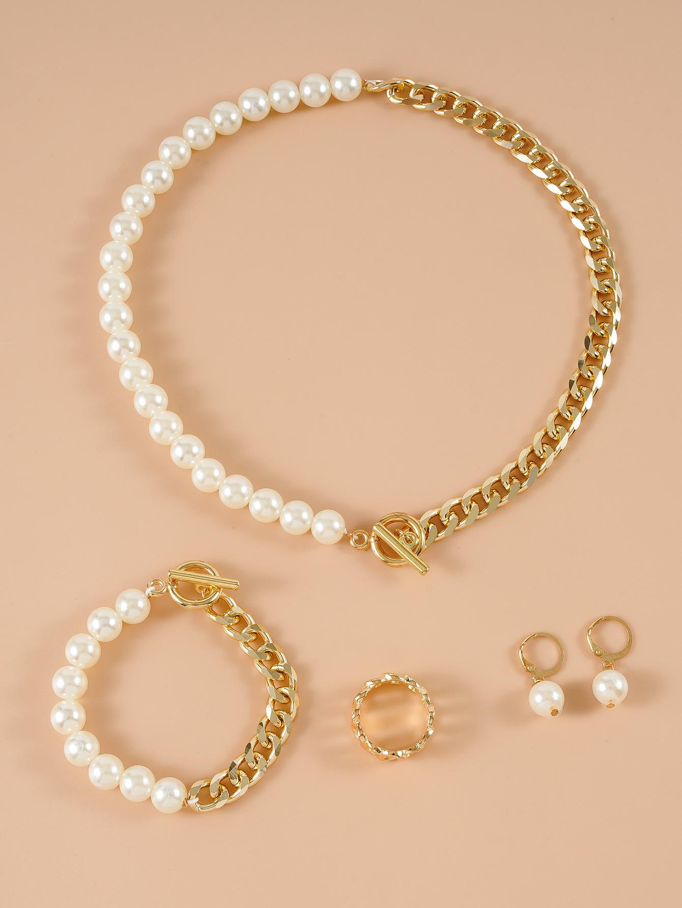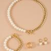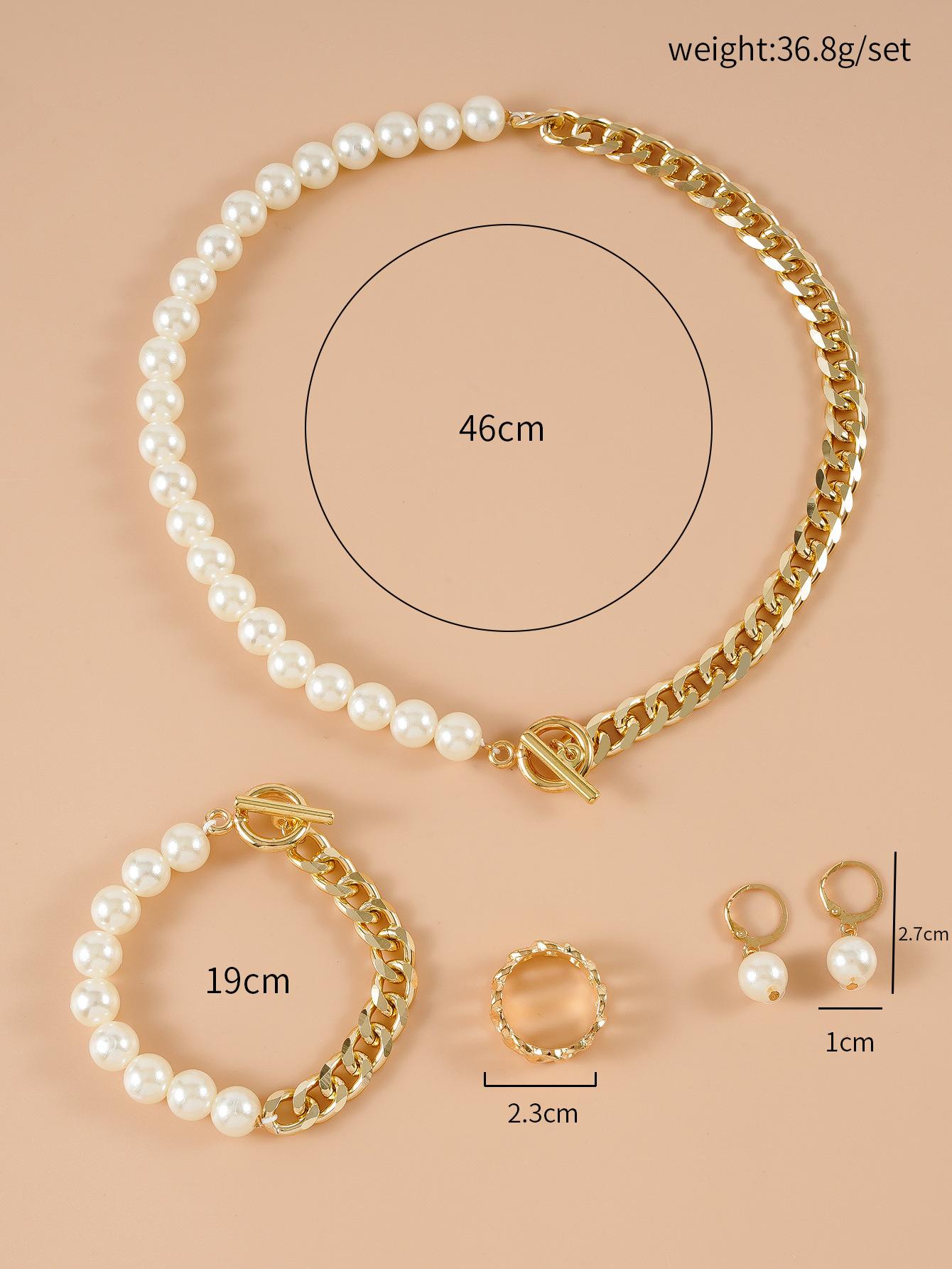 Collar con cadena gruesa y costuras, estilo transfronterizo, con personalidad para damas, pulsera, collar, pendientes, anillo y traje.
