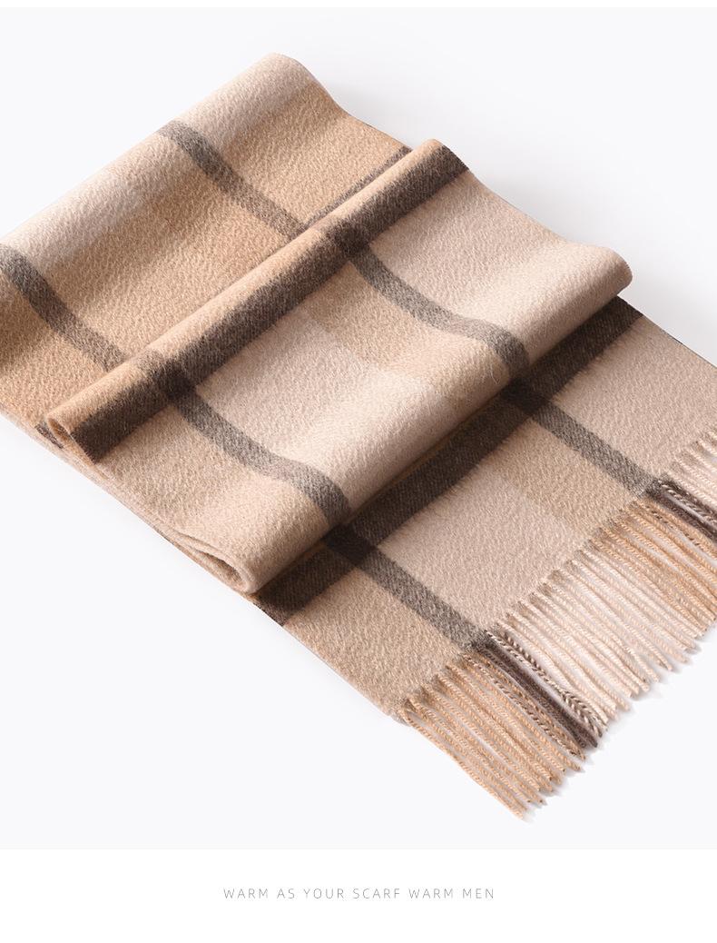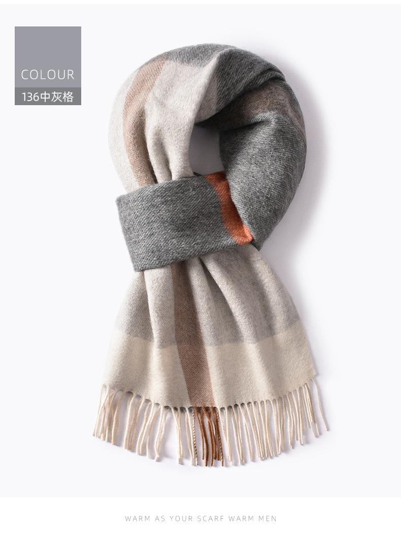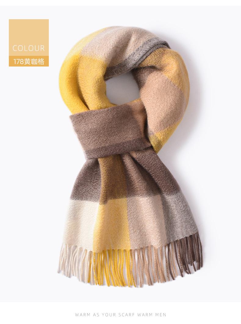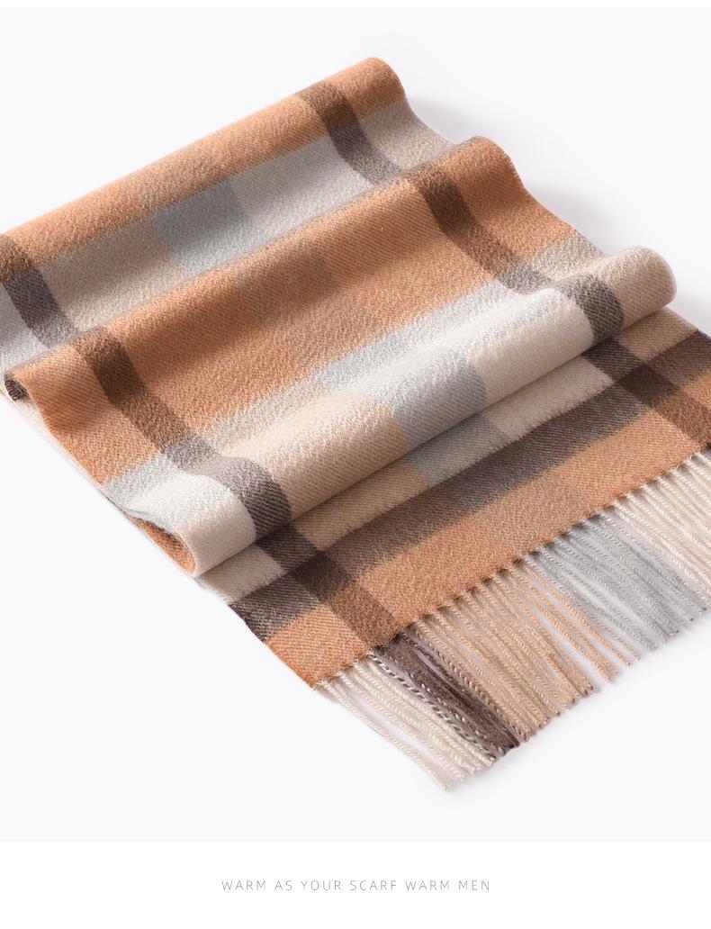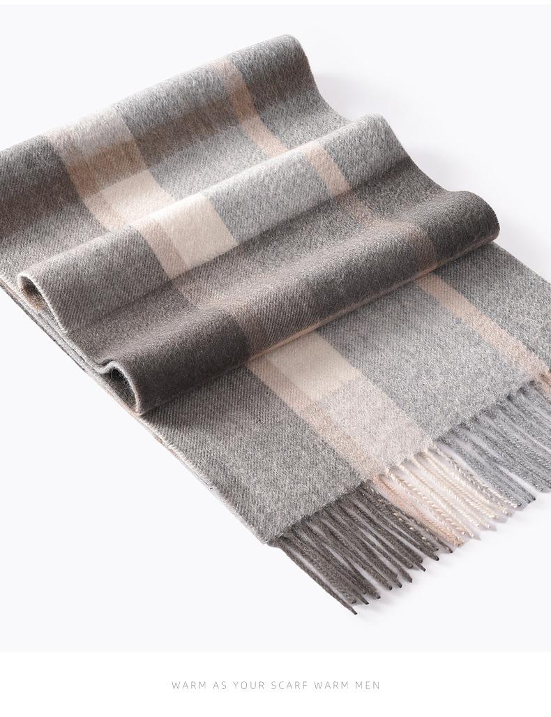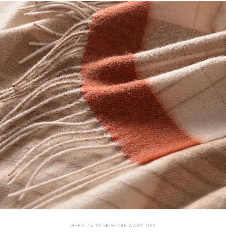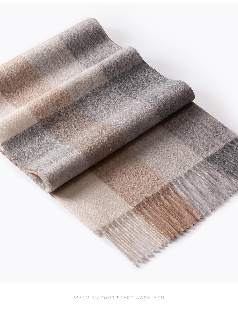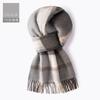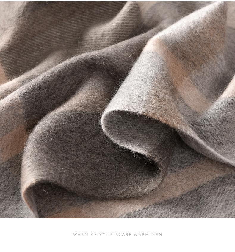 Bufanda de cachemira pura de estilo nuevo de invierno 100% con borlas clásicas a cuadros de doble cara para hombre, cálida y suave.