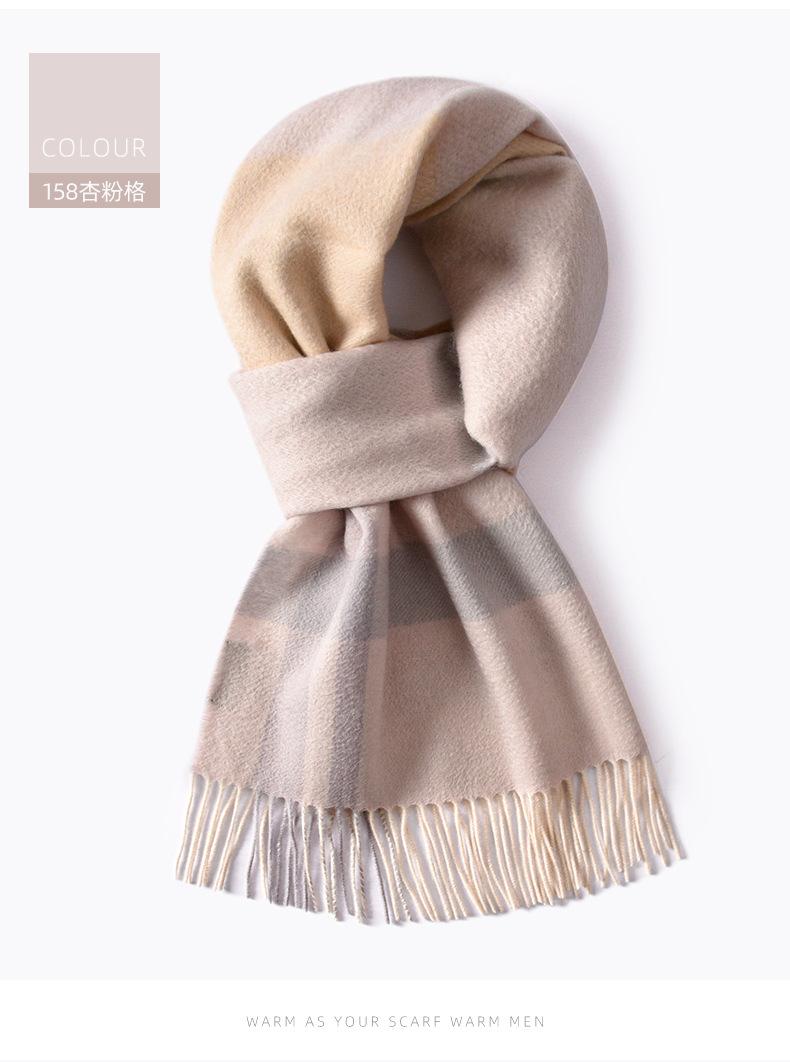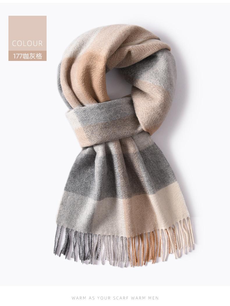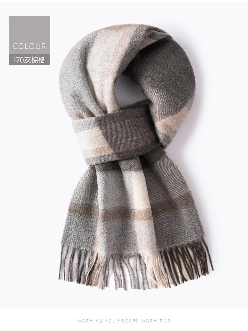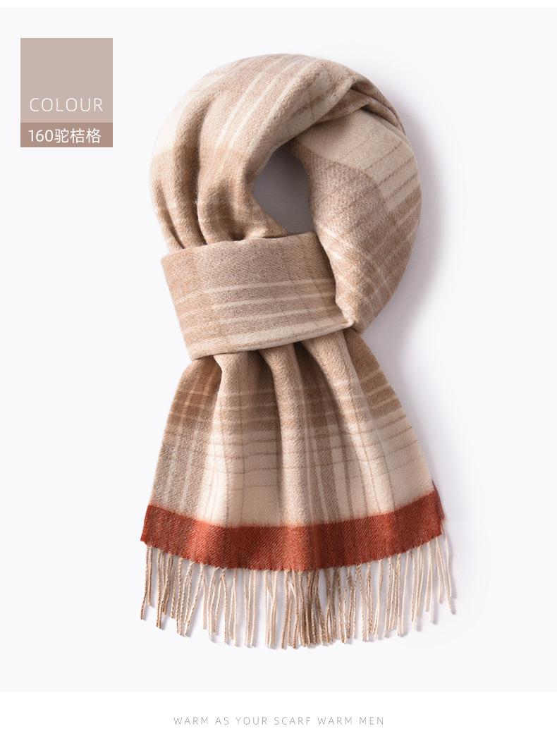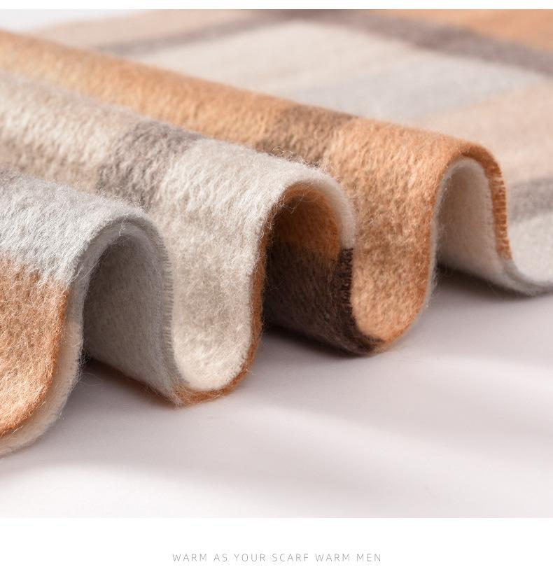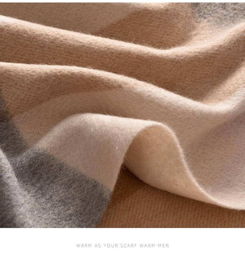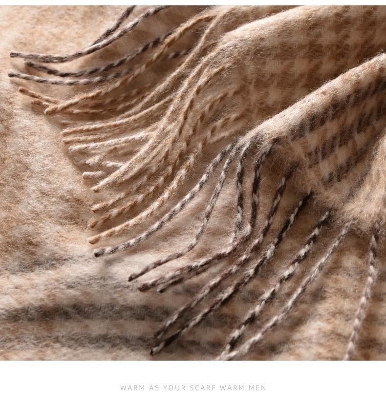 Bufanda de cachemira pura de estilo nuevo de invierno 100% con borlas clásicas a cuadros de doble cara para hombre, cálida y suave.