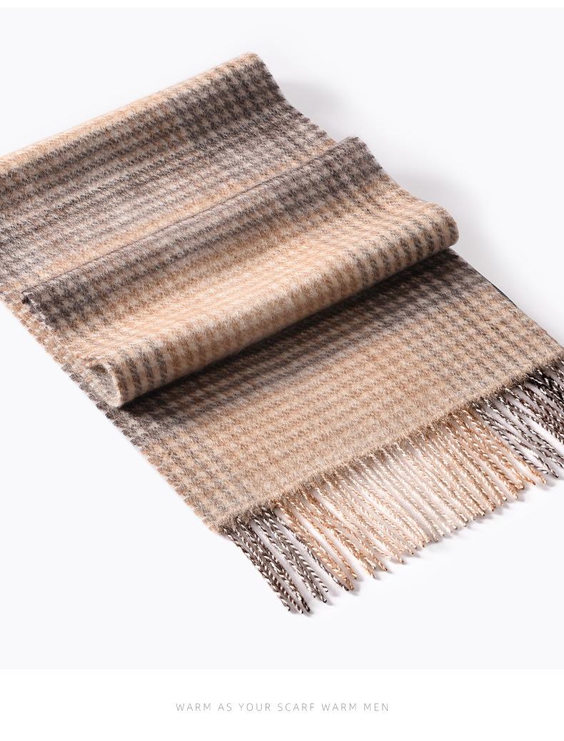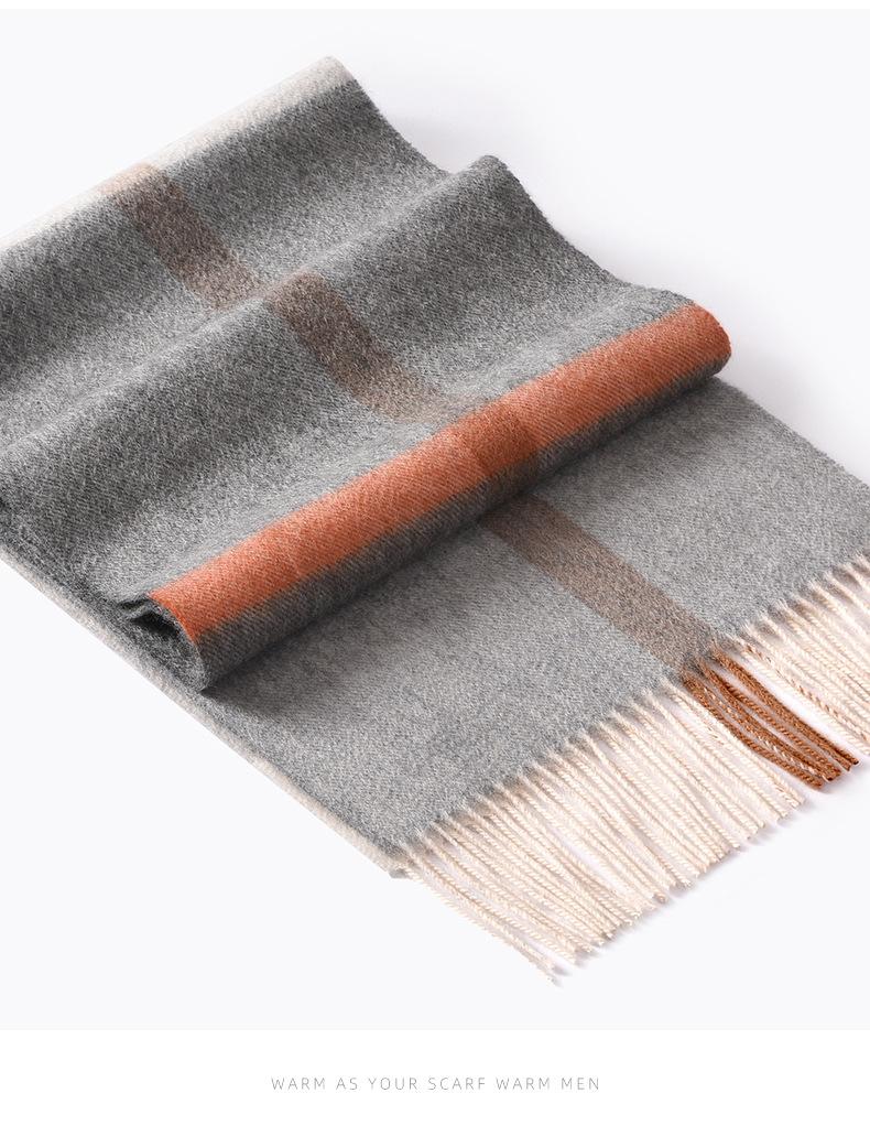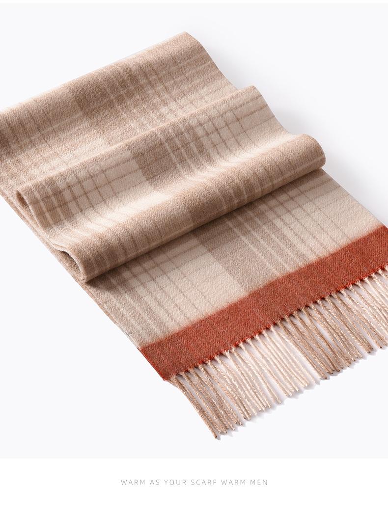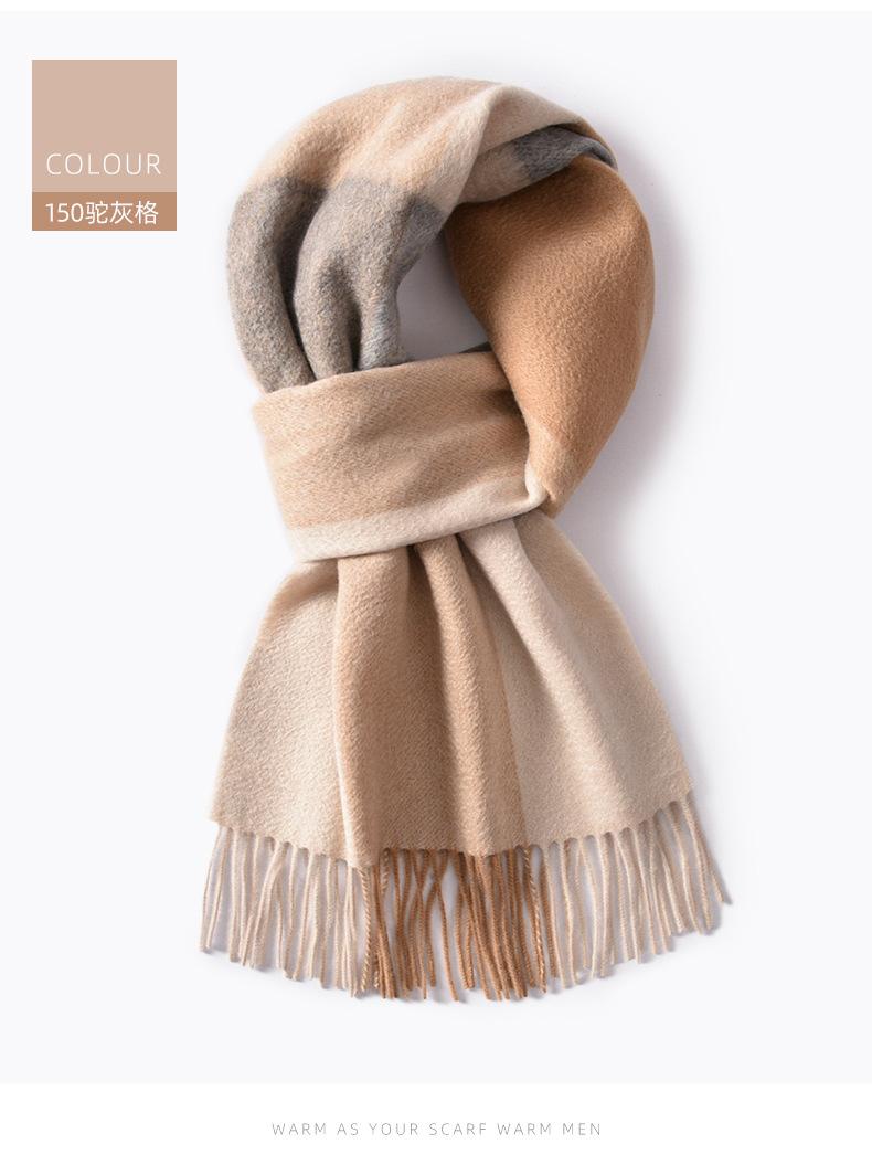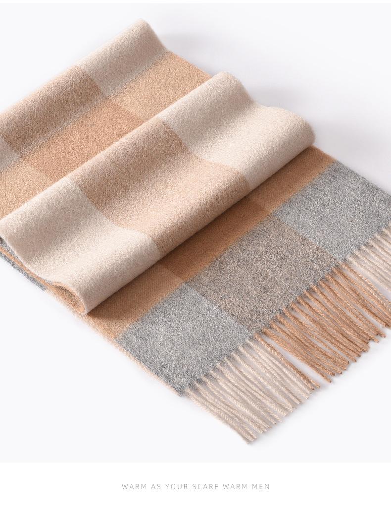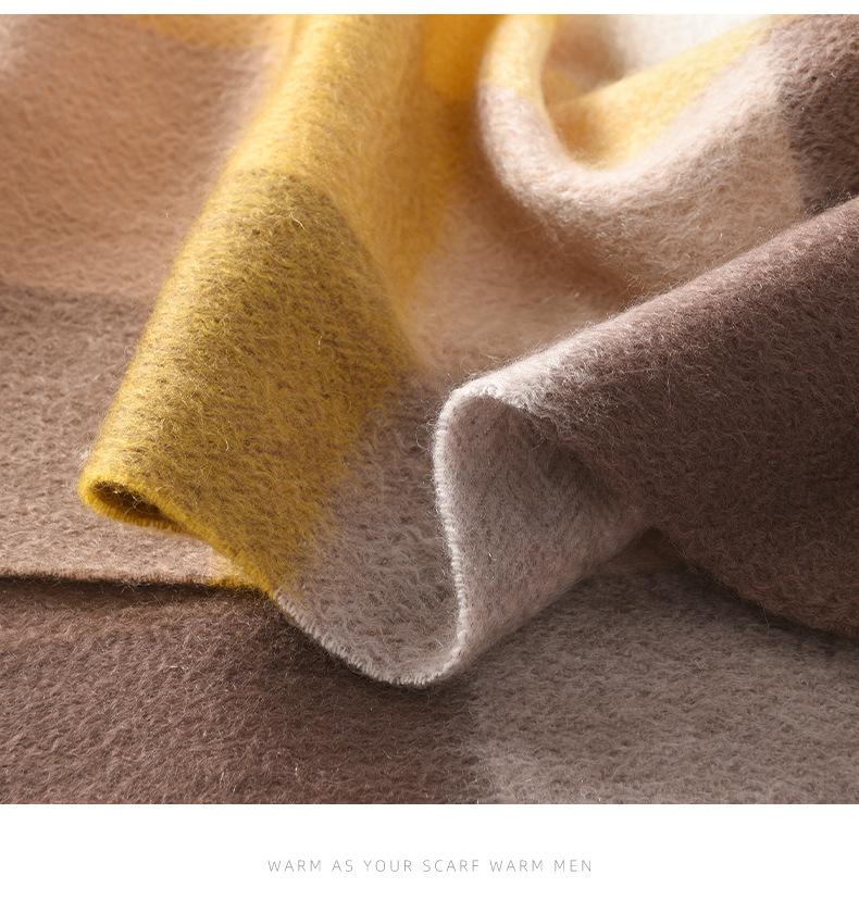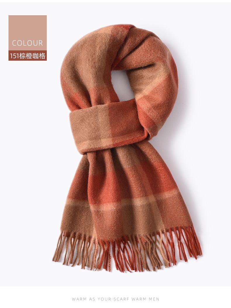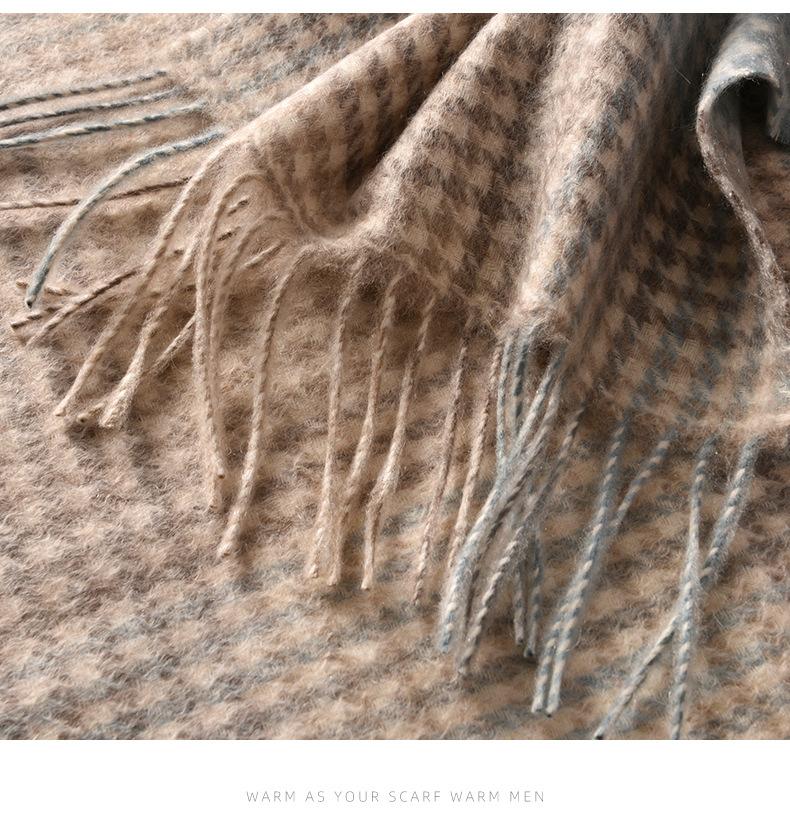 Bufanda de cachemira pura de estilo nuevo de invierno 100% con borlas clásicas a cuadros de doble cara para hombre, cálida y suave.