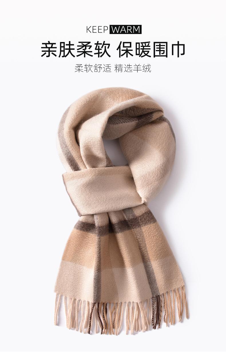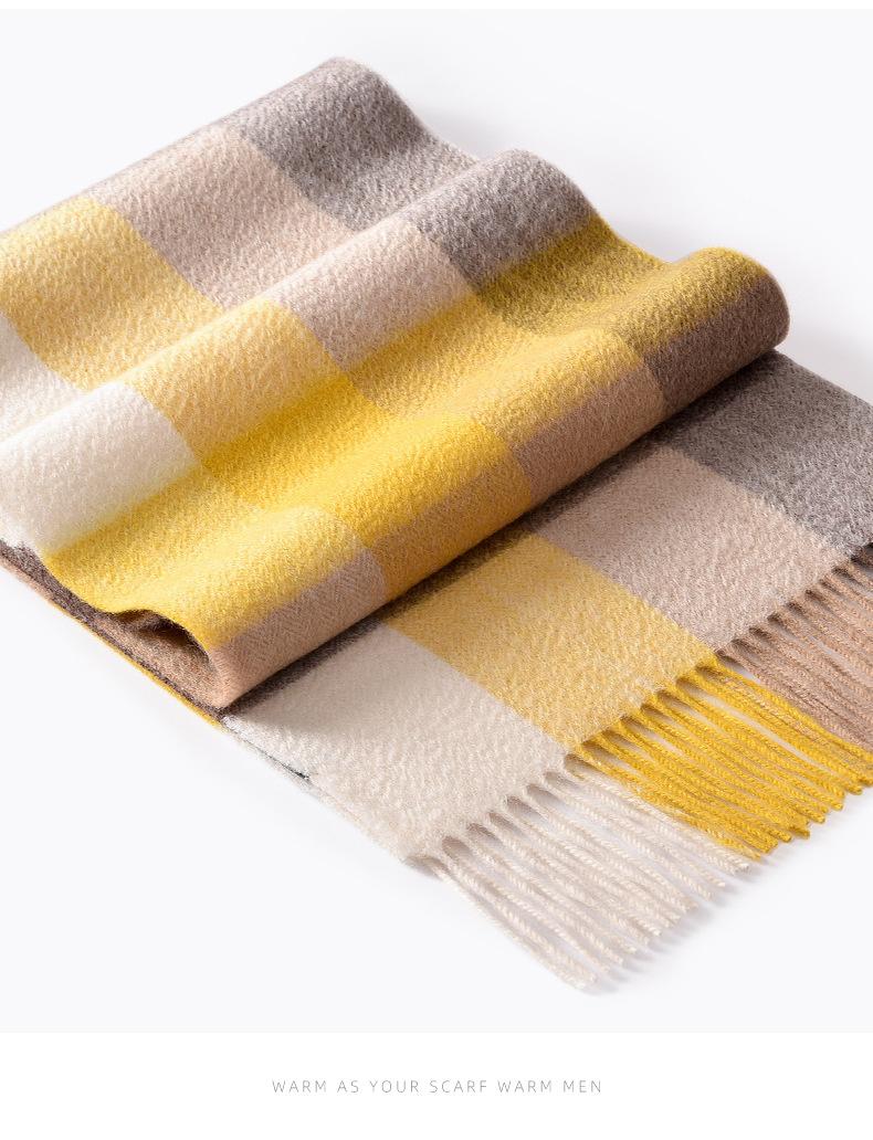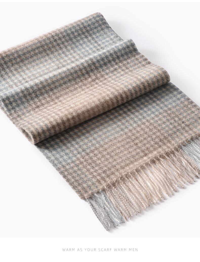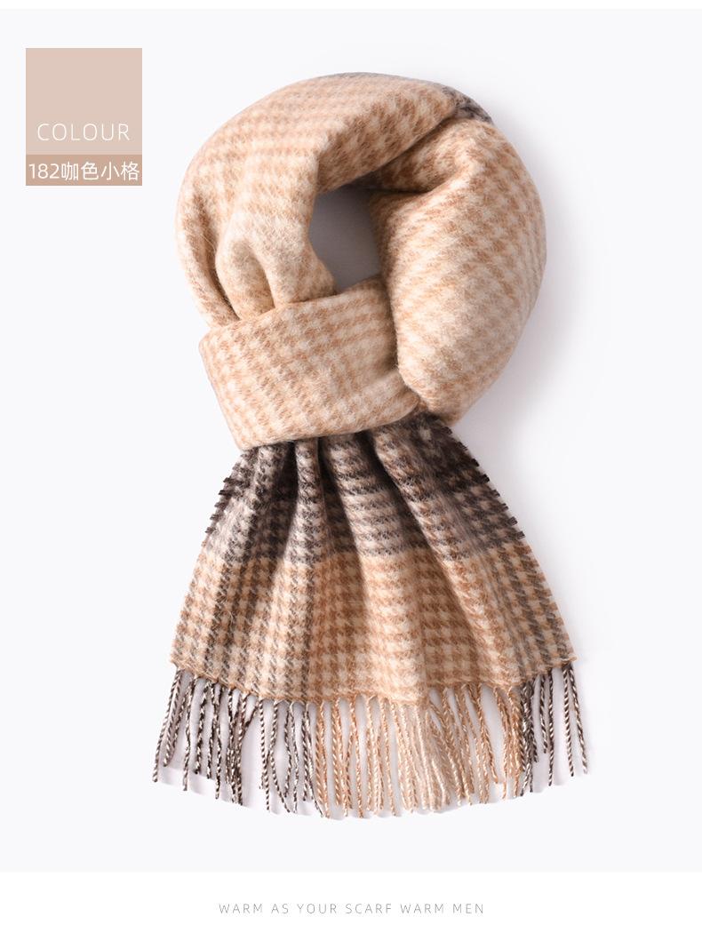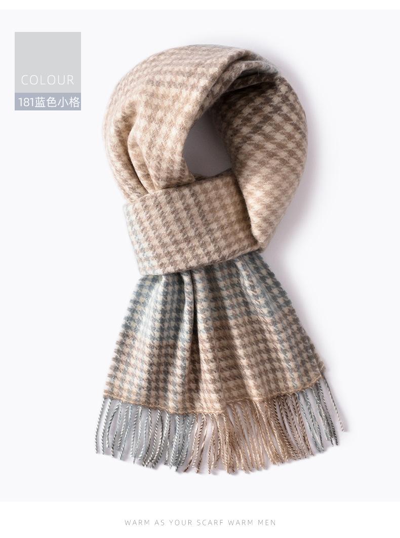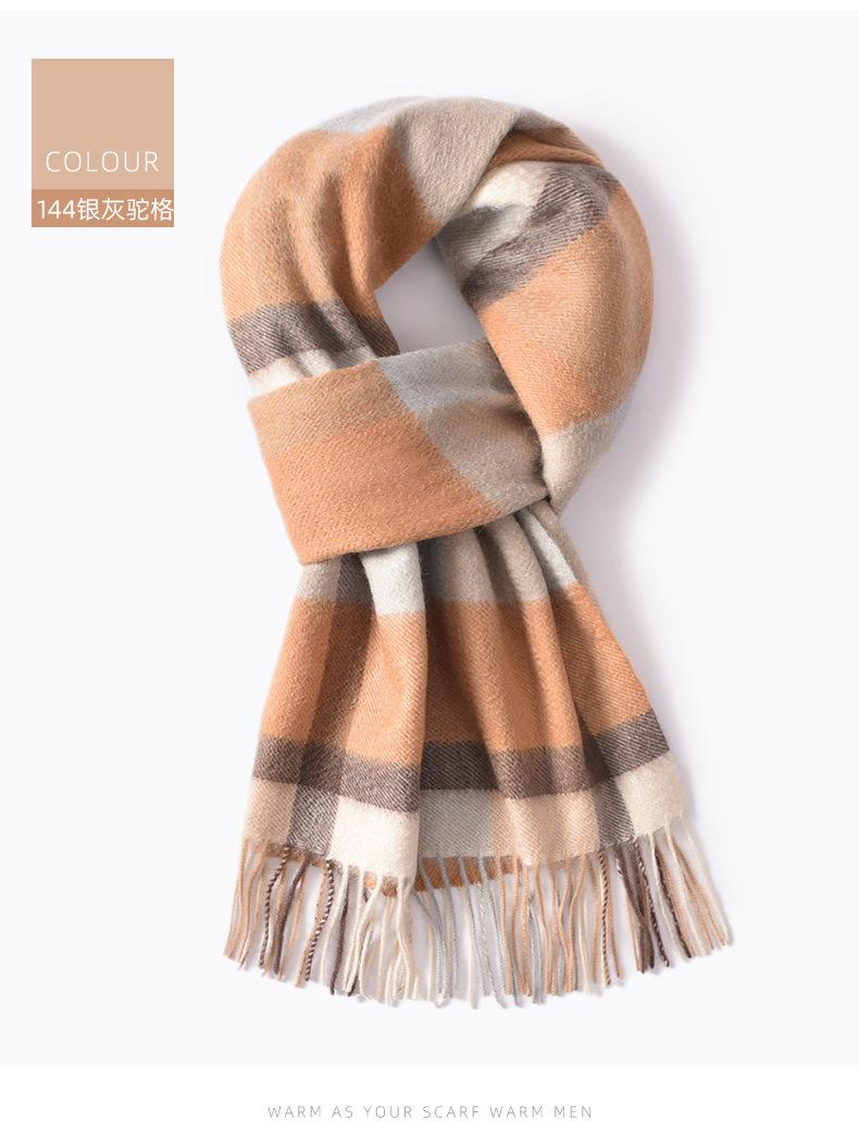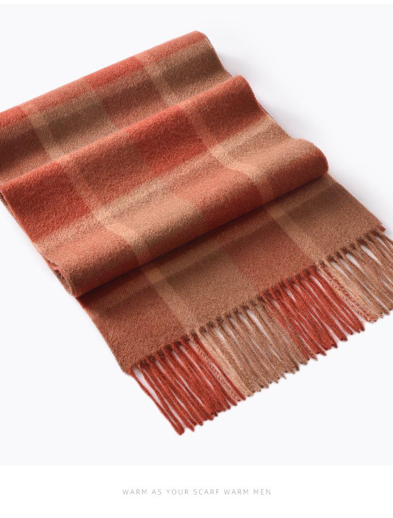 Bufanda de cachemira pura de estilo nuevo de invierno 100% con borlas clásicas a cuadros de doble cara para hombre, cálida y suave.