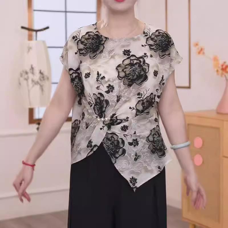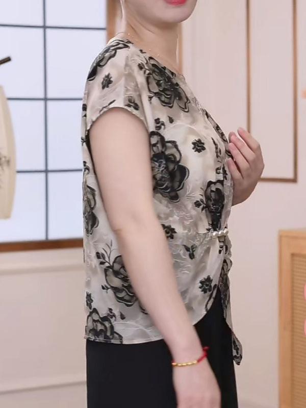 Camiseta de manga corta informal de verano para madres primerizas, elegante y a la moda, ideal para reducir la edad, suave y cómoda.