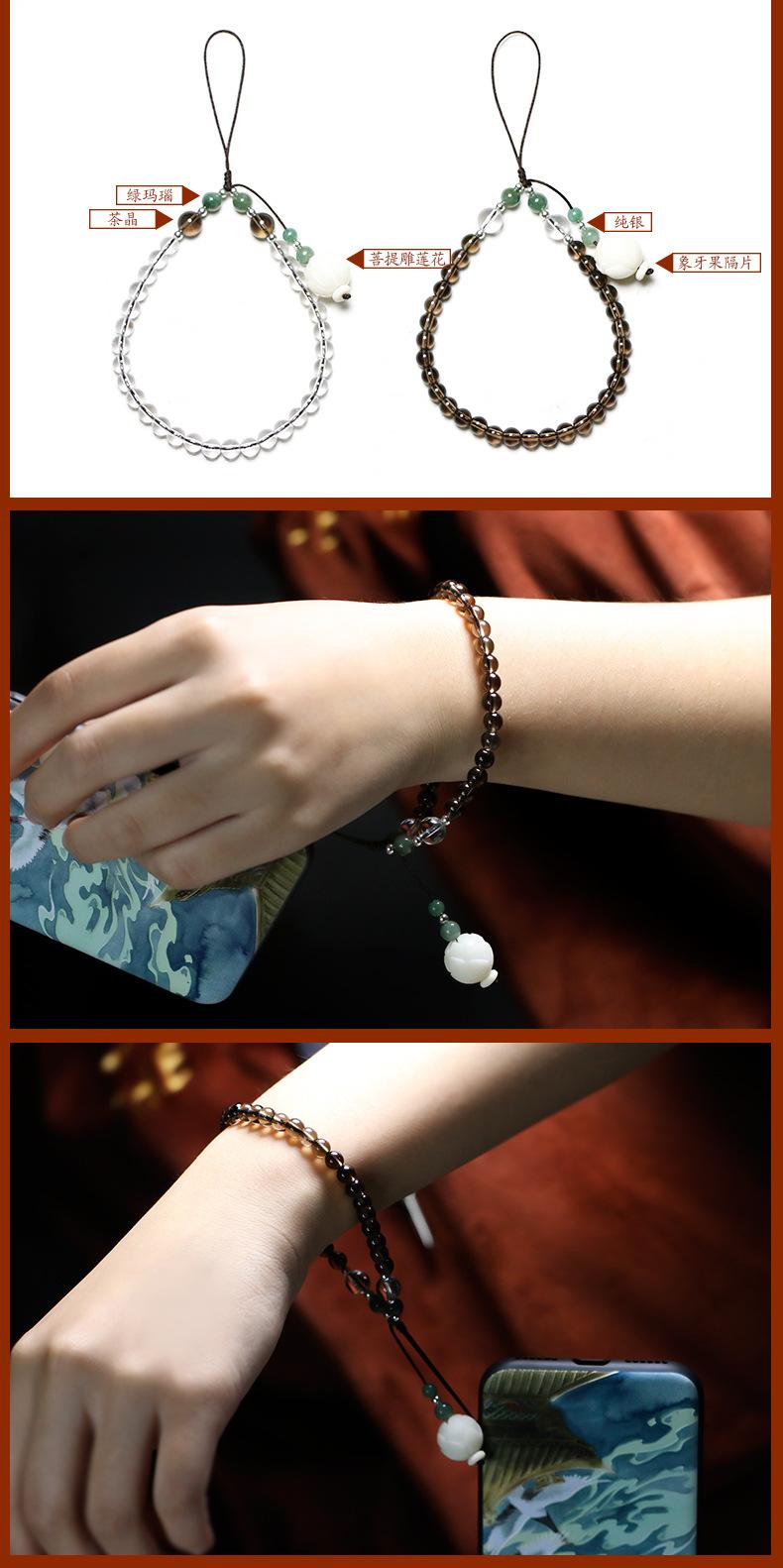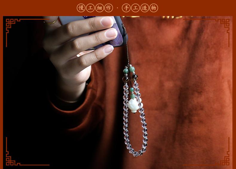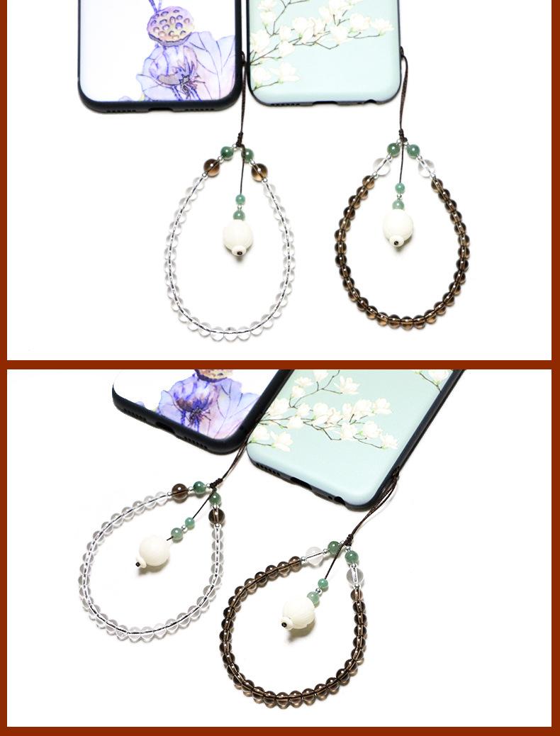 Adornos colgantes creativos de cuerda para teléfono móvil, cristal blanco de té, funda para teléfono, colgante, cordón artístico con temperamento, regalo para mujer