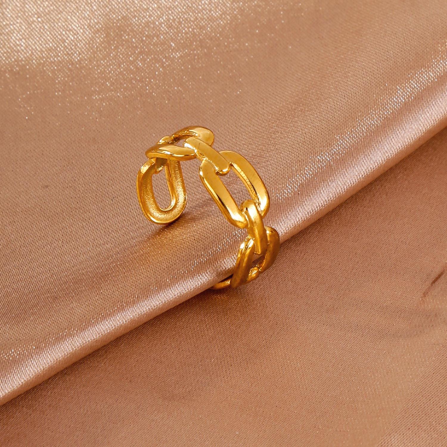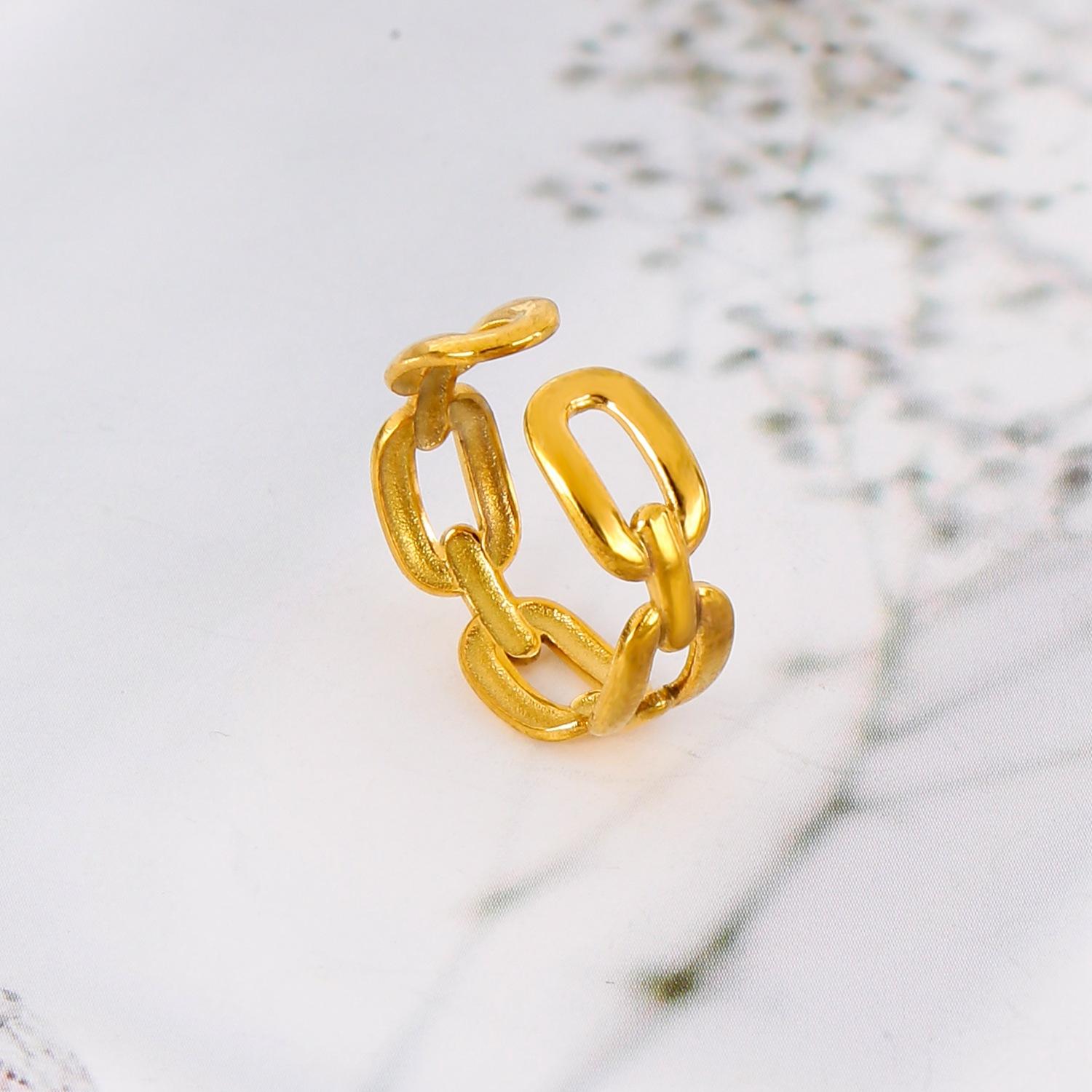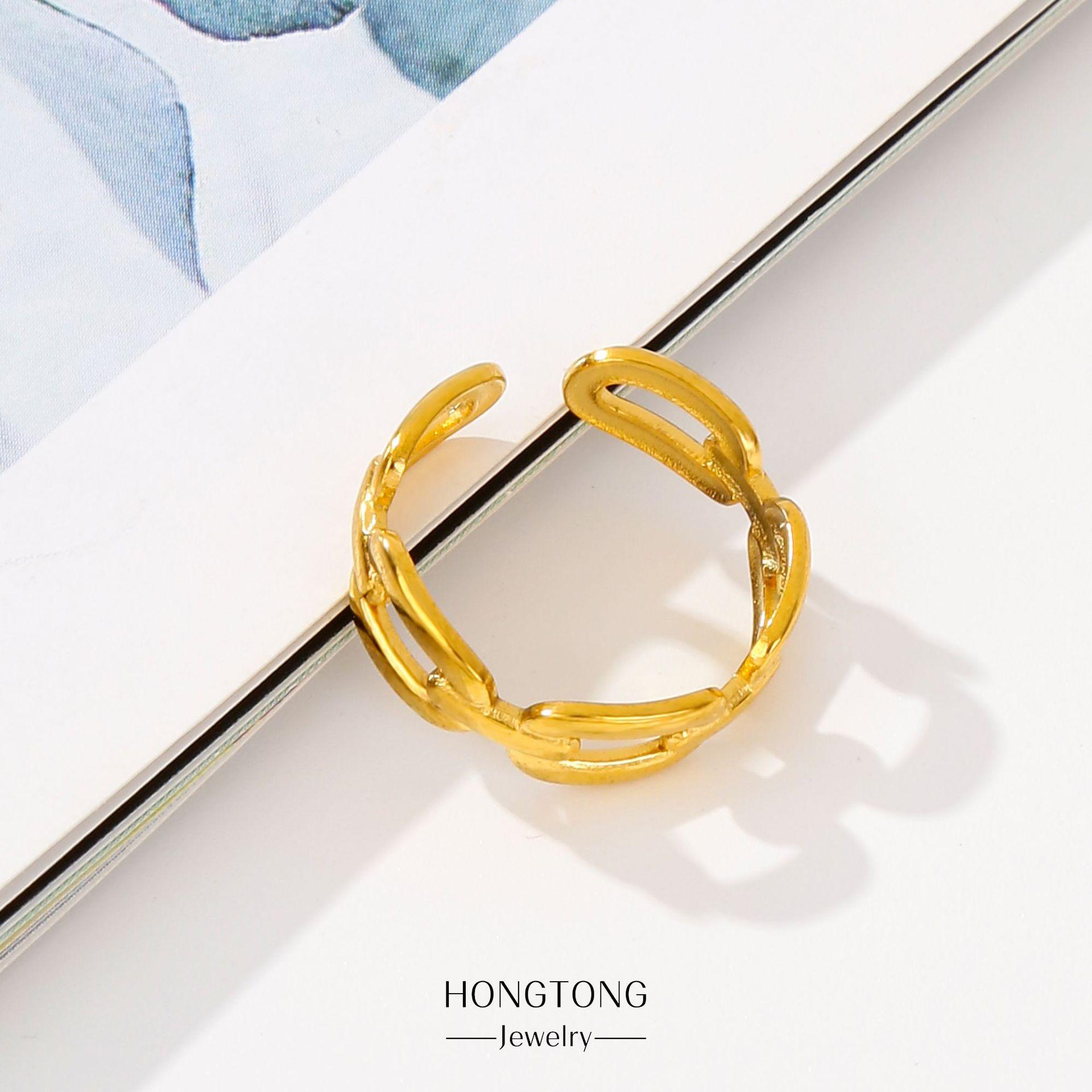 Anillo Abierto de Acero Inoxidable con Oro de 18K Transfronterizo Moda Europea y Americana Ins Entrelazado Anillo Liso Anillo Versátil Personalizado