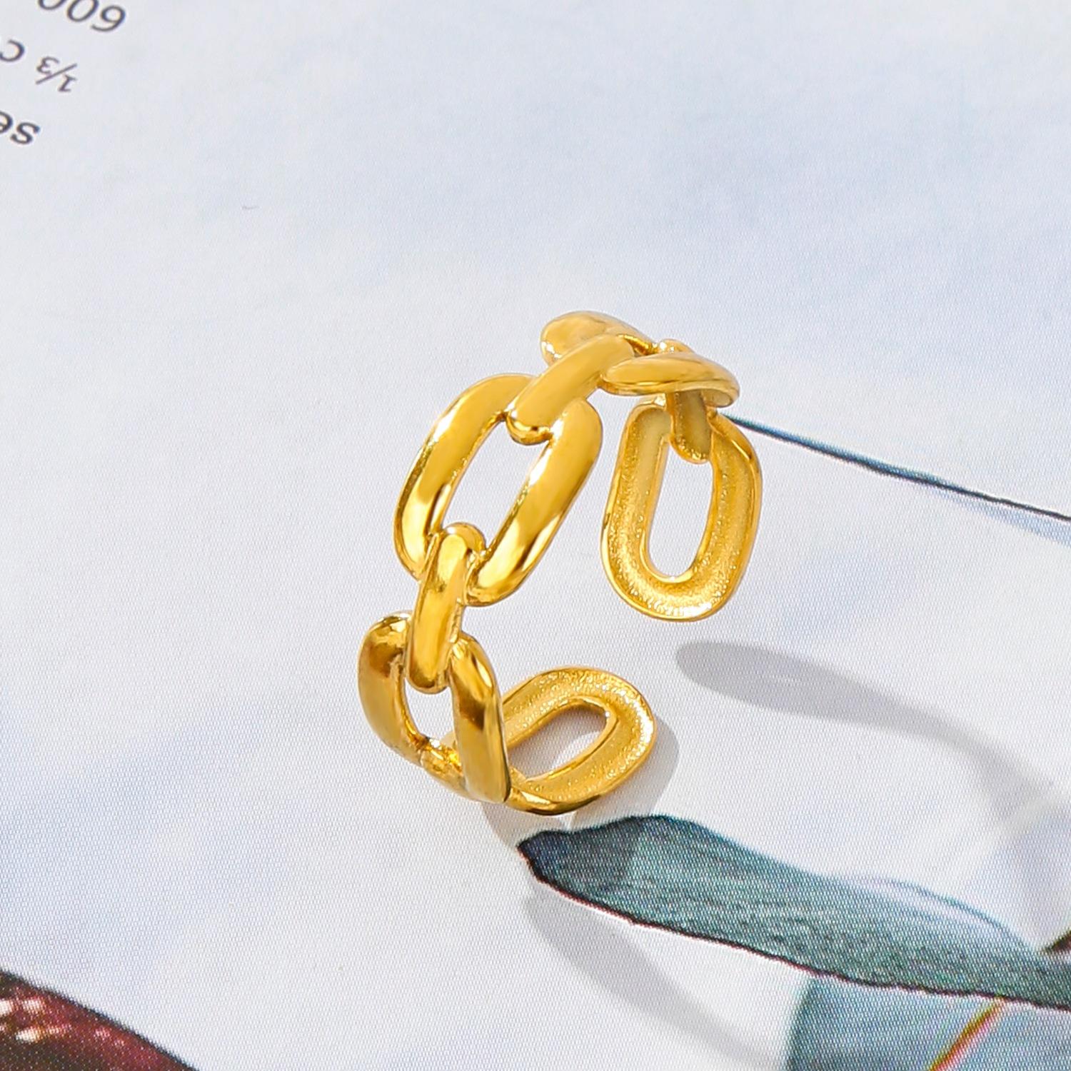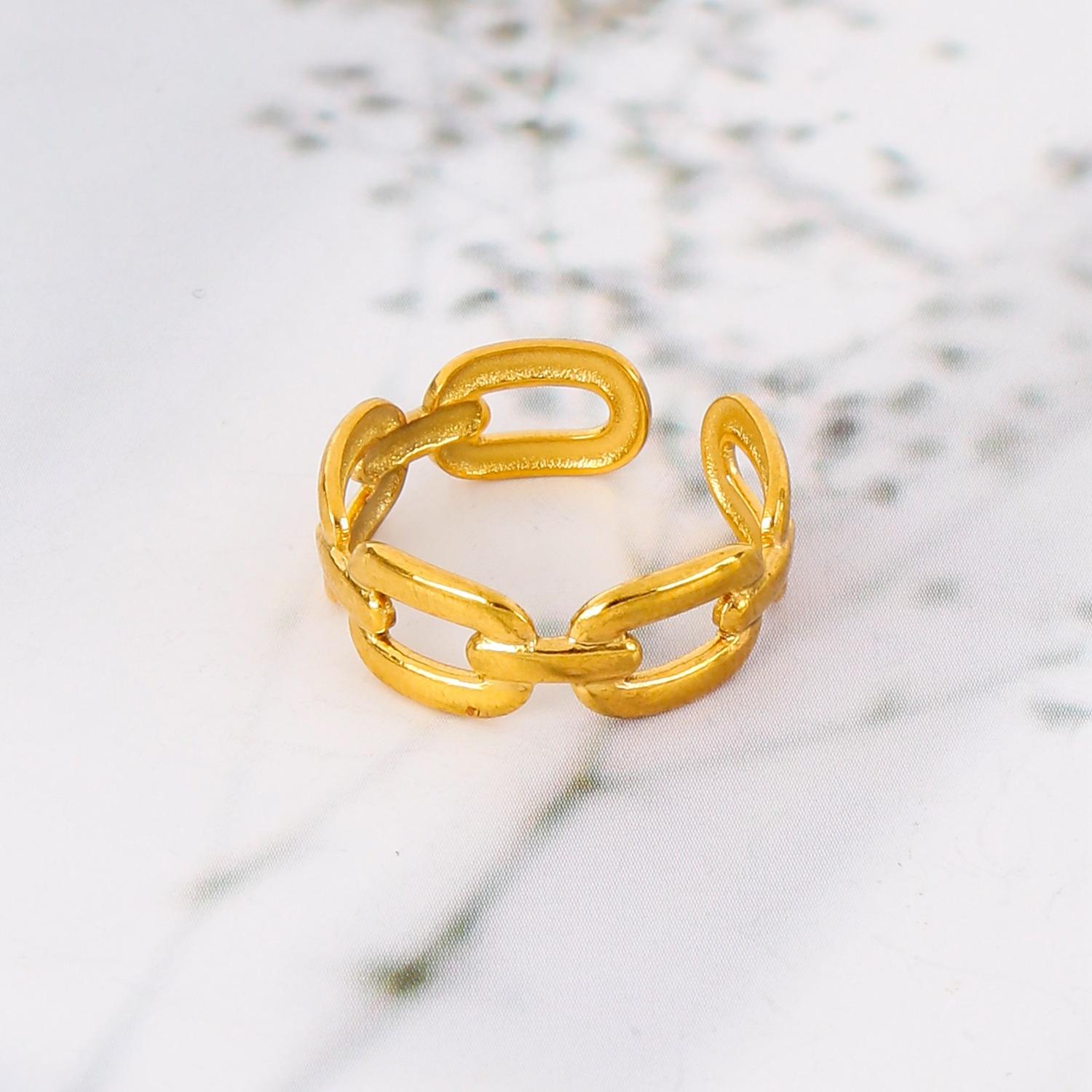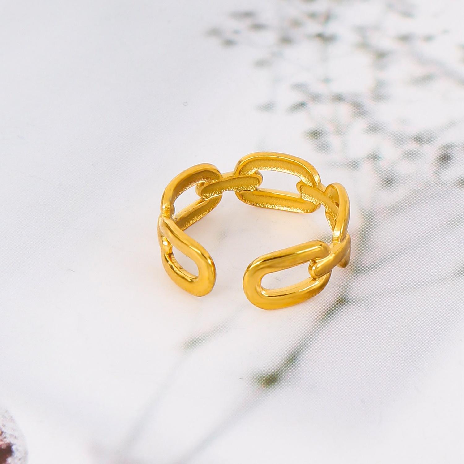 Anillo Abierto de Acero Inoxidable con Oro de 18K Transfronterizo Moda Europea y Americana Ins Entrelazado Anillo Liso Anillo Versátil Personalizado