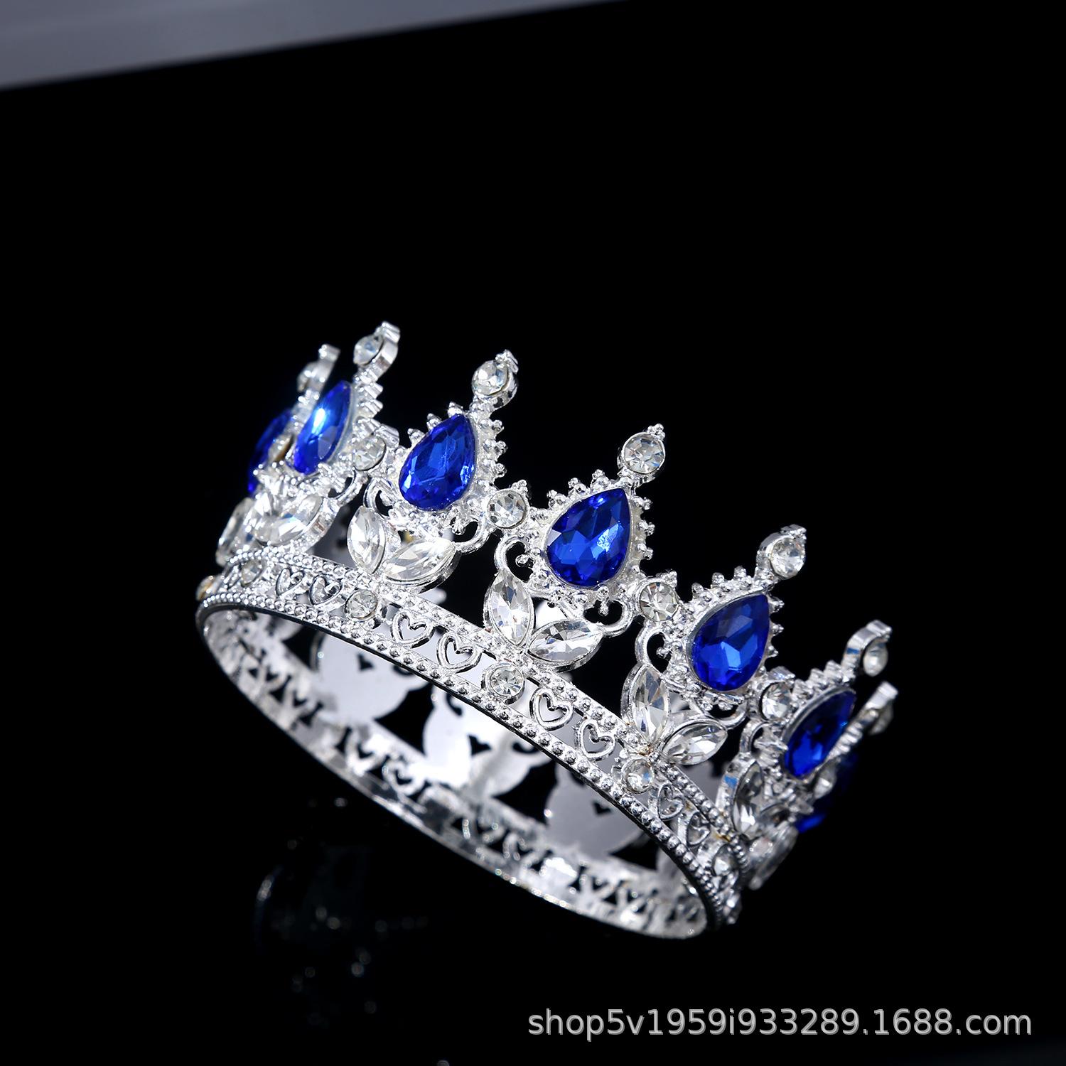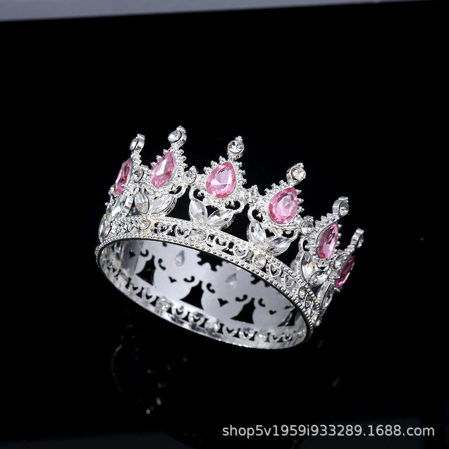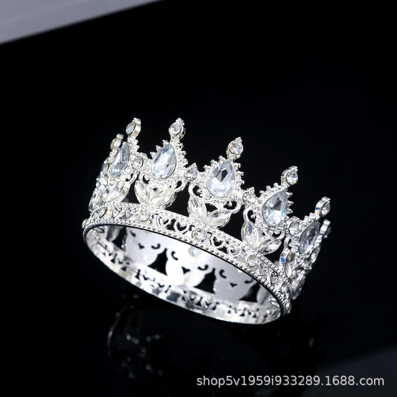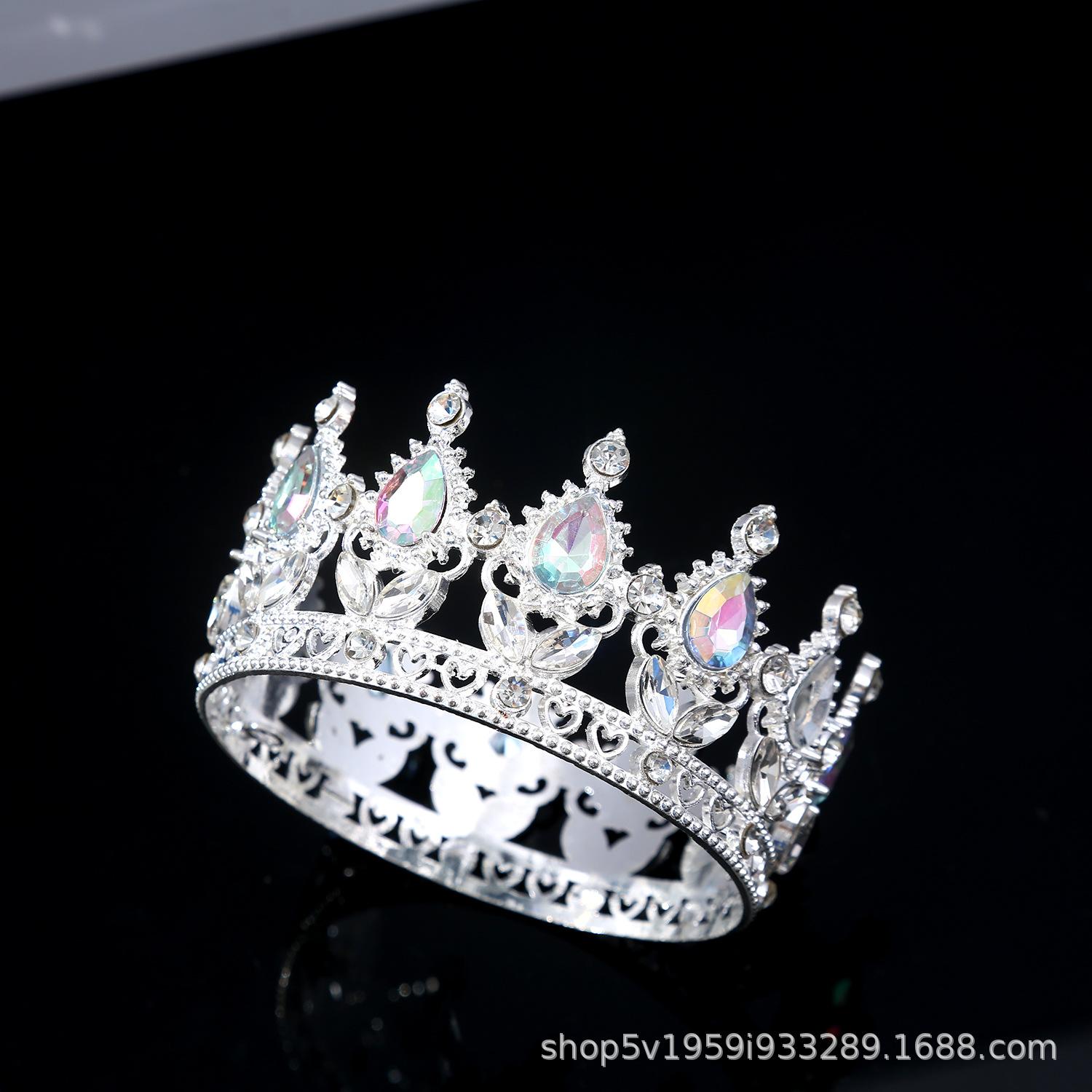 Tiara de Corona de Aleación Nueva Europea y Americana Transfronteriza Cristal Blanco Corona Nupcial Corona de Actuación para Vacaciones