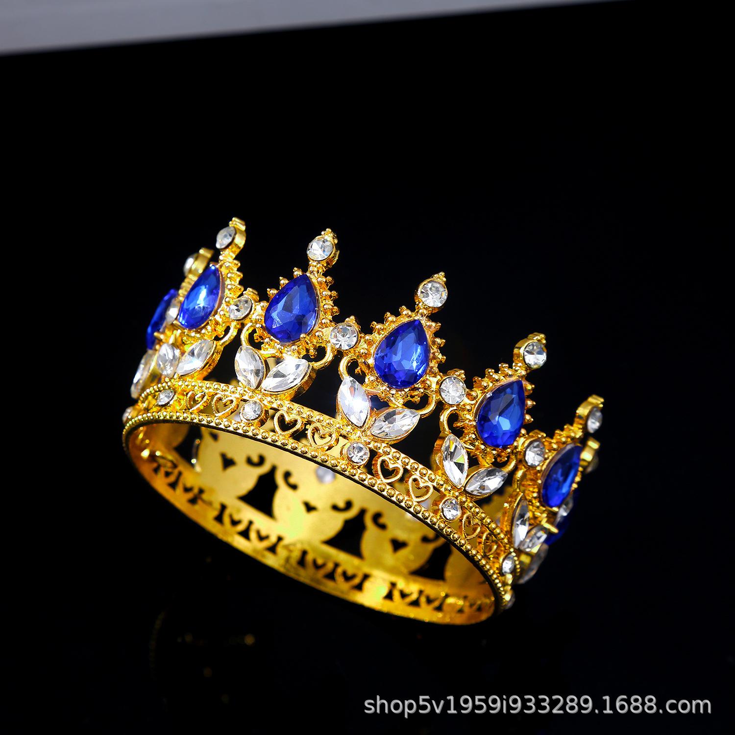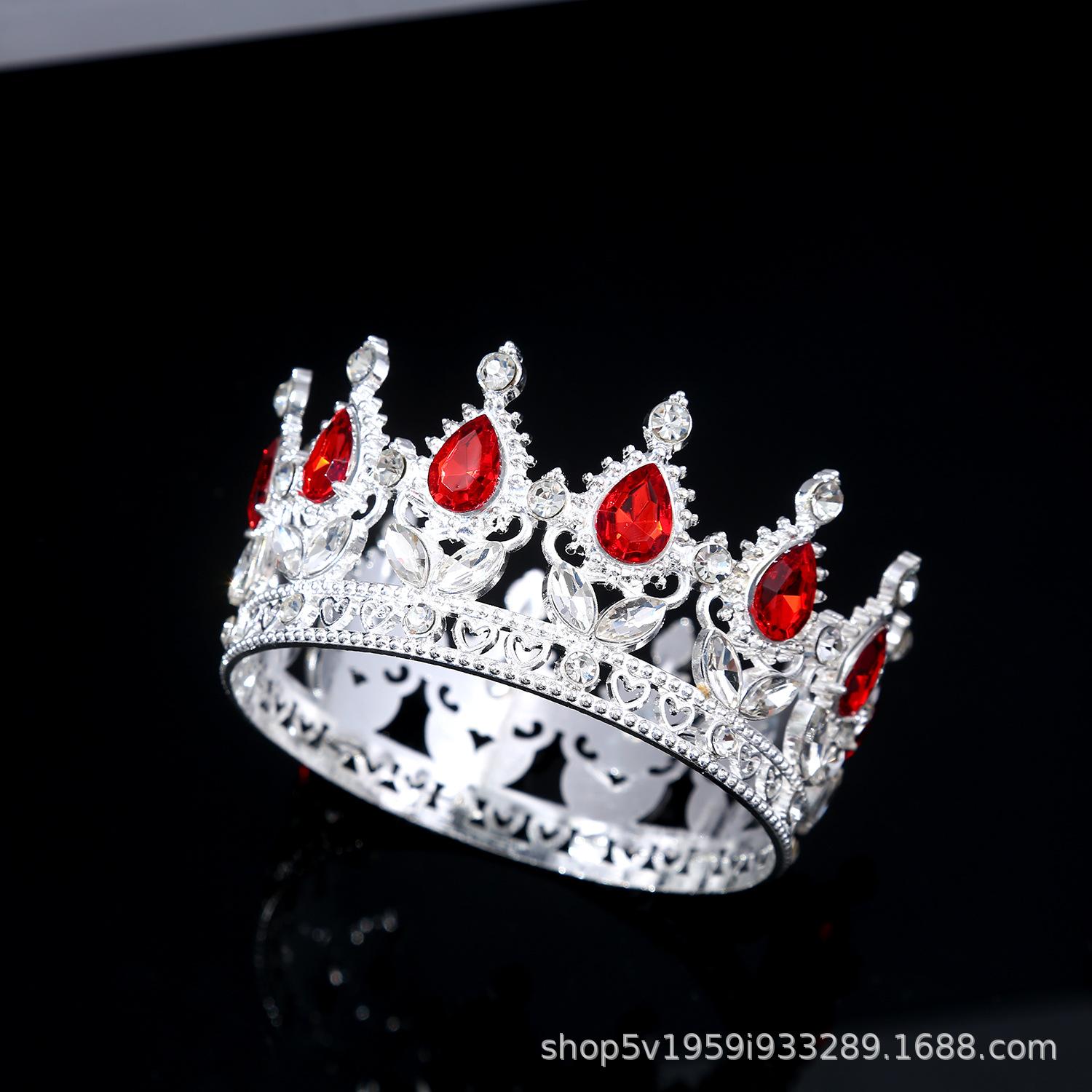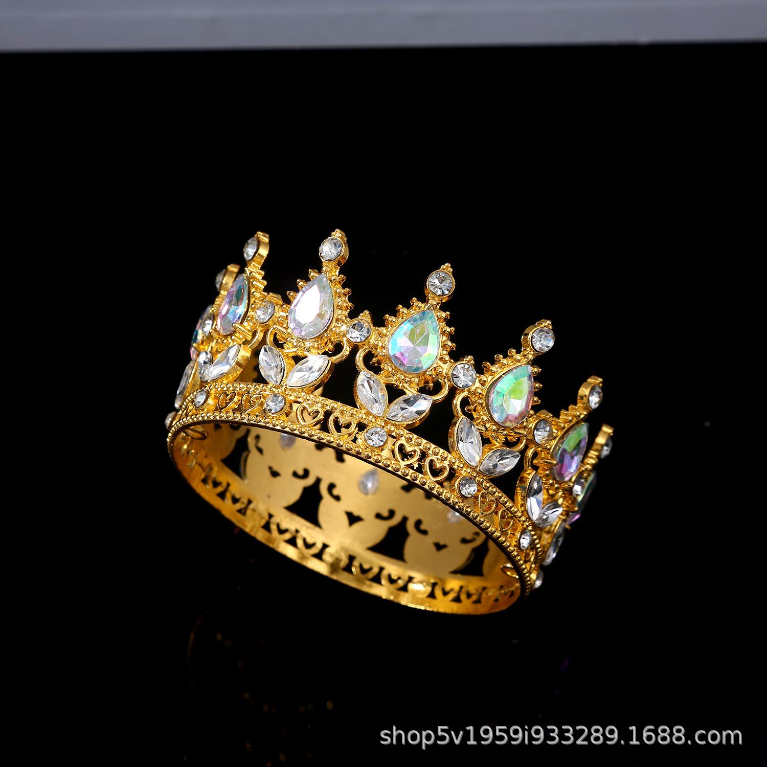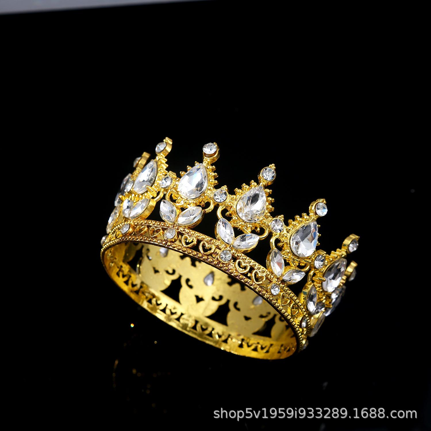 Tiara de Corona de Aleación Nueva Europea y Americana Transfronteriza Cristal Blanco Corona Nupcial Corona de Actuación para Vacaciones