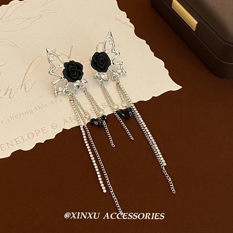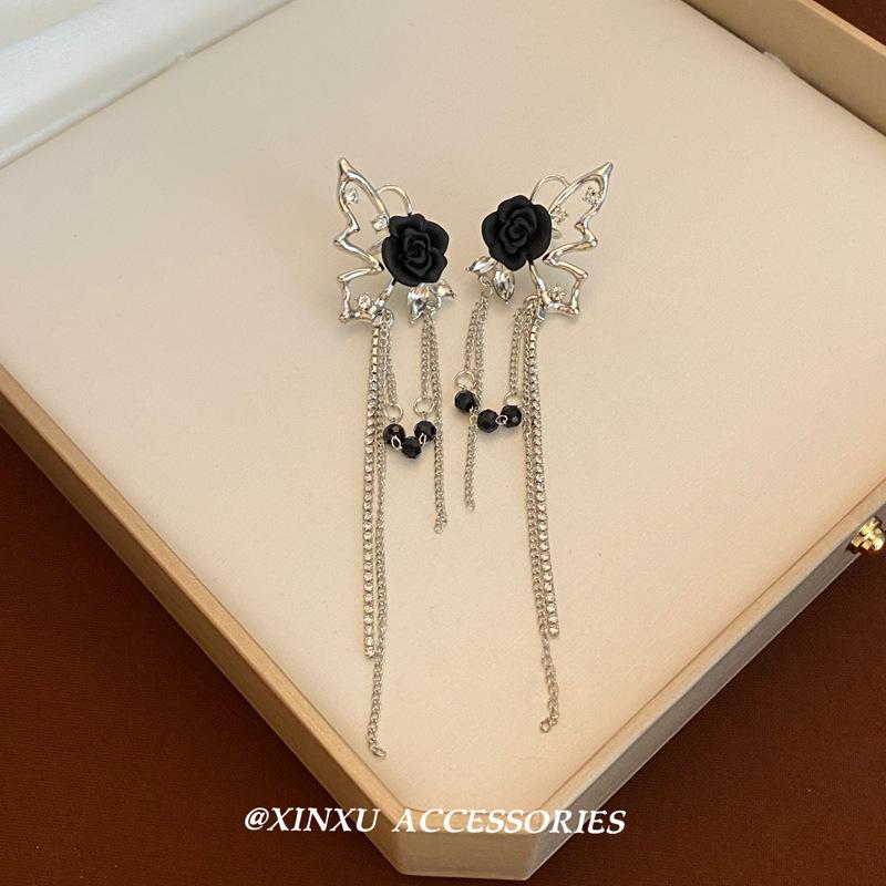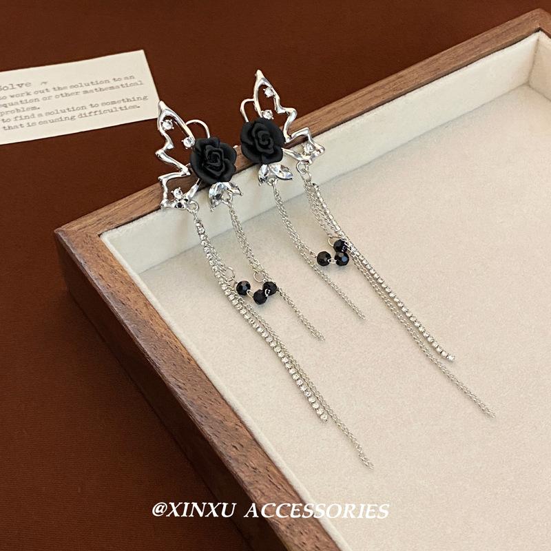 Pendientes de borla con alas de mariposa, rosas y espinas de estilo oscuro francés, largos, de temperamento atractivo, para chica, ligeros, de lujo, joyería para las orejas, al por mayor