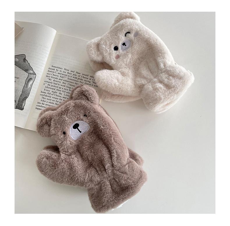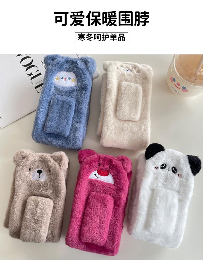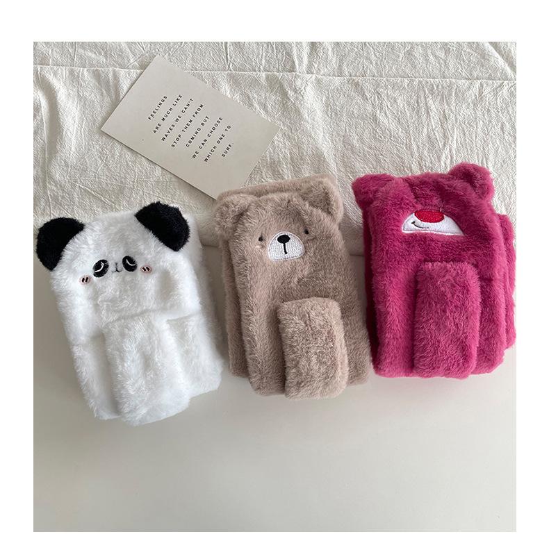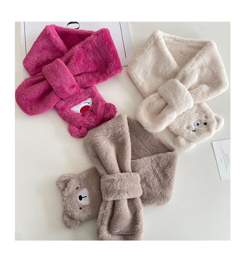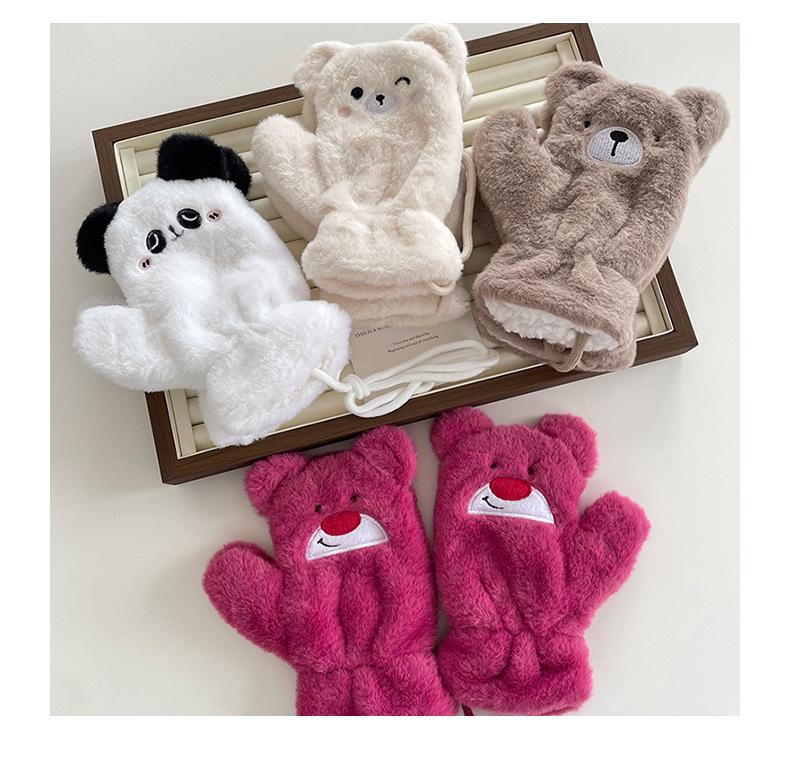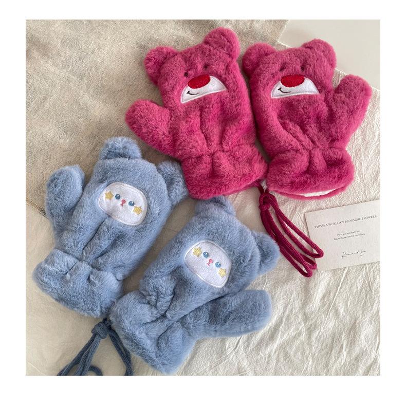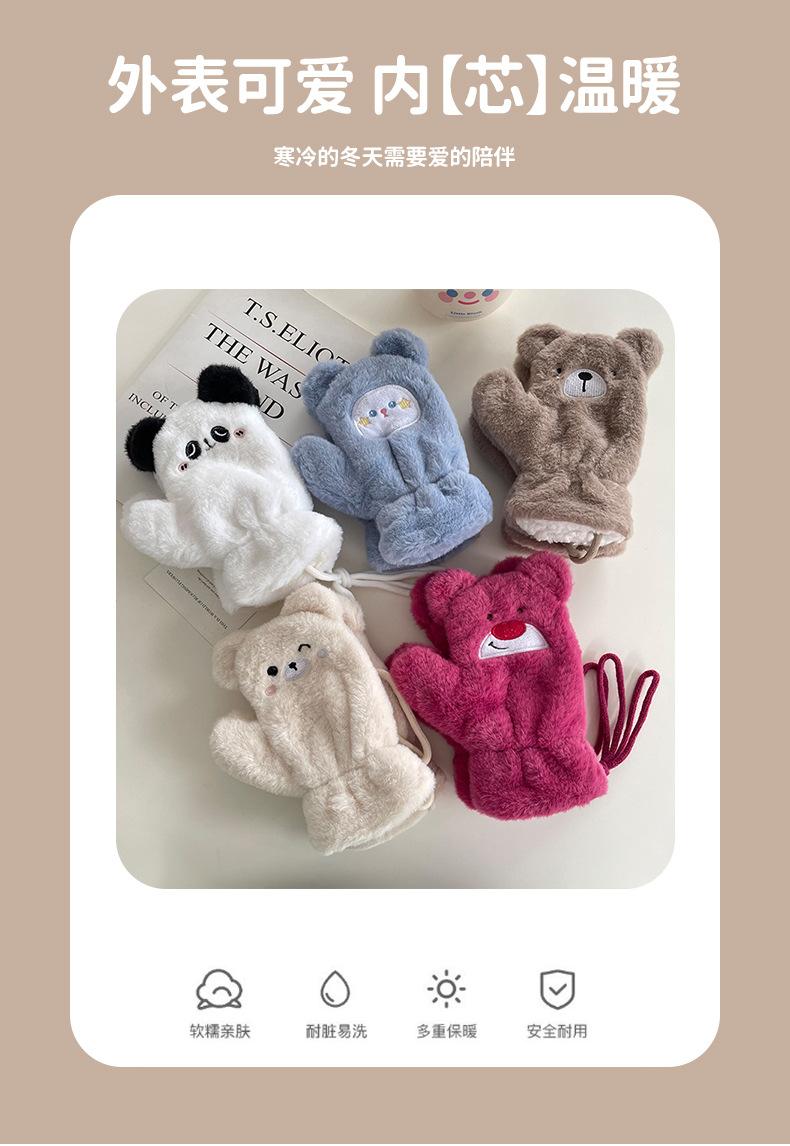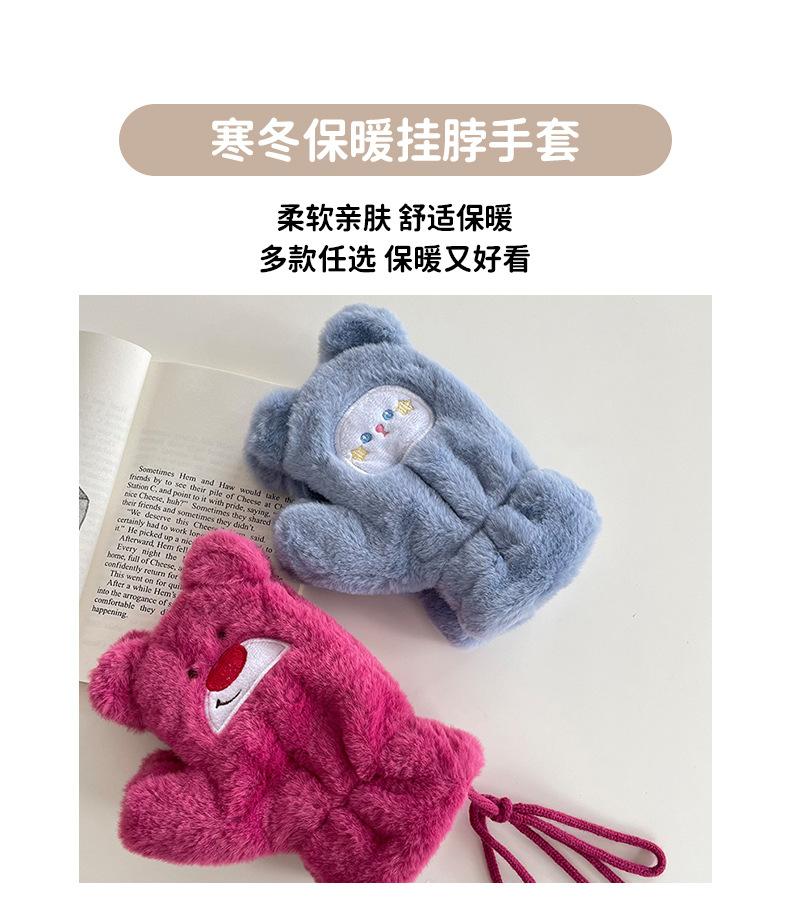 Guantes cálidos colgantes para el cuello para niños y niñas, resistentes al frío, gruesos, de doble capa, con dibujos animados bordados, traje de bufanda