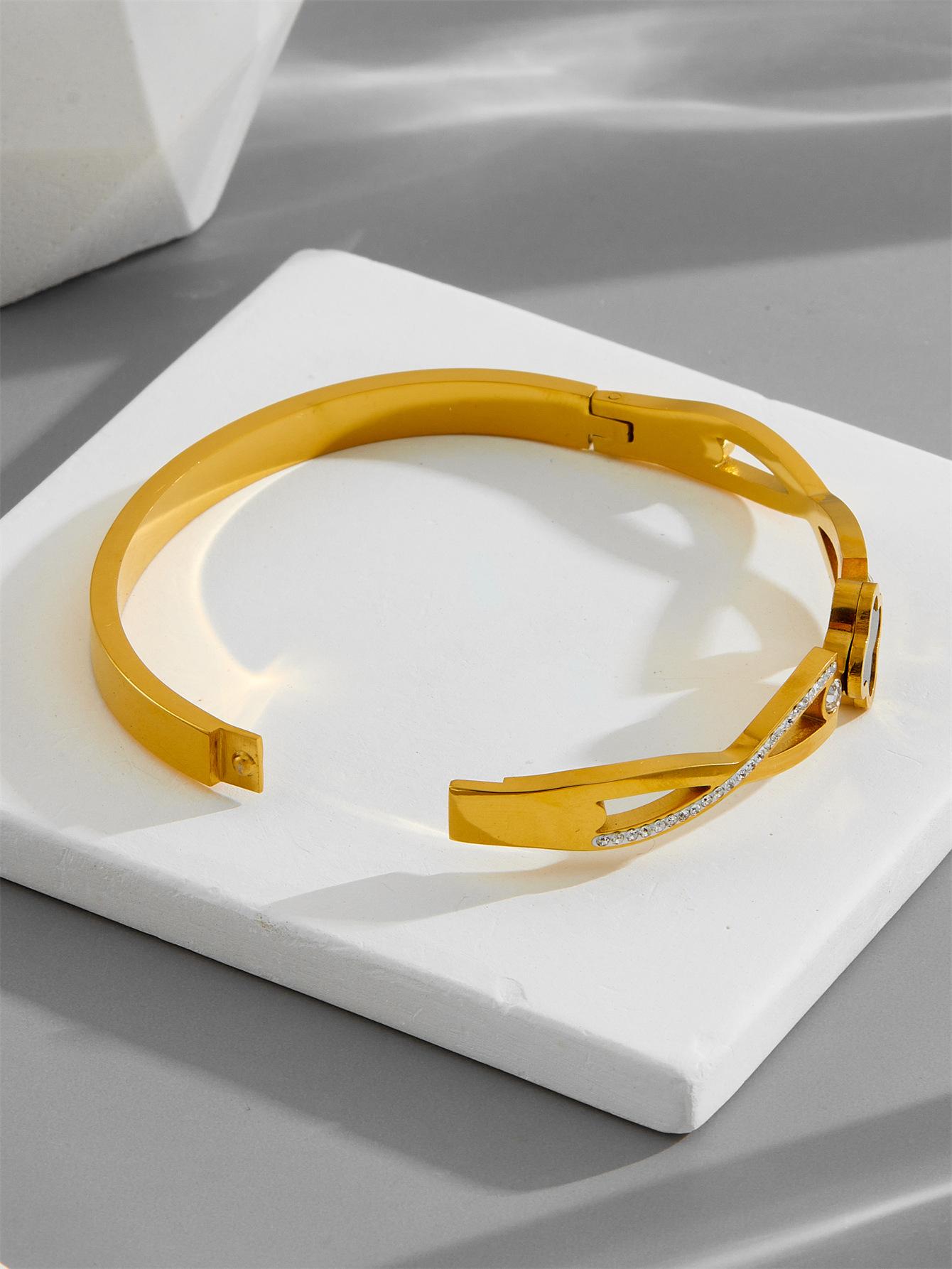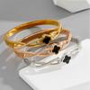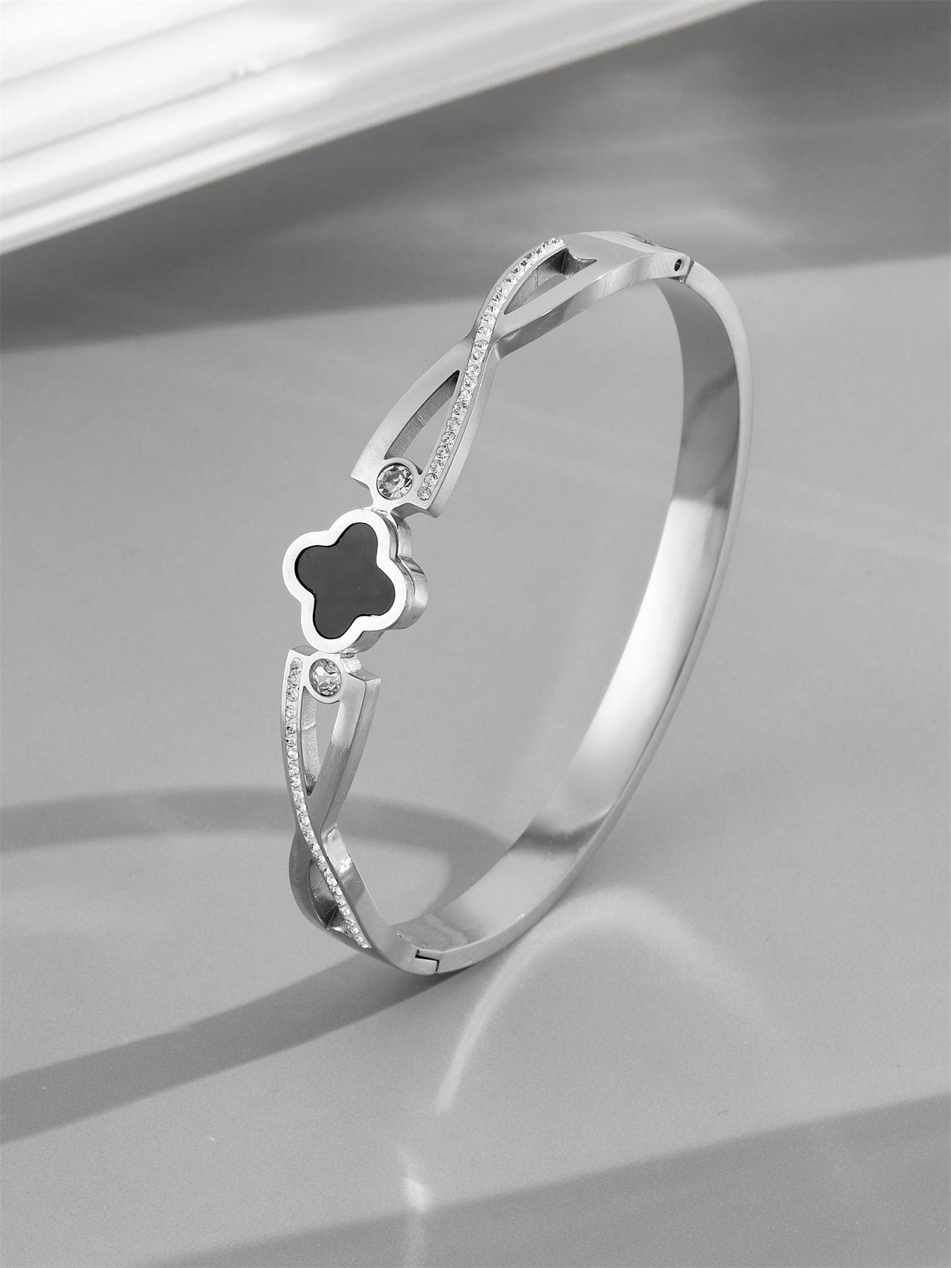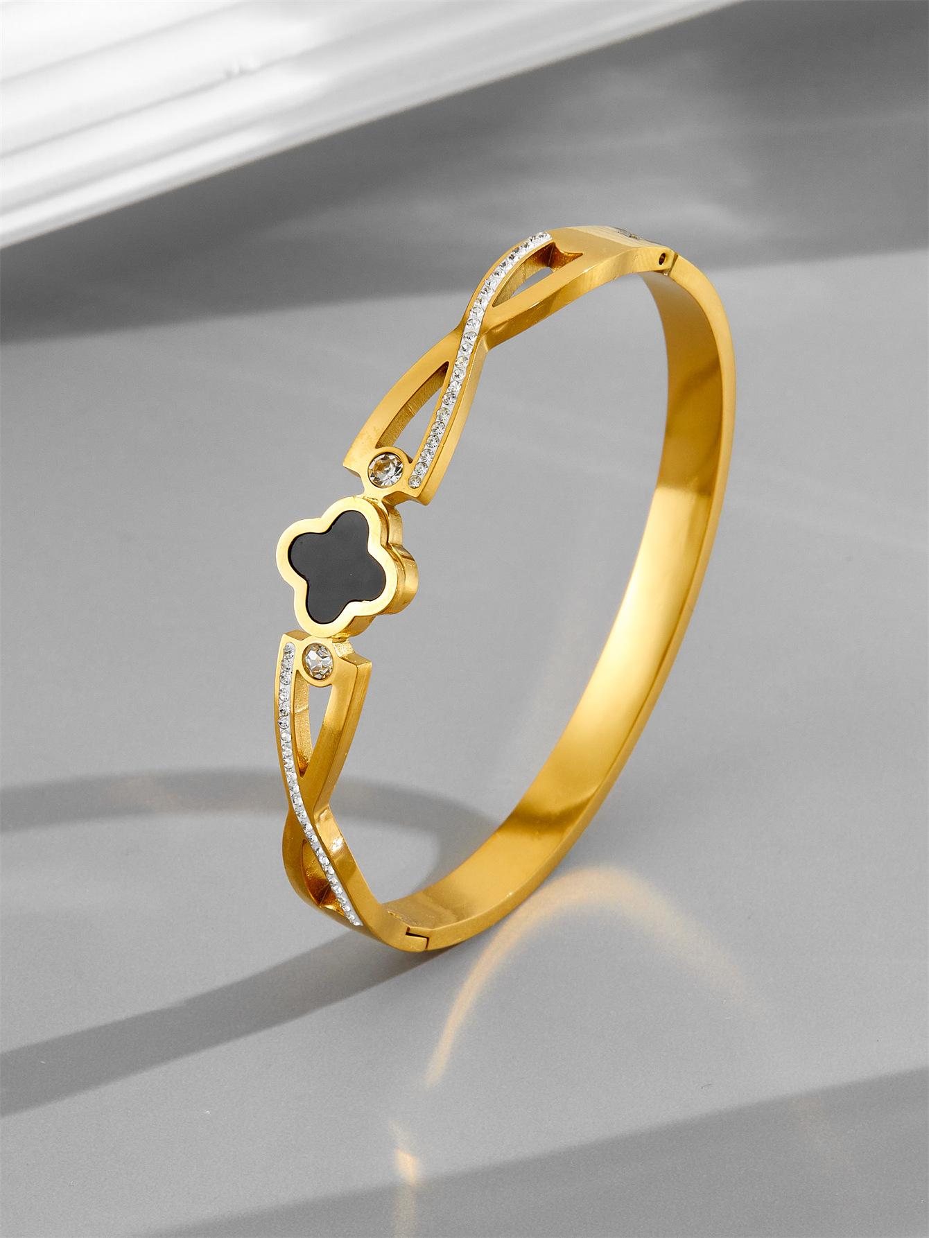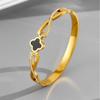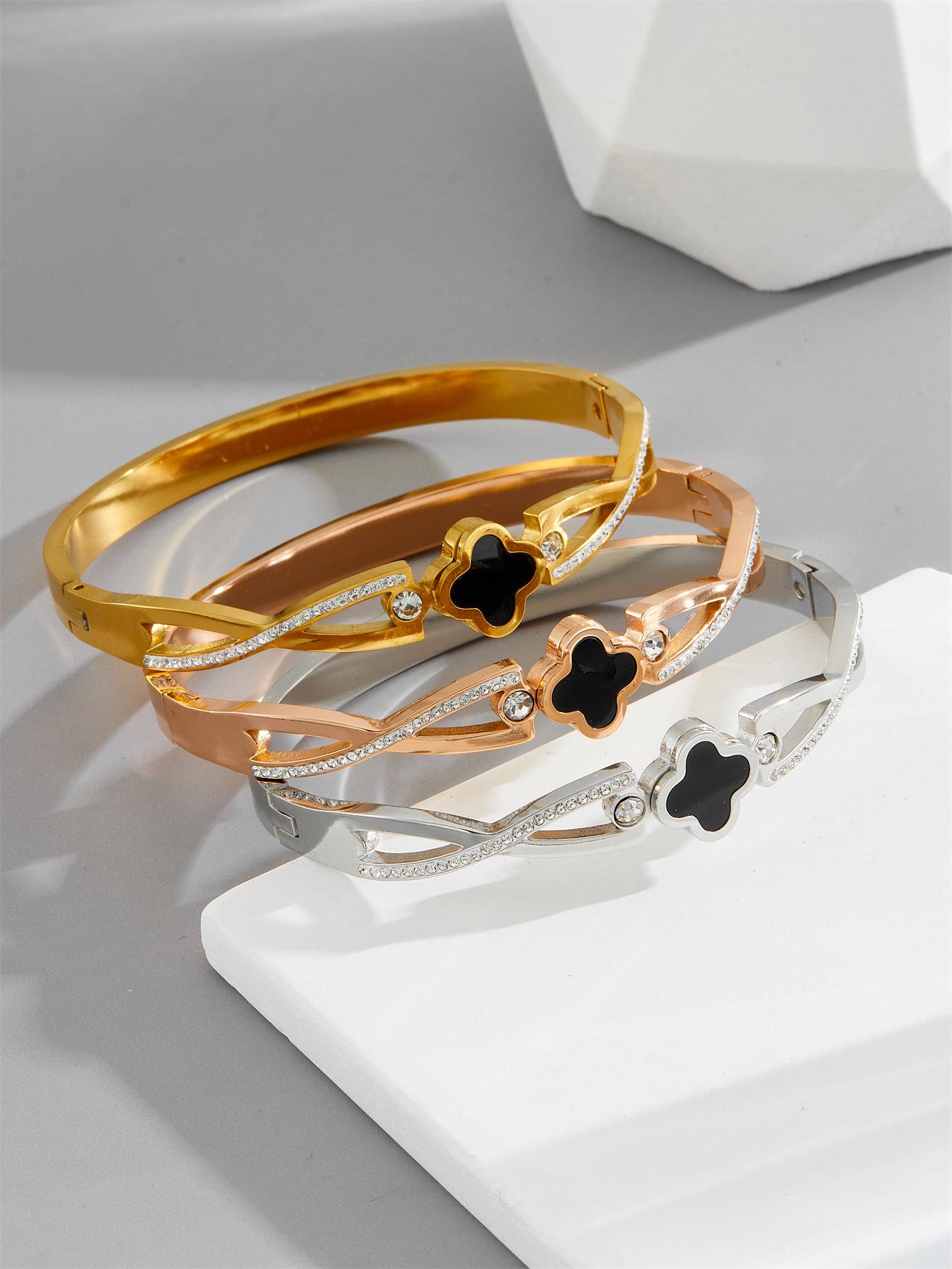 Amazon transfronterizo para moda sencilla trébol de cuatro hojas de la suerte pulsera de acero de titanio con diamantes completos para mujer lujo ligero fabricantes mayoreo