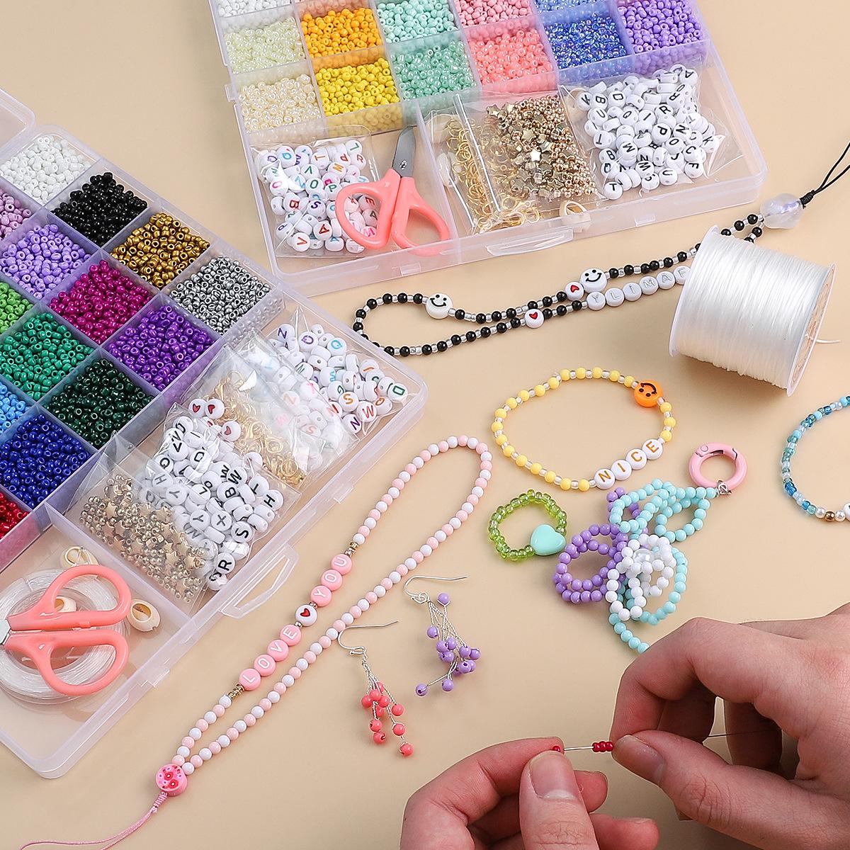 Juego de juguetes educativos hechos a mano para niños con cuentas transfronterizas de 24 metros, caja de bricolaje, kit de material para pulseras con accesorios hechos a mano con cuentas