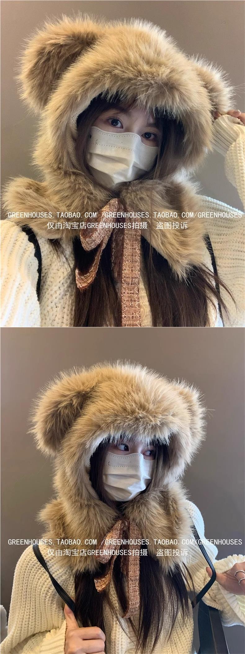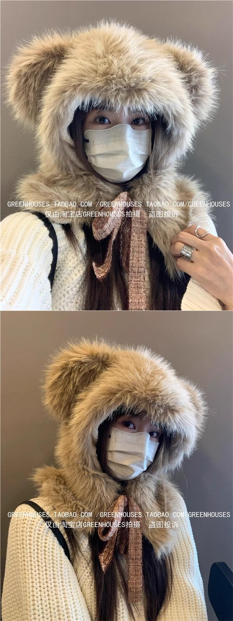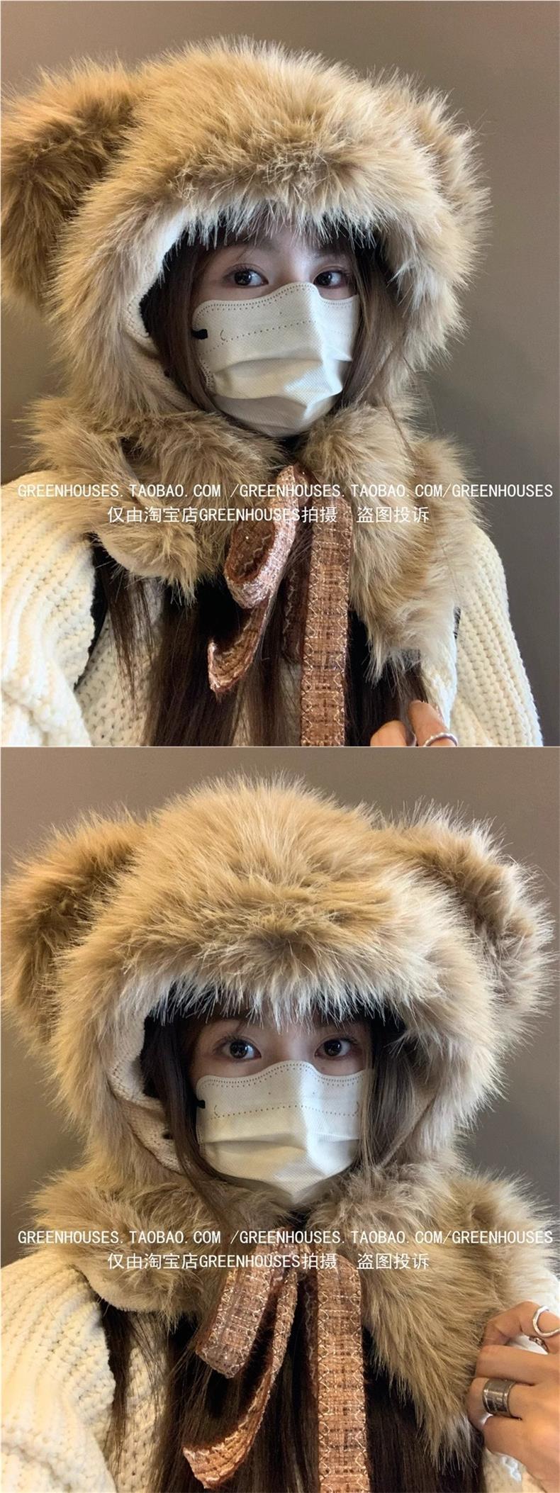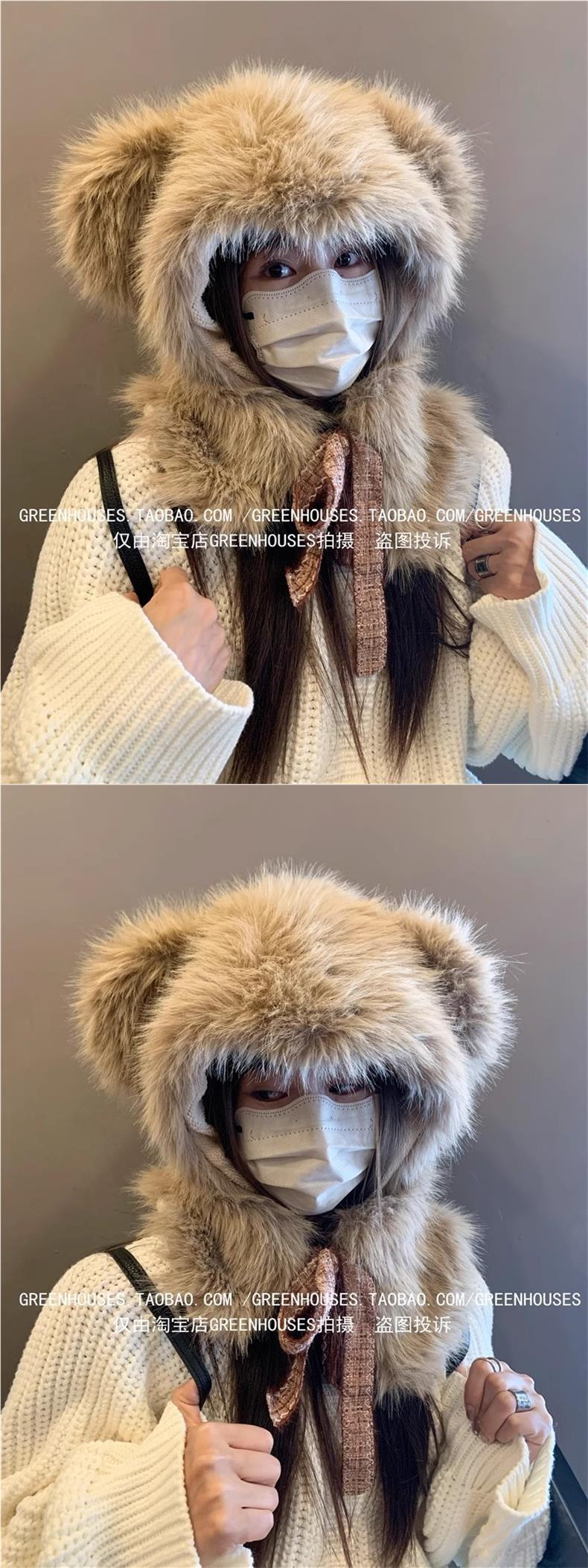 Nuevo gorro de peluche estilo K con protección para las orejas para mujer, con forro polar, bufanda integrada, cálido gorro Lei Feng, de moda.