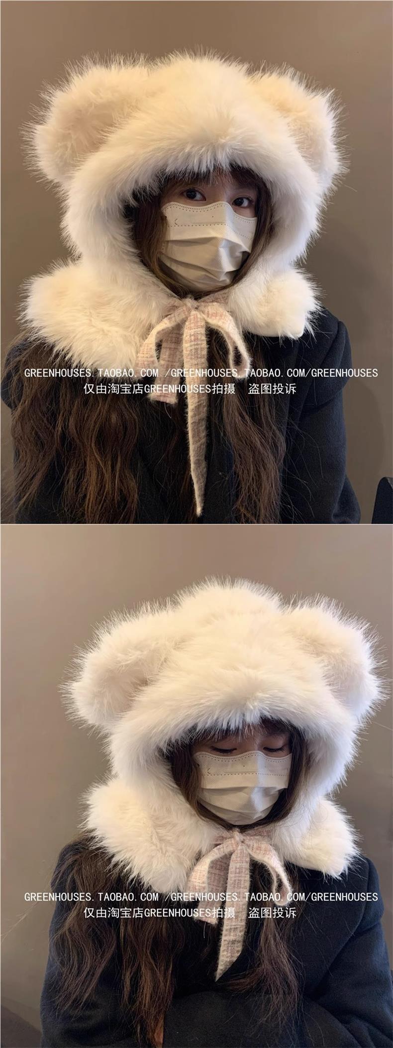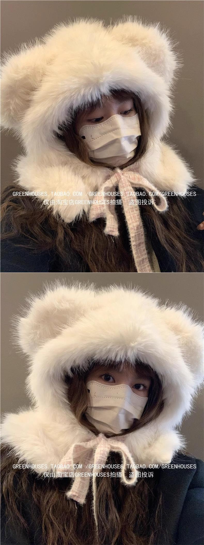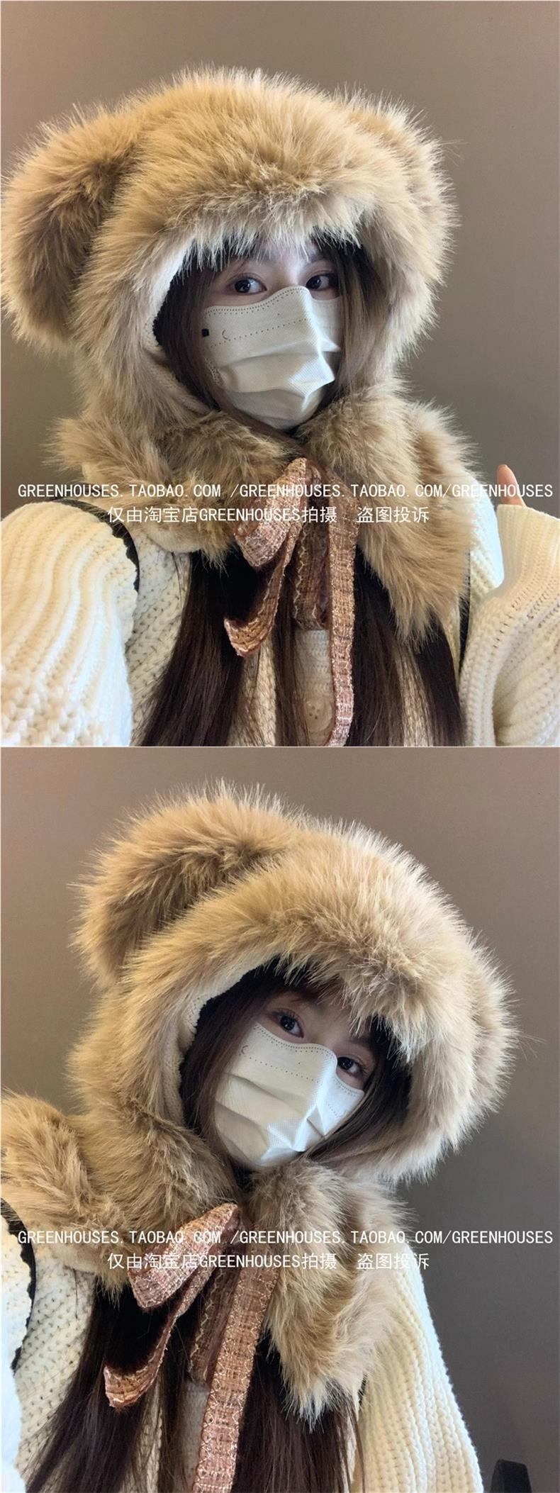 Nuevo gorro de peluche estilo K con protección para las orejas para mujer, con forro polar, bufanda integrada, cálido gorro Lei Feng, de moda.