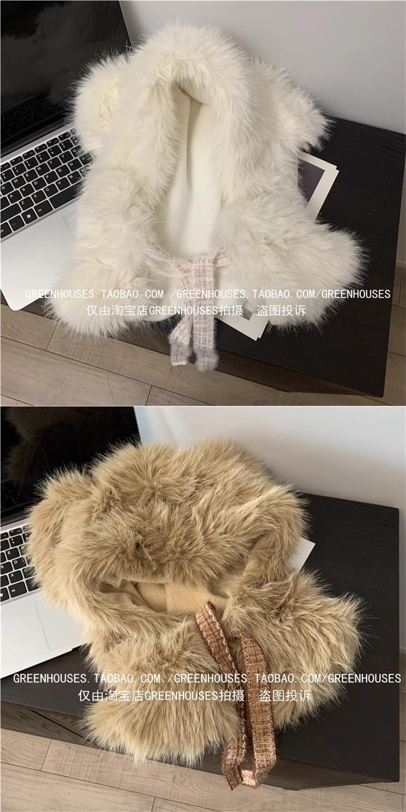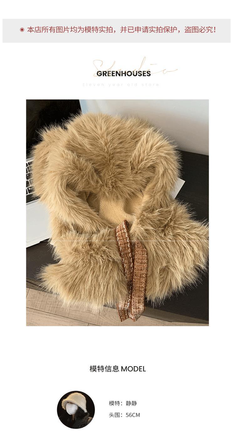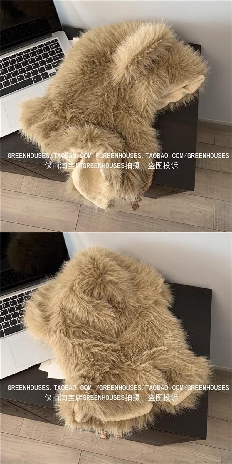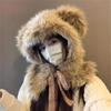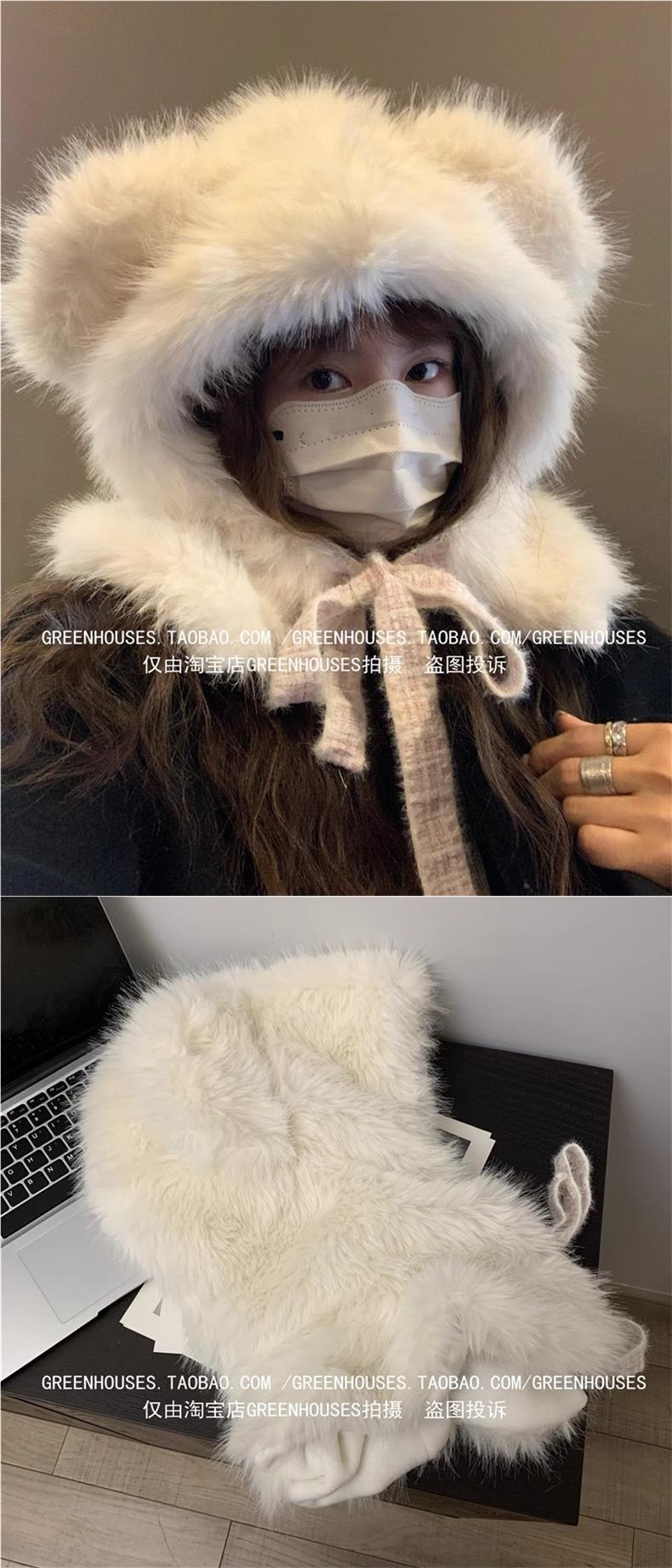 Nuevo gorro de peluche estilo K con protección para las orejas para mujer, con forro polar, bufanda integrada, cálido gorro Lei Feng, de moda.